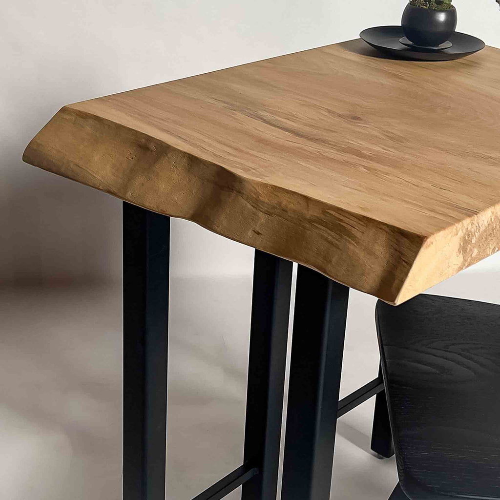 現代の空間に映えるモダンな佇まいを意識しつつ、一枚板ごとに素材感と存在感の出方を見極め、加工を行います。造形を整えすぎず、木が本来持つ表情を残すことを大切にしています。 ![]() |