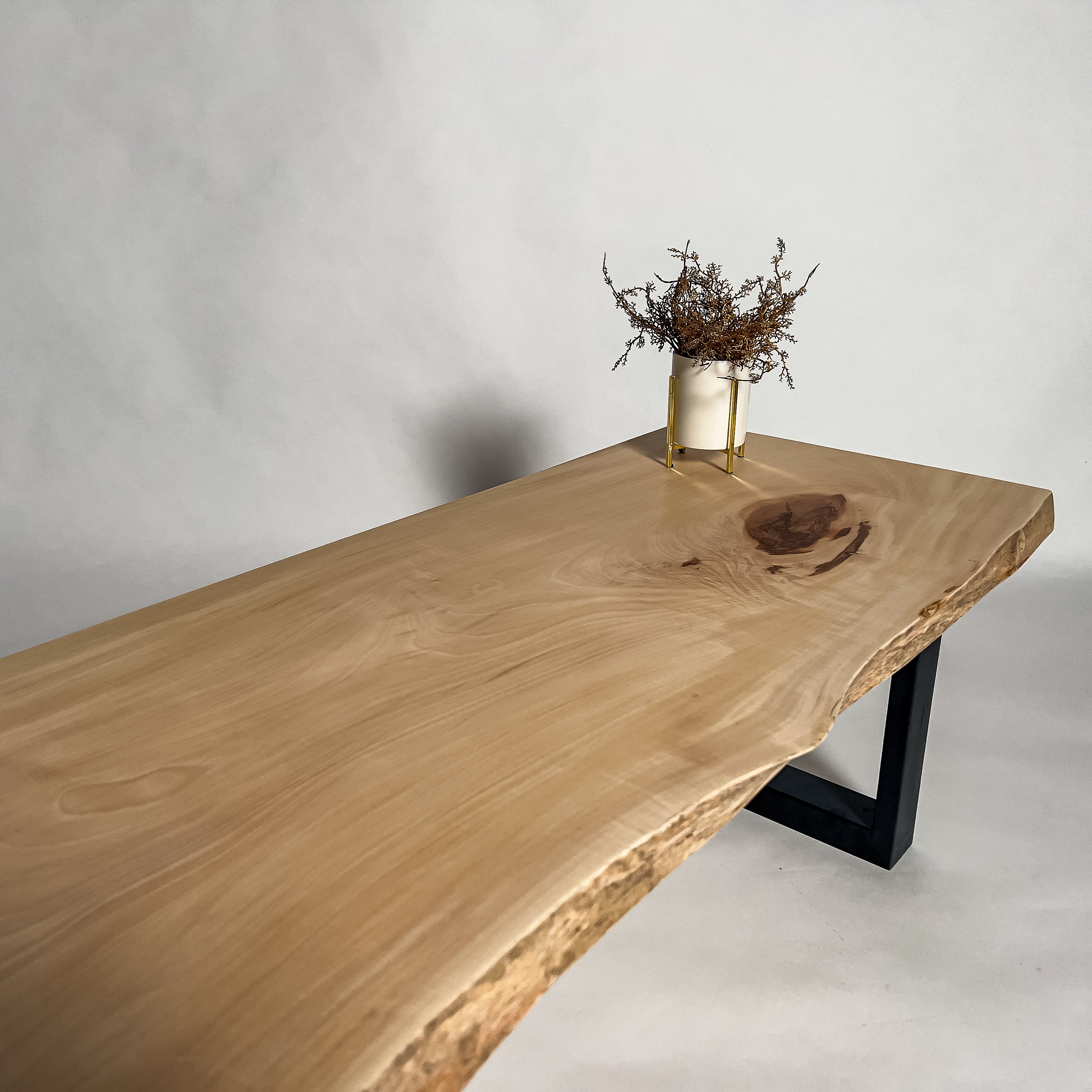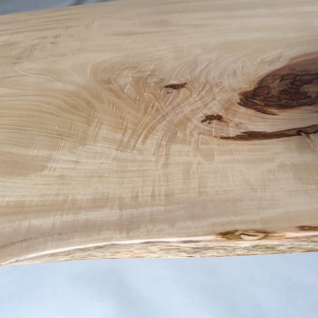 複数の板をつなぎ合わせたものとは異なり、途切れることなく続く杢目は自然の美しさをそのまま映し出します。