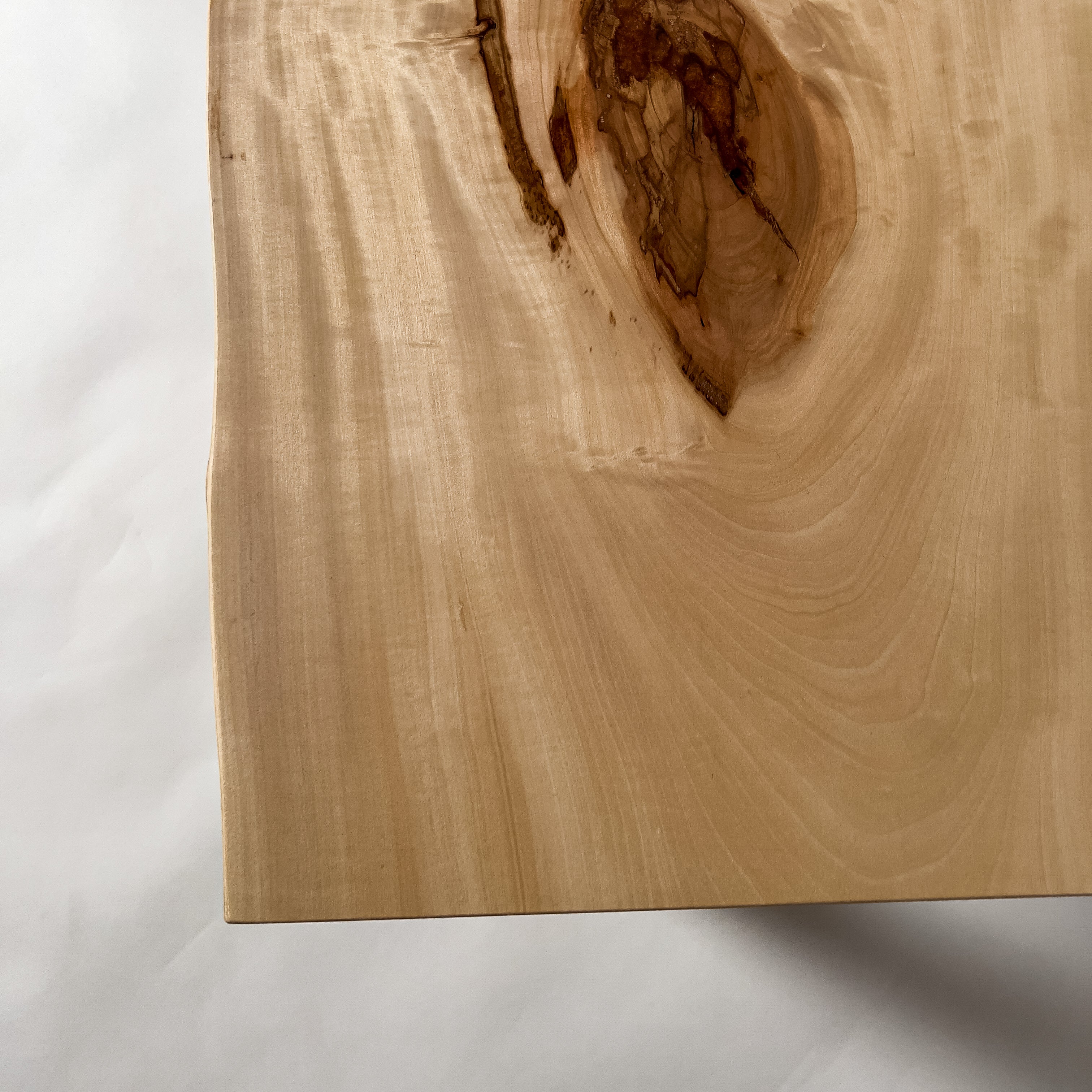 白く上品な色味と、栃特有の杢目「縮杢」や「スポルテッド」が特徴的。特有の色味と杢目は、お部屋を柔らかくモダンな雰囲気にすることができ、男女共に高い人気を誇る素材