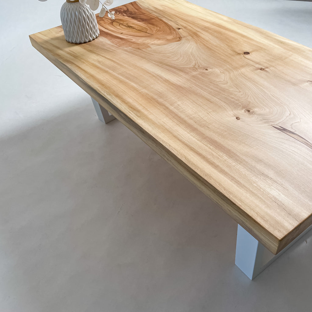 上品で落ち着きのある最高品質の「マットウレタン塗装」。鬼童銘木が磨き上げた技術により、すべての一枚板に独自の特殊塗装を施しています。