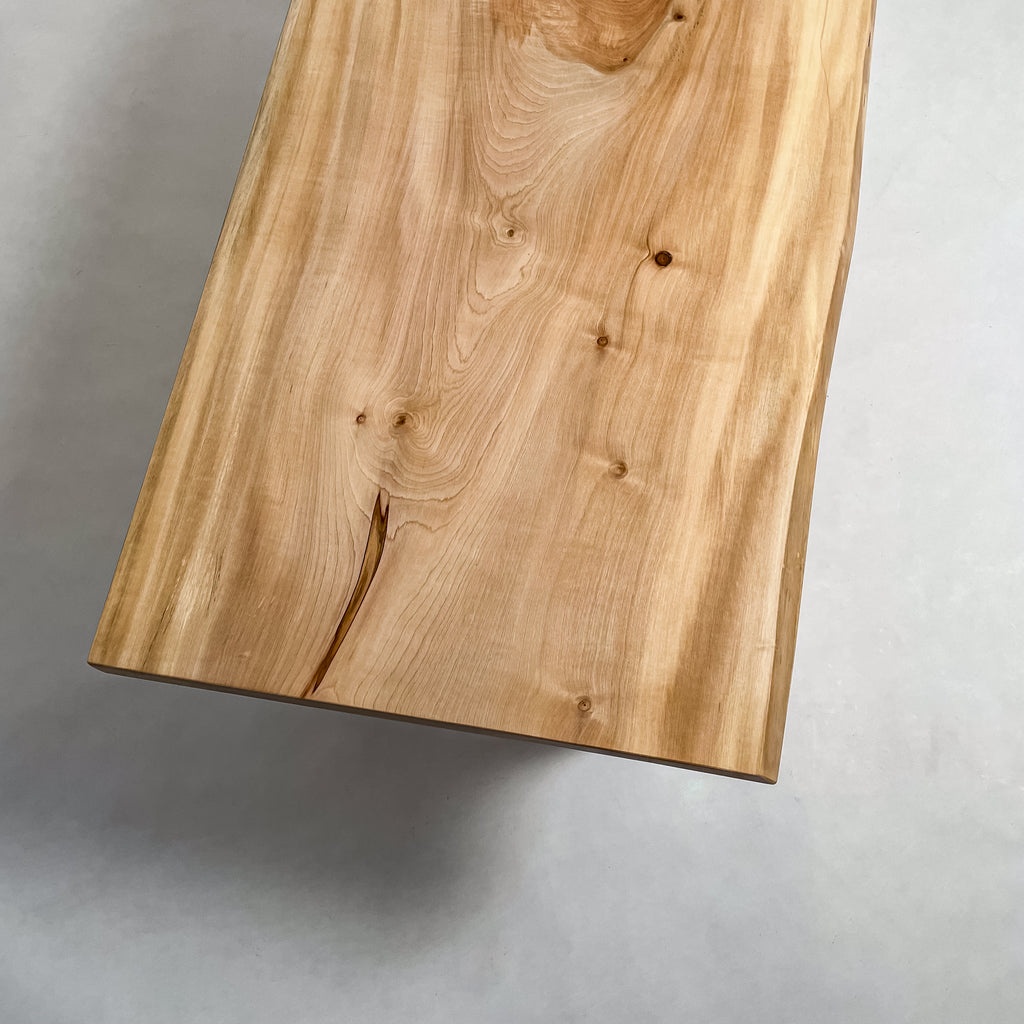 複数の板をつなぎ合わせたものとは異なり、途切れることなく続く杢目は自然の美しさをそのまま映し出します。
