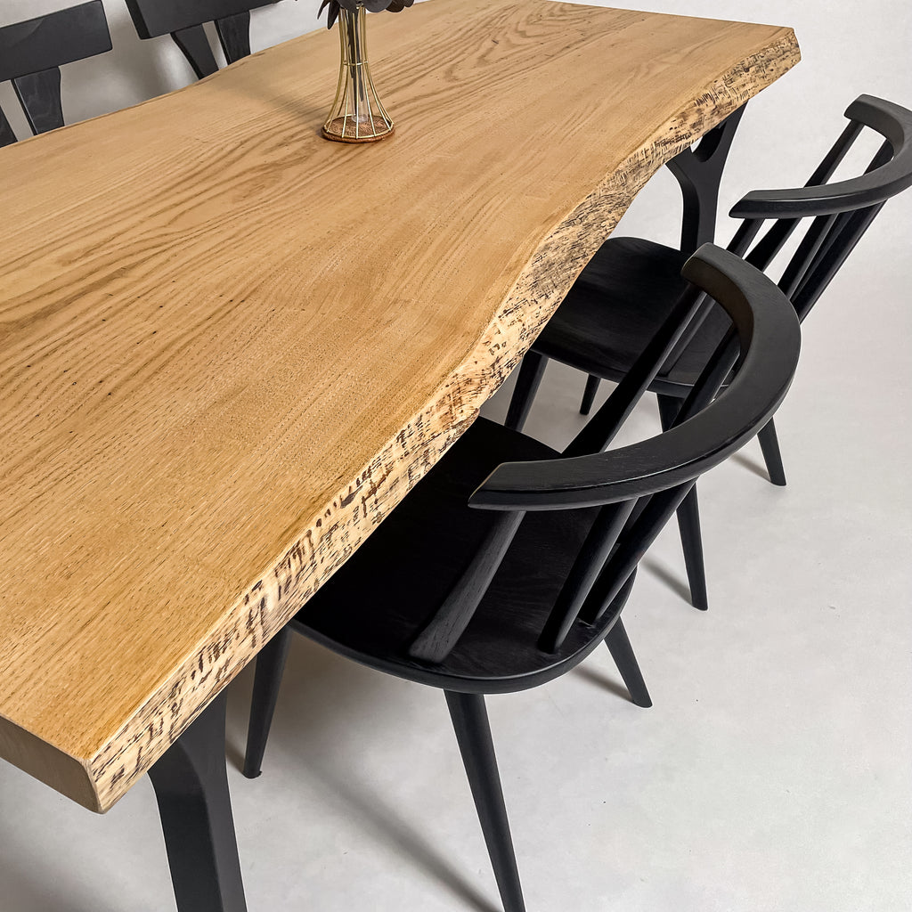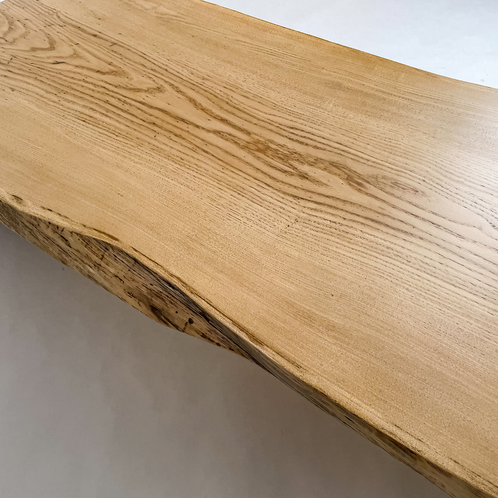 複数の板をつなぎ合わせたものとは異なり、途切れることなく続く杢目は自然の美しさをそのまま映し出します。