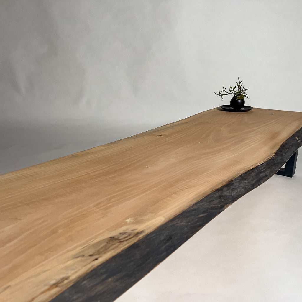 複数の板をつなぎ合わせたものとは異なり、途切れることなく続く杢目は自然の美しさをそのまま映し出します。