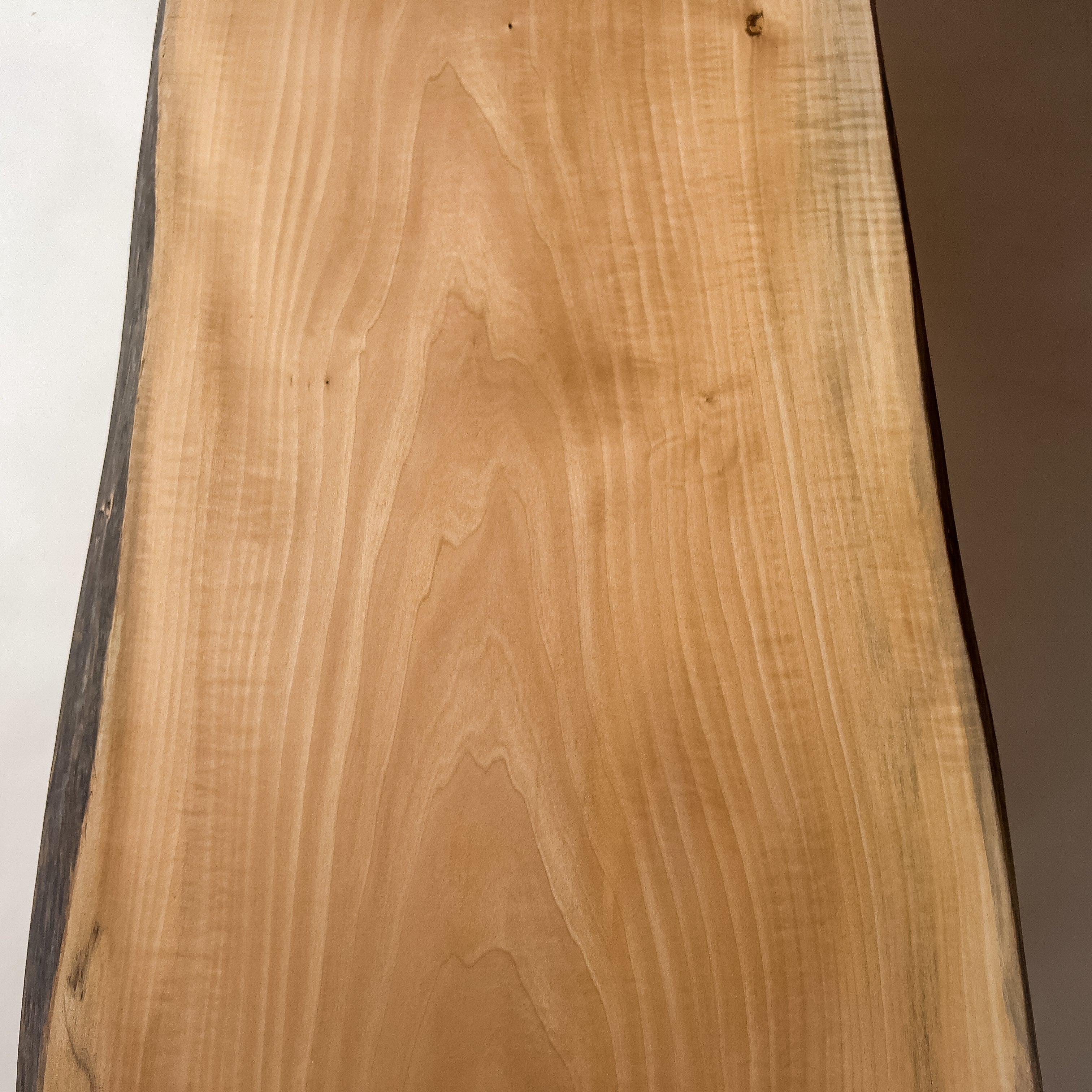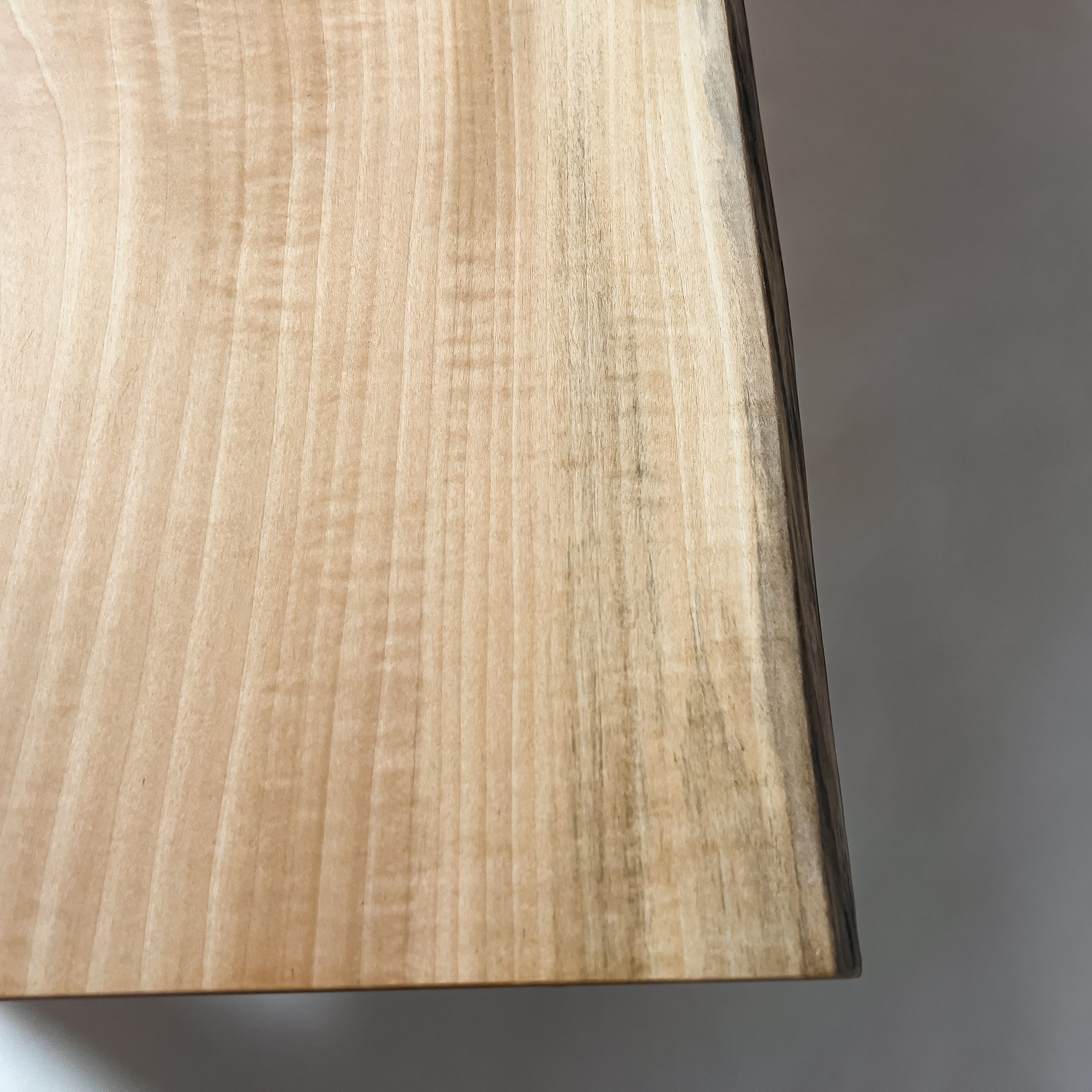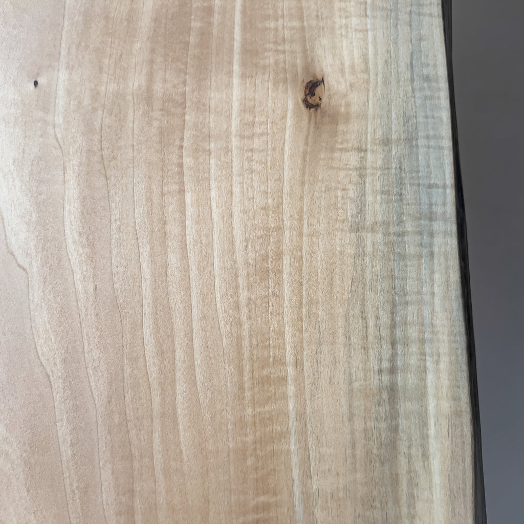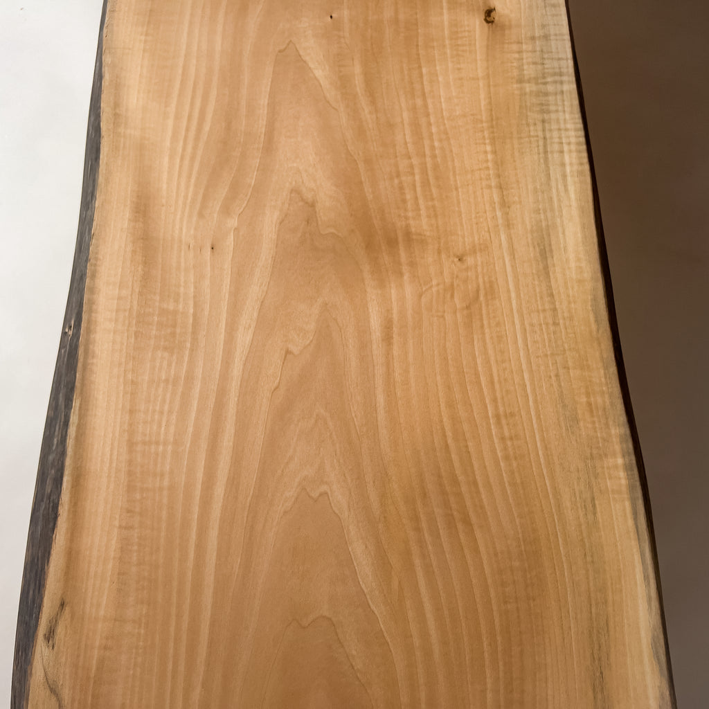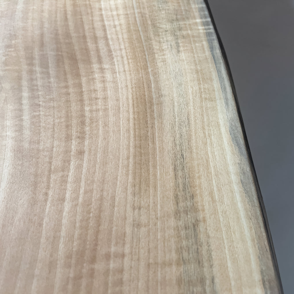 淡く澄んだ色合いに、寒冷地で時間をかけ育った樺の年輪が重なります。風雪に耐えた幹の揺らぎが縮れた杢目となり、光を受けて立体感を生む表情。静かな存在感。空間にやさしく広がります。