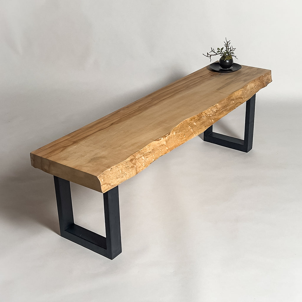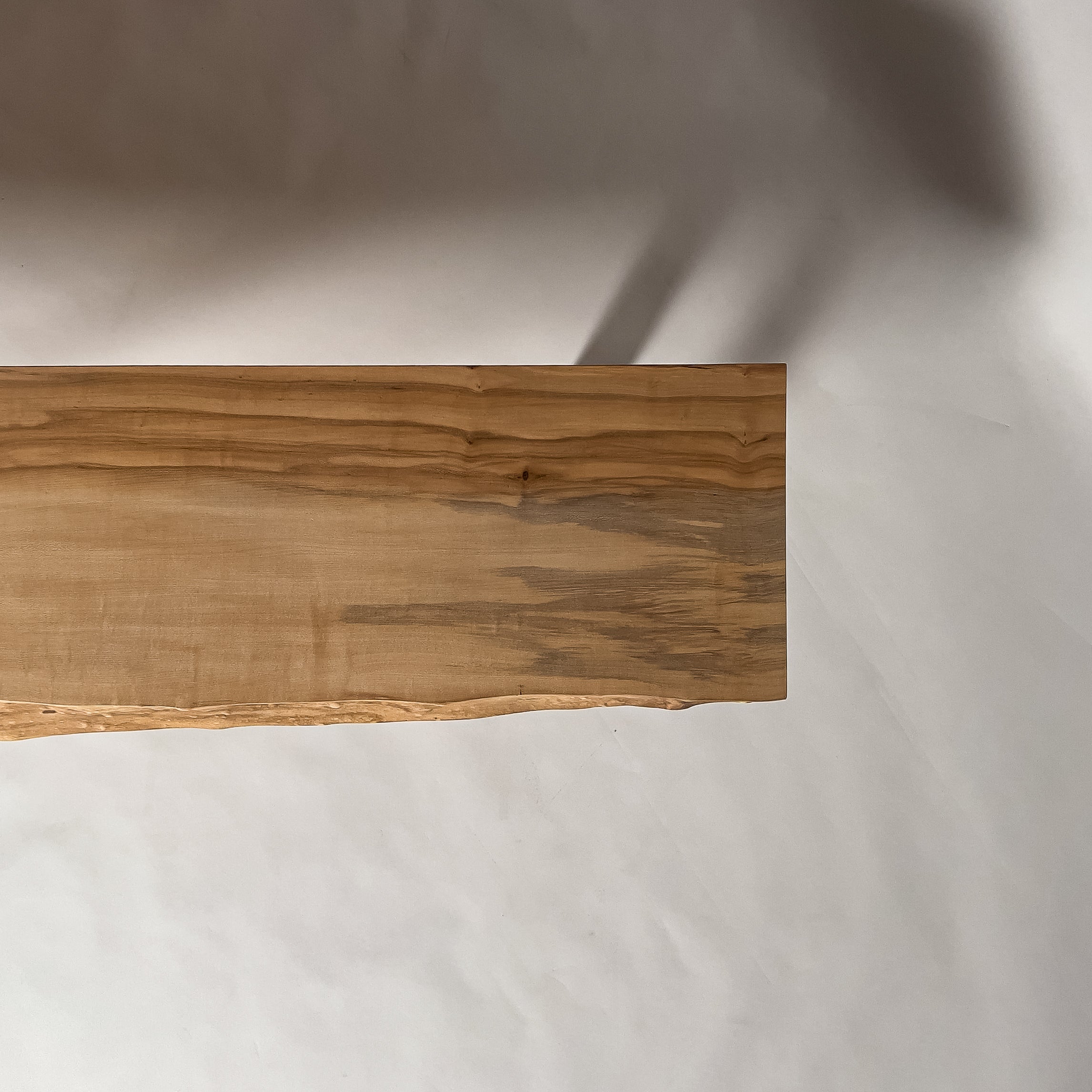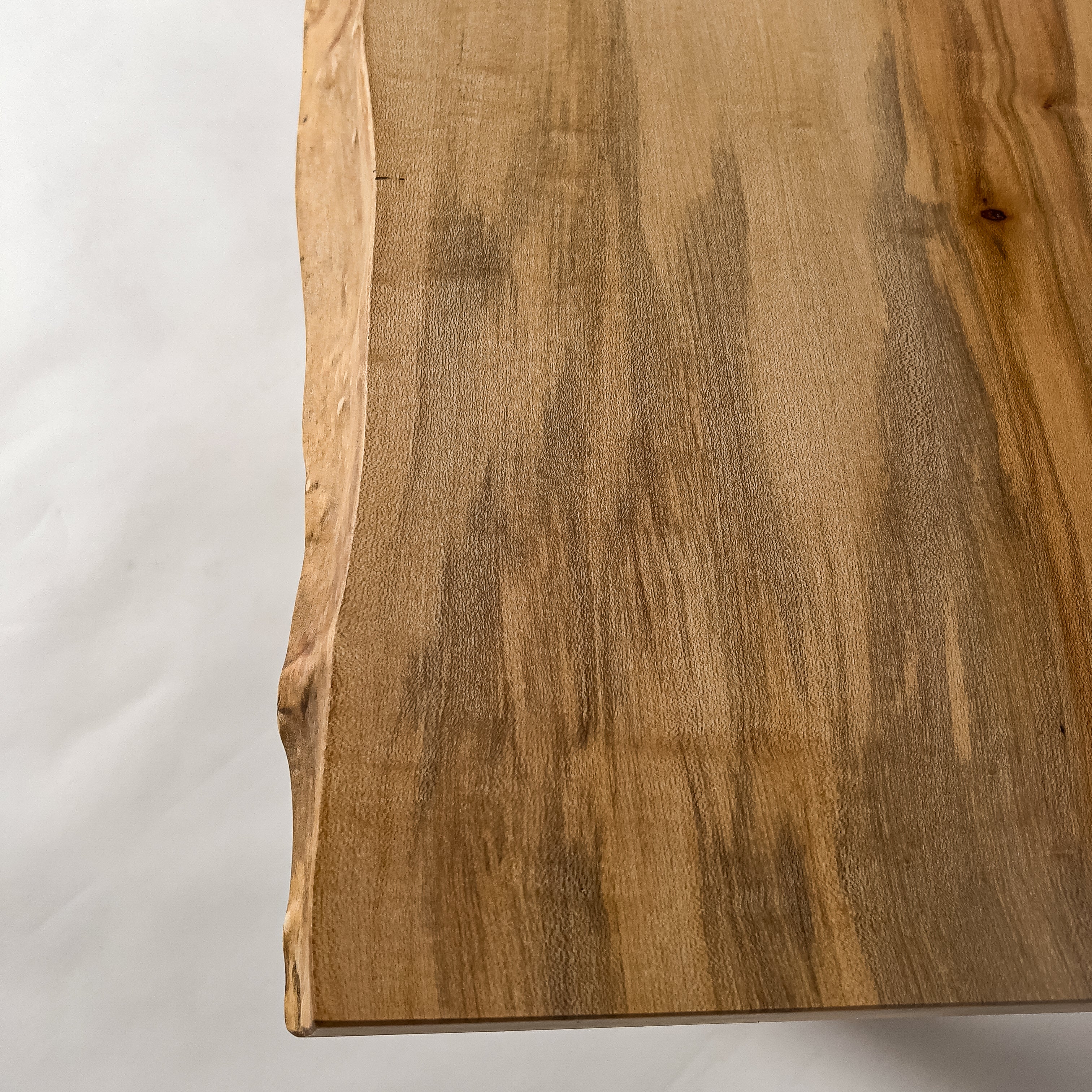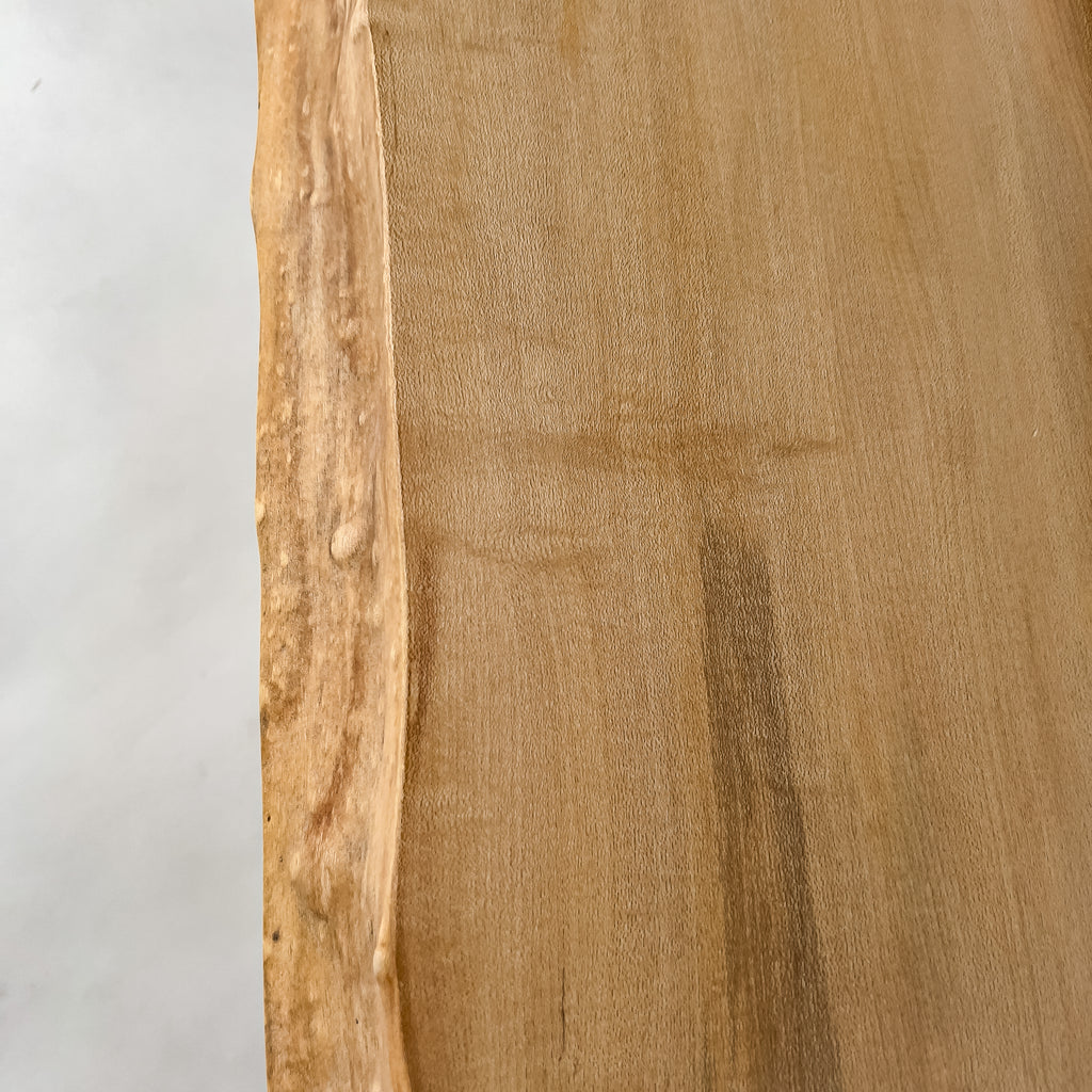 緻密で滑らかな木肌を持つ楓は、淡い乳白色と上品な光沢が魅力。硬く粘り強い性質を持つため一枚板テーブルに適し、経年変化で飴色へと深まる美しさと高い耐久性を兼ね備えています。