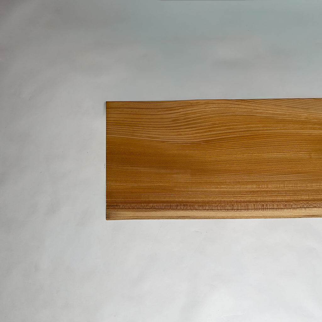 | 自然が生み出した不均一な表情を 読み解き、素材の持つ品格や奥行きが際立つよう、細部まで配慮した加工で完成度を高める。 | 一枚板単体の美しさだけでなく、置かれる空間や光の入り方までを思い描き、その場に自然と溶け込む佇まいへと仕上げる。 | |