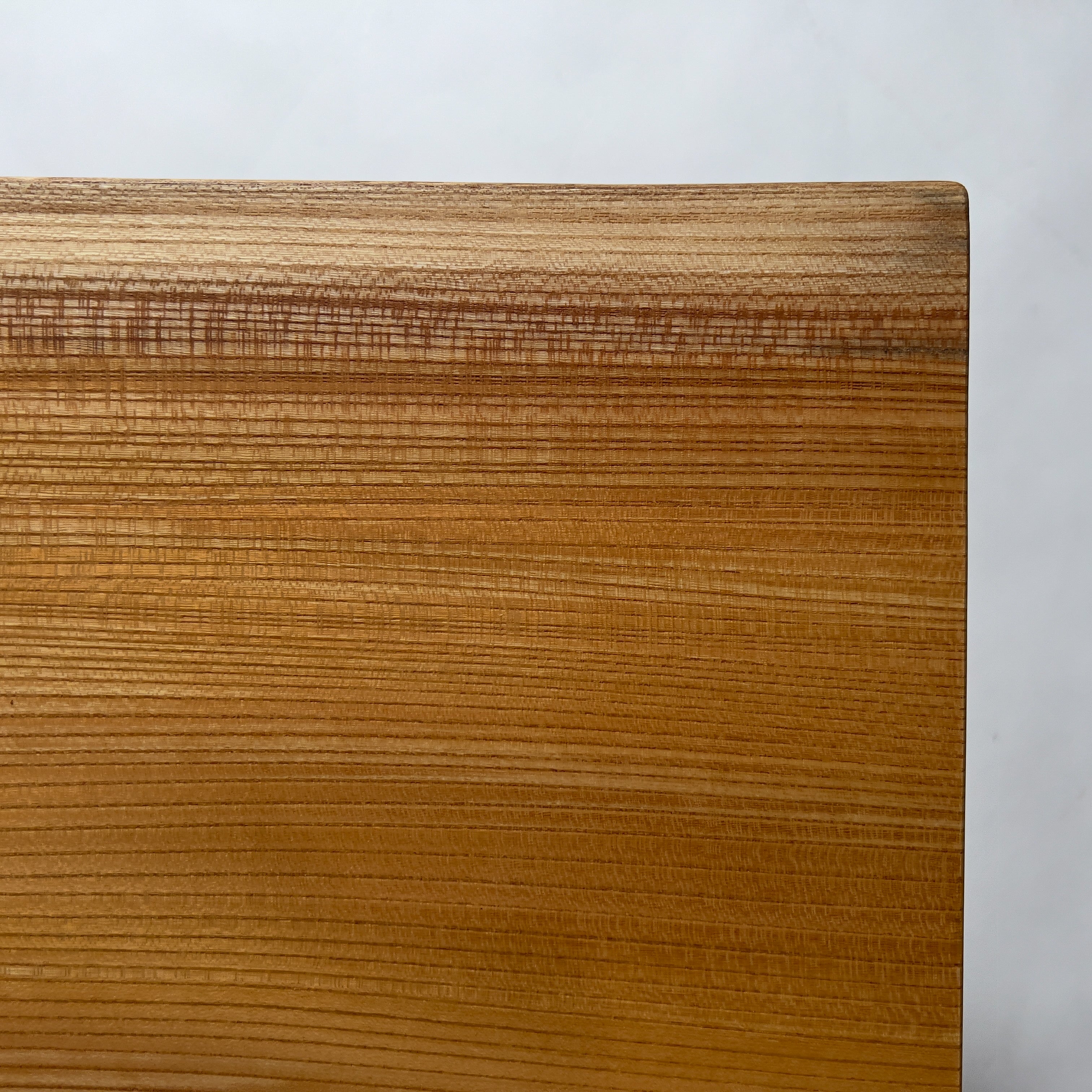 山でゆっくり育った欅は、寒暖差を重ねるほど年輪が締まり、虎斑や玉杢が静かに現れます。飴色の濃淡が水面の揺らぎのように広がり、動きを残す仕上げで表情を整えました。日常に寄り添う存在感。