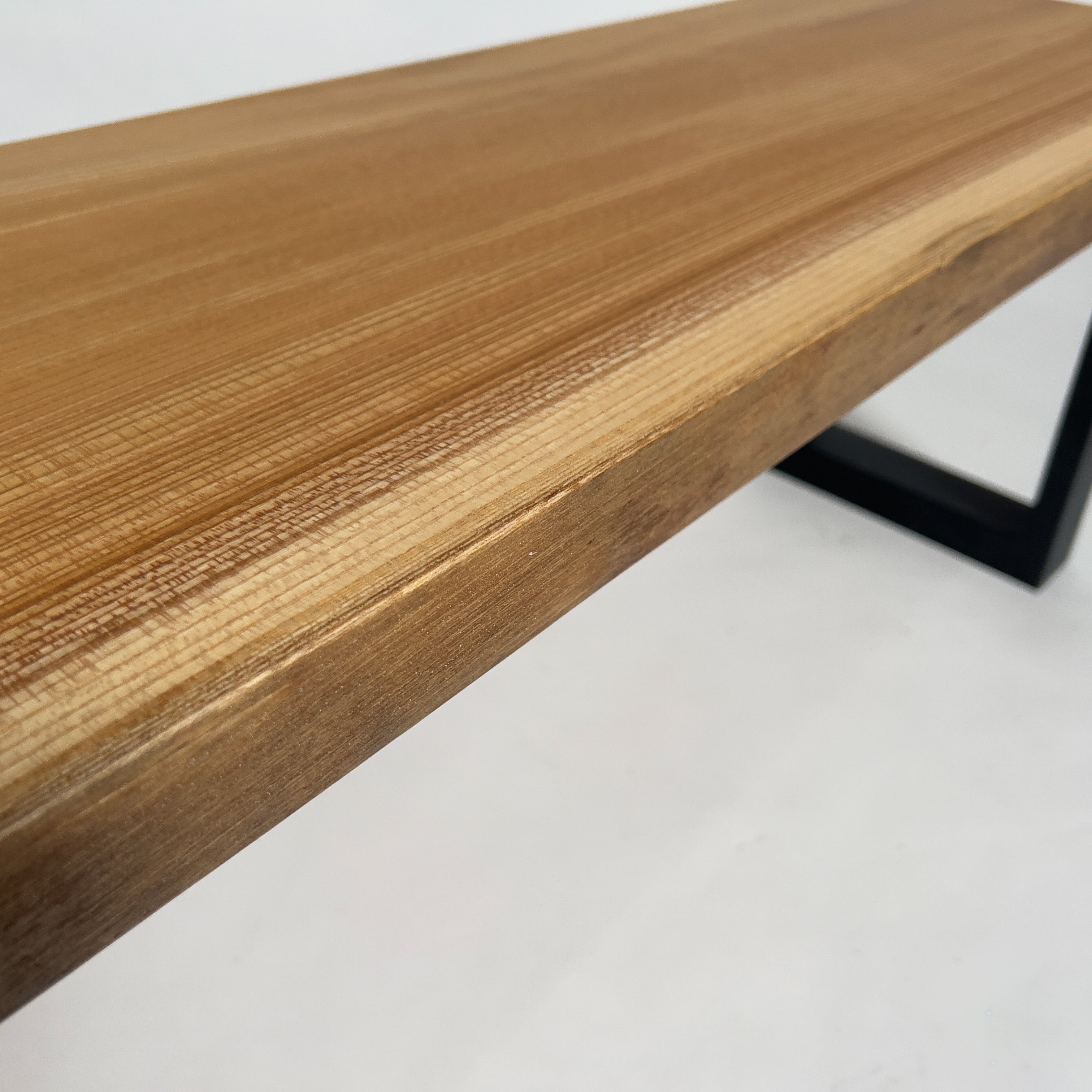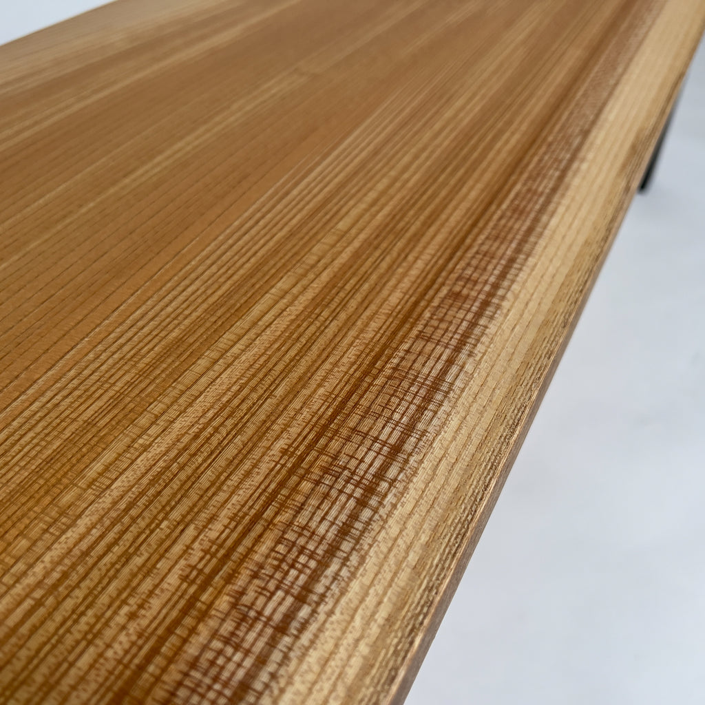 上品で落ち着きのある最高品質の「マットウレタン塗装」。鬼童銘木が磨き上げた技術により、すべての一枚板に独自の特殊塗装を施しています。