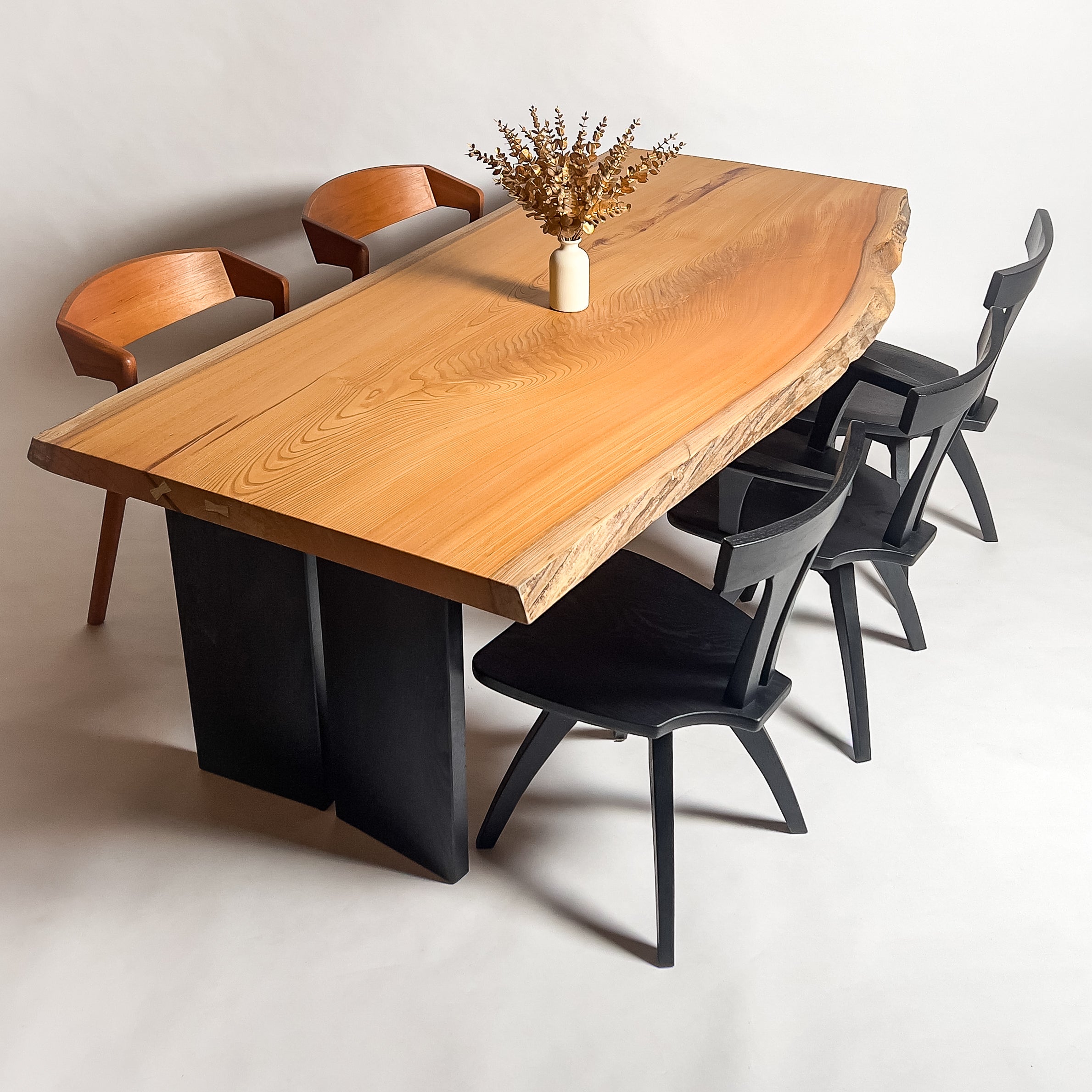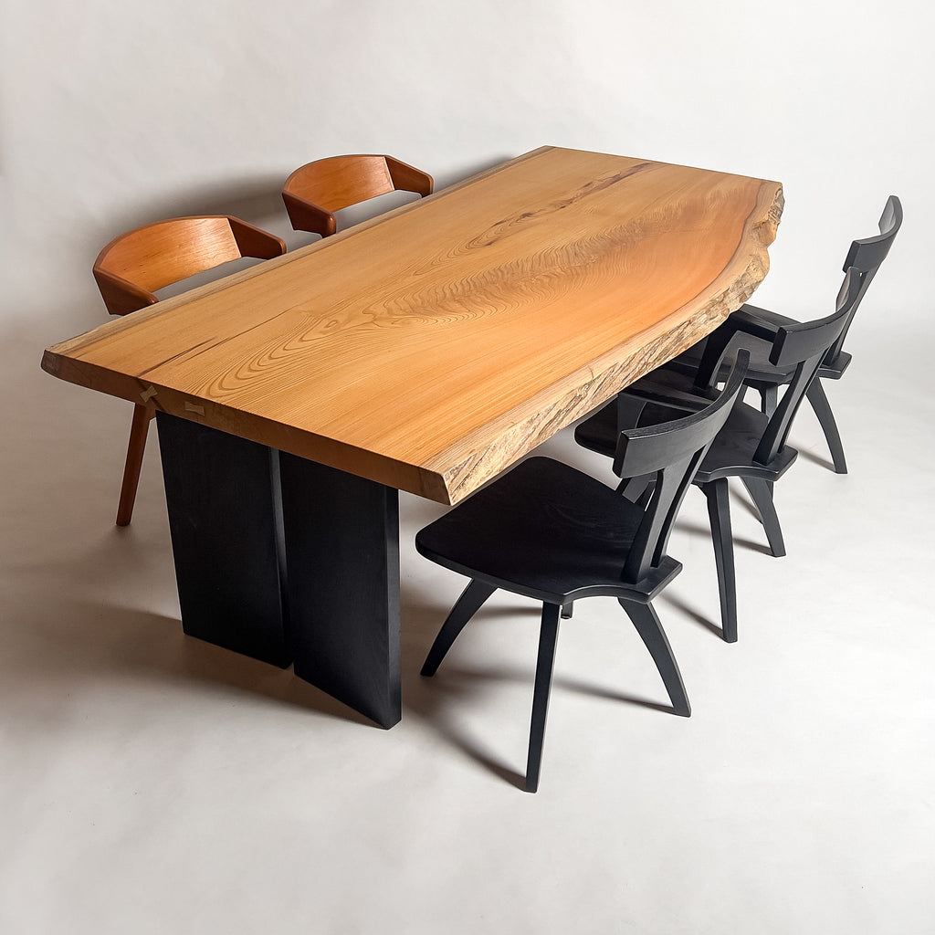 | 時代を超えて受け継がれる機能性と、現代の暮らしに寄り添うデザイン性を兼ね備えた一枚板家具の製作を手がける。 | 現代の空間に映えるモダンなデザイン性を取り入れながら、一枚板の持つ素材感と存在感を活かした加工・製作を行う。 | |
