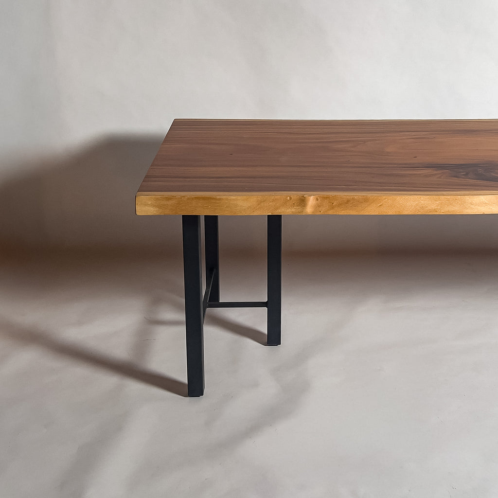 | 時代を超えて受け継がれる機能性と、現代の暮らしに寄り添うデザイン性を兼ね備えた一枚板家具の製作を手がける。 | 現代の空間に映えるモダンなデザイン性を取り入れながら、一枚板の持つ素材感と存在感を活かした加工・製作を行う。 | |