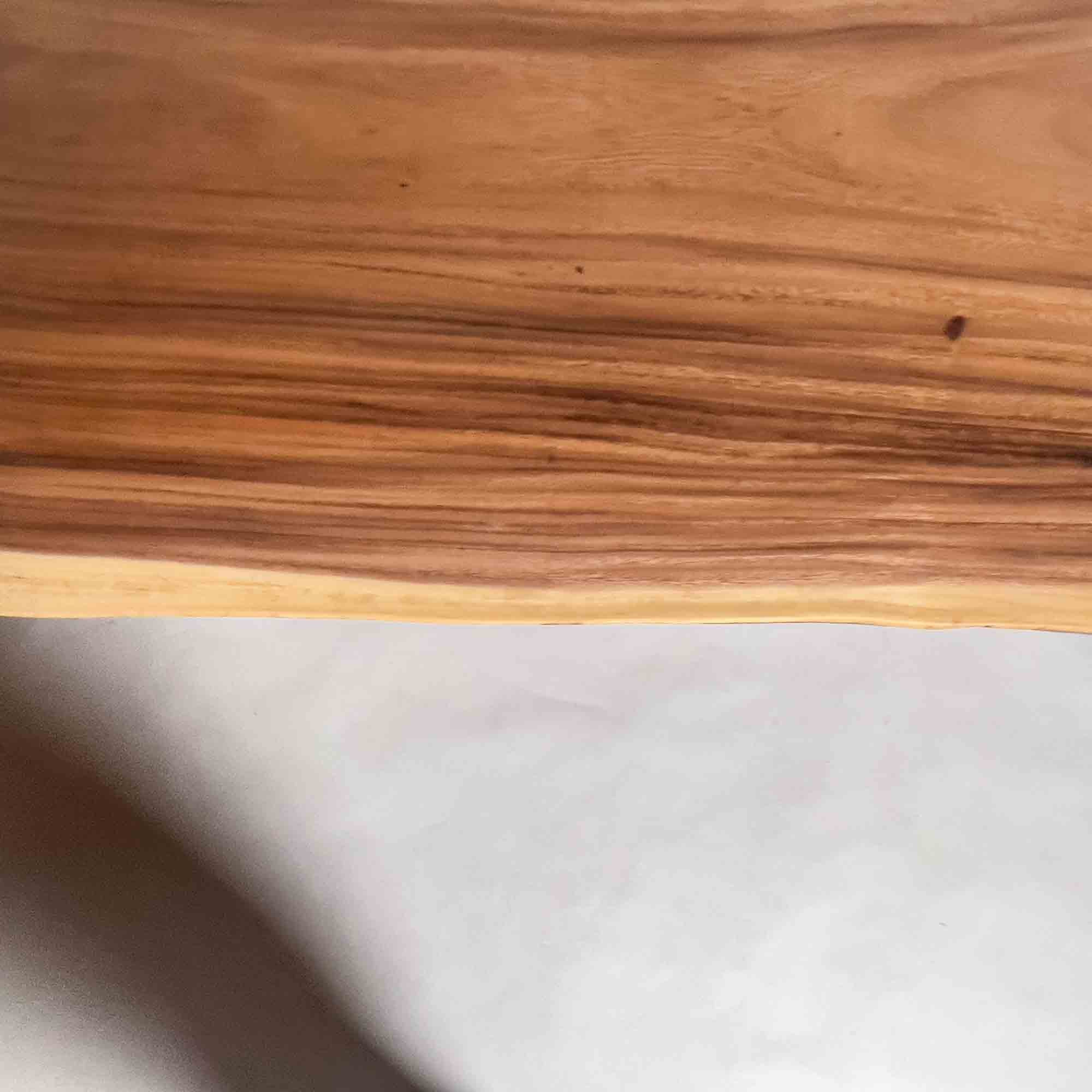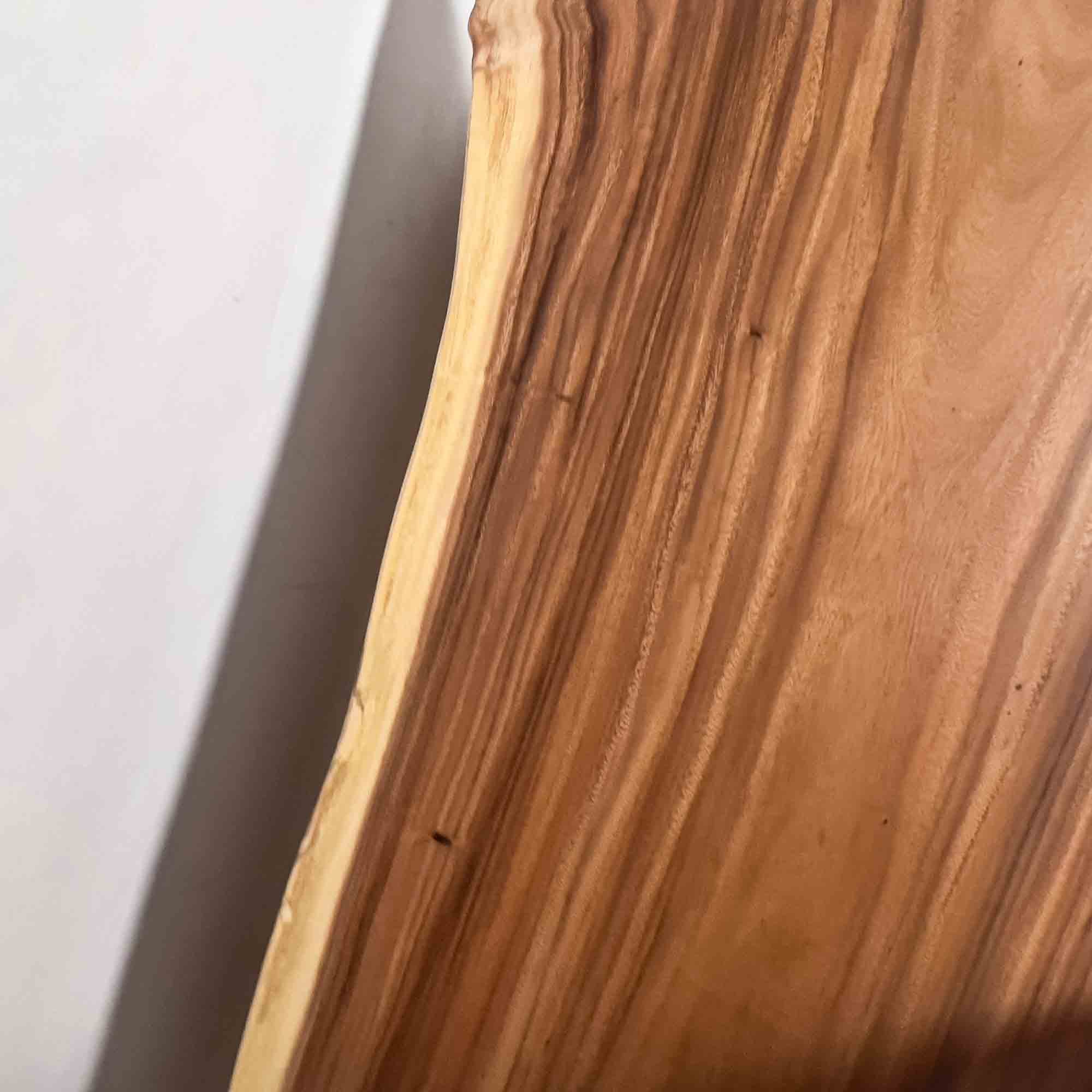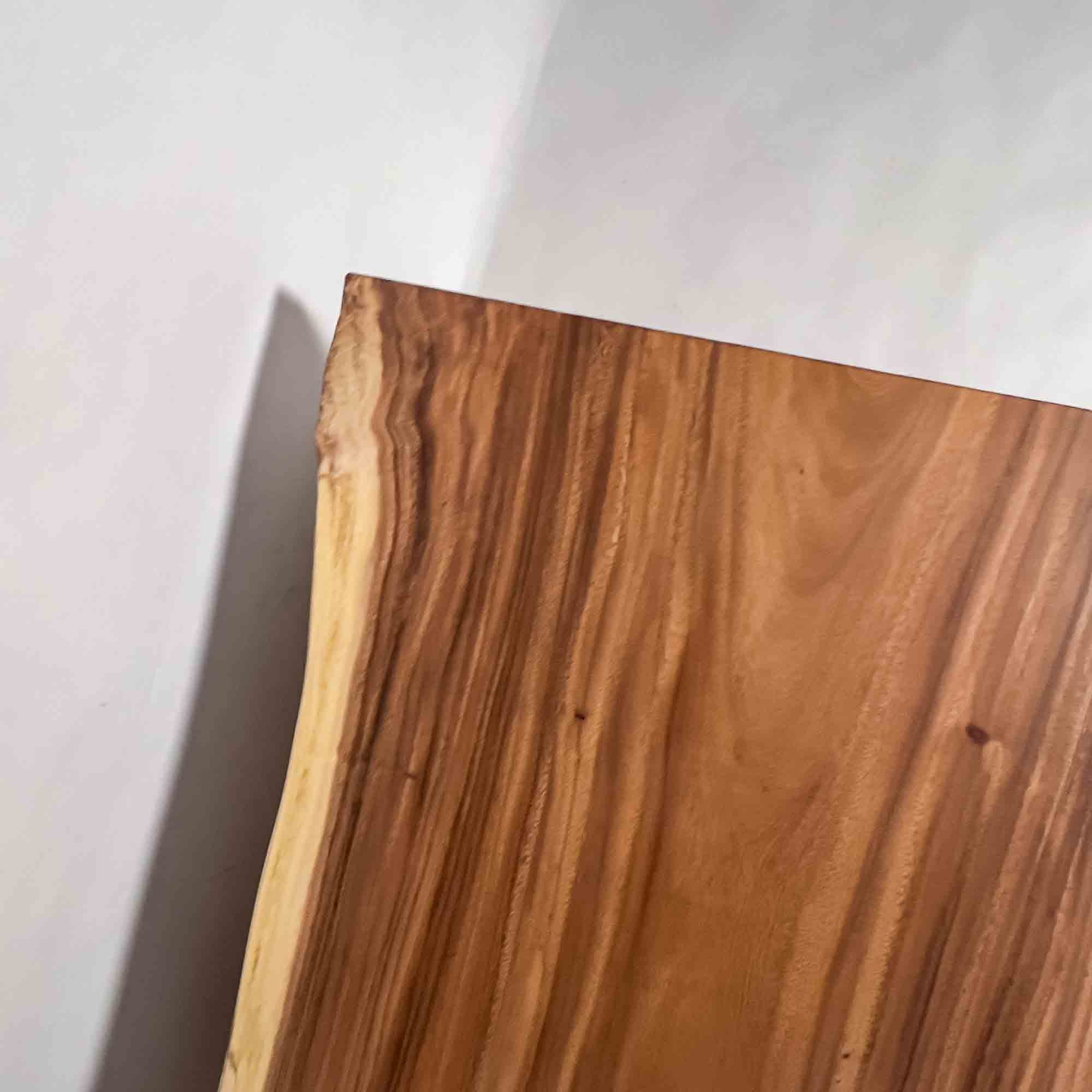 仕上げと扱いやすさ 標準的|モンキーポッドは大径材が得られる樹種ですが、中央に濃淡の帯がまとまりつつ耳の淡色が長く整う個体は限られ、同じ面構成で揃う材は継続的な入荷が難しいためです。 |