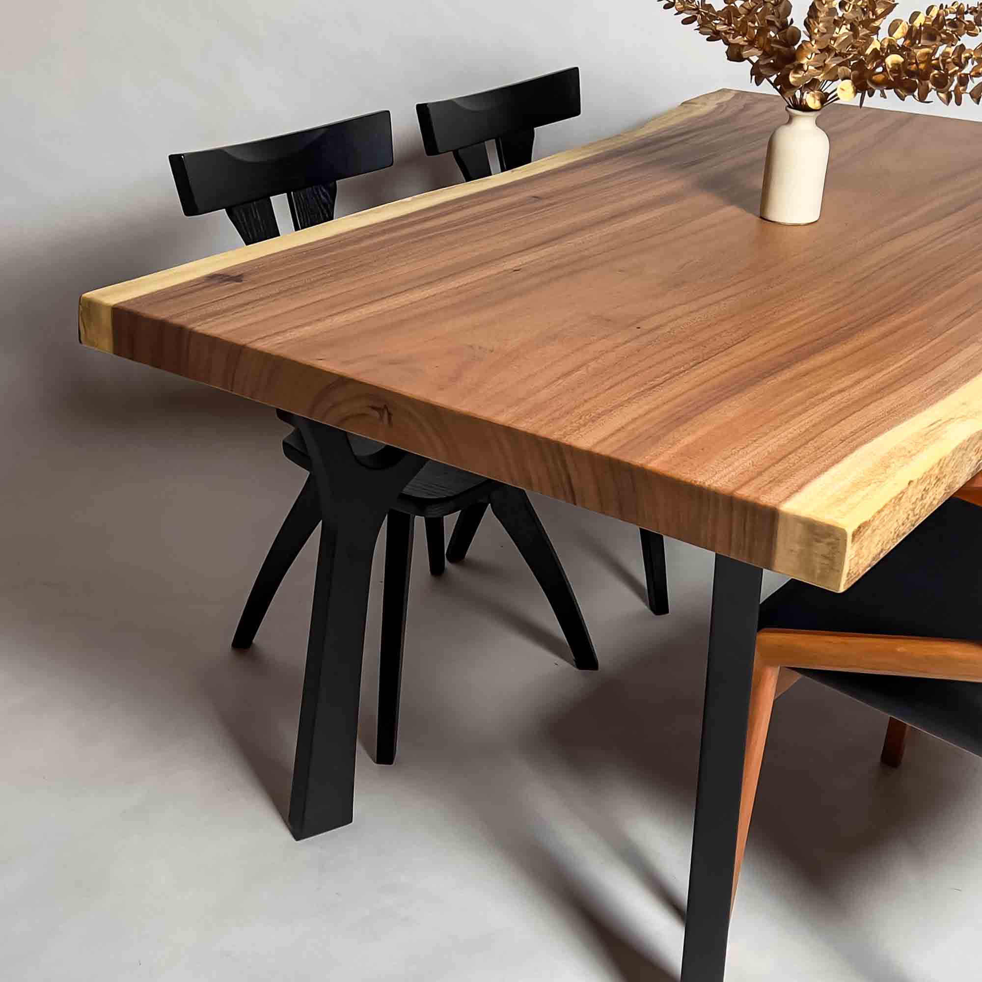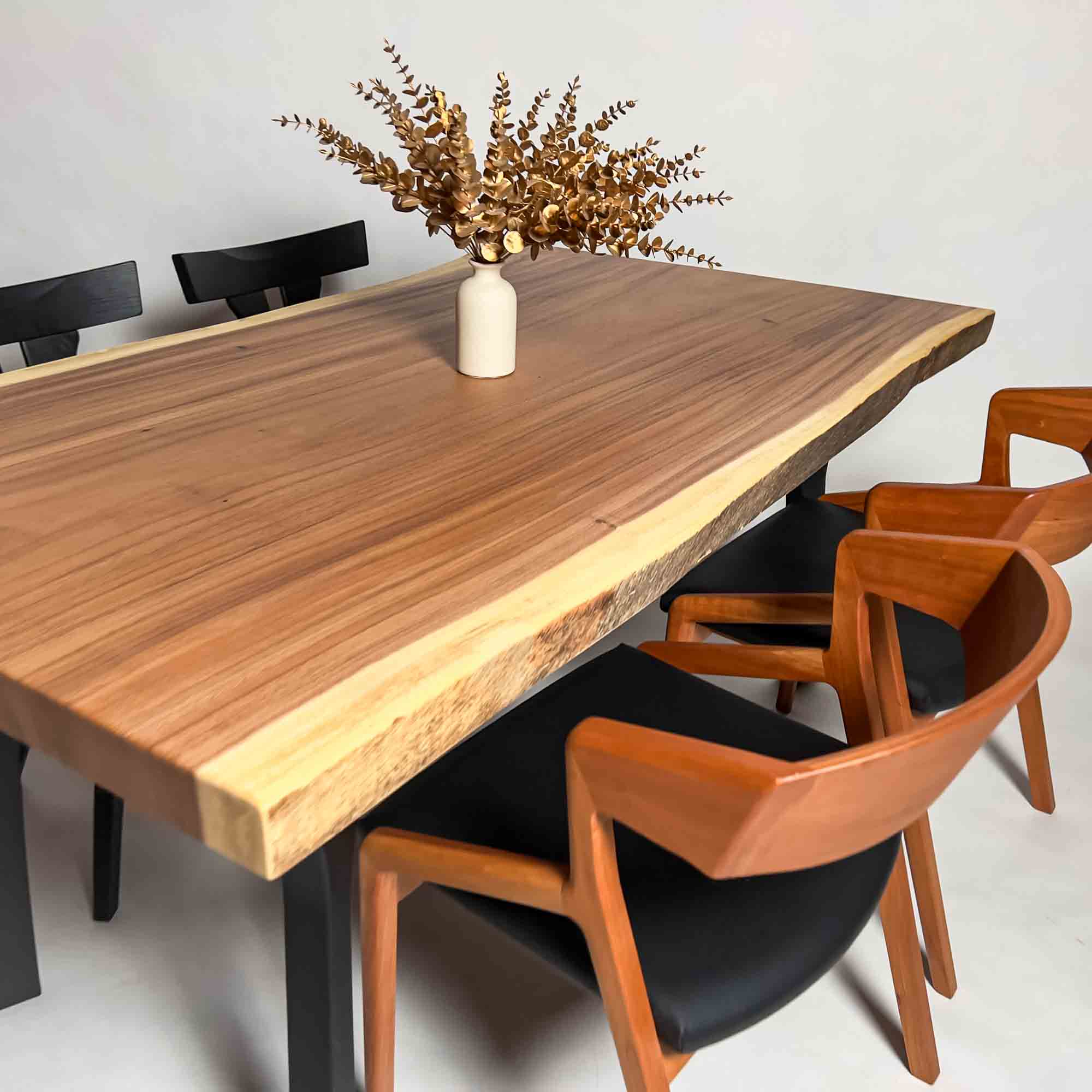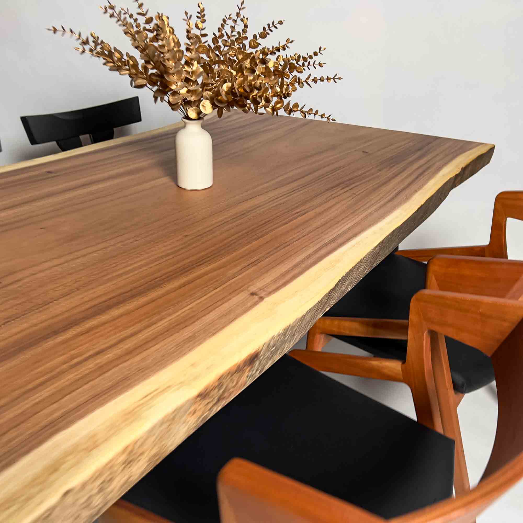 複数の板をつなぎ合わせたものとは異なり、途切れることなく続く杢目は自然の美しさをそのまま映し出します。