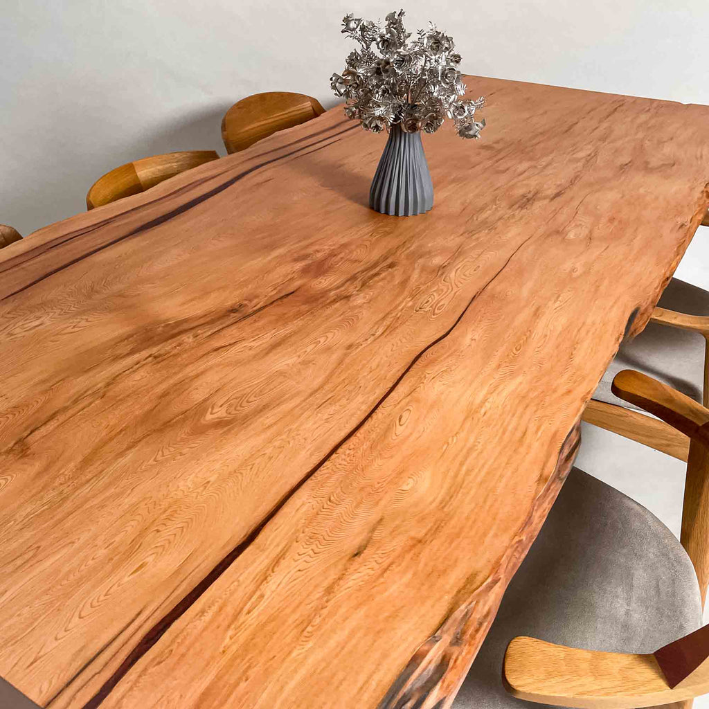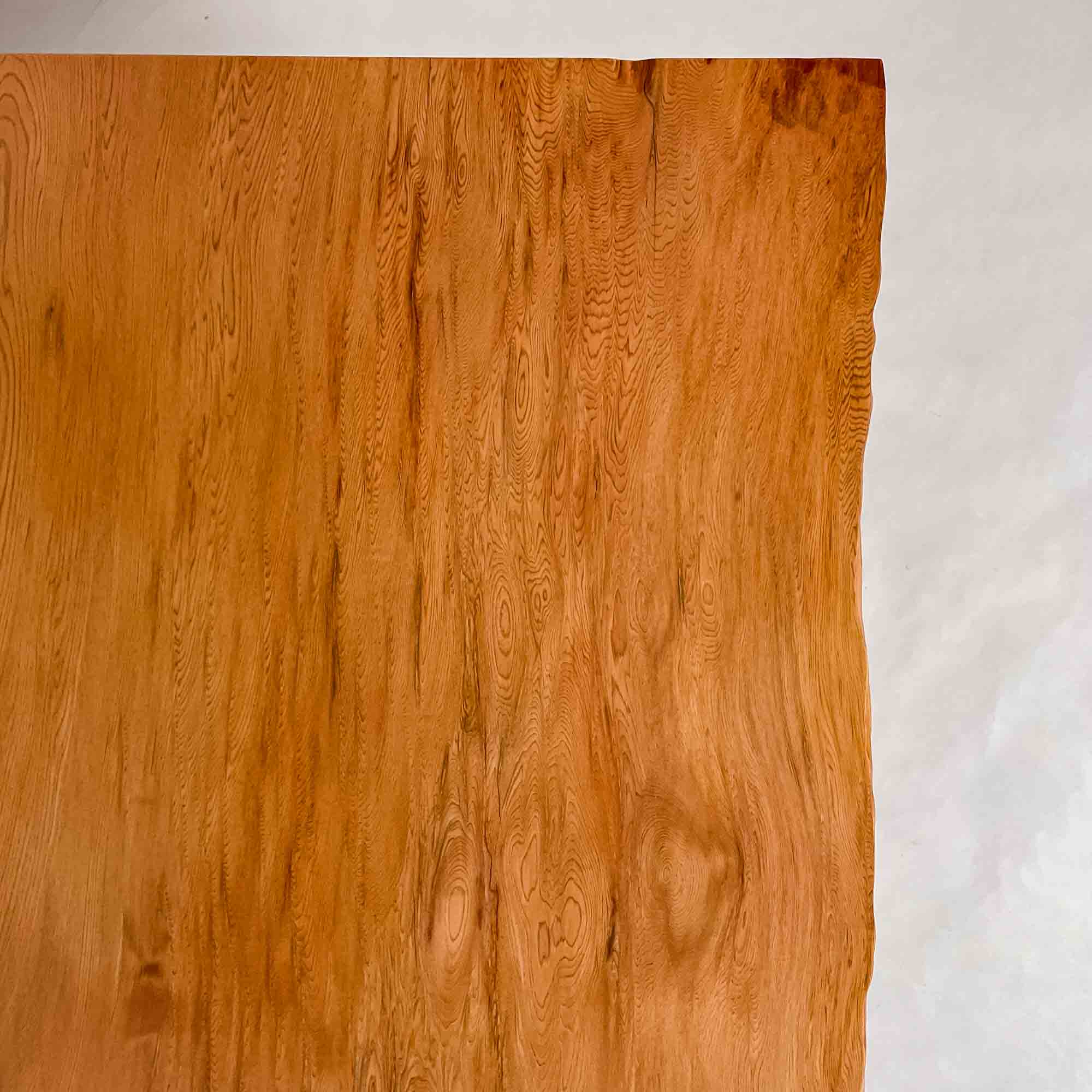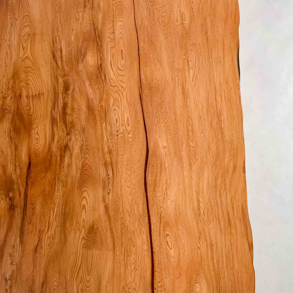 複数の板をつなぎ合わせたものとは異なり、途切れることなく続く杢目は自然の美しさをそのまま映し出します。