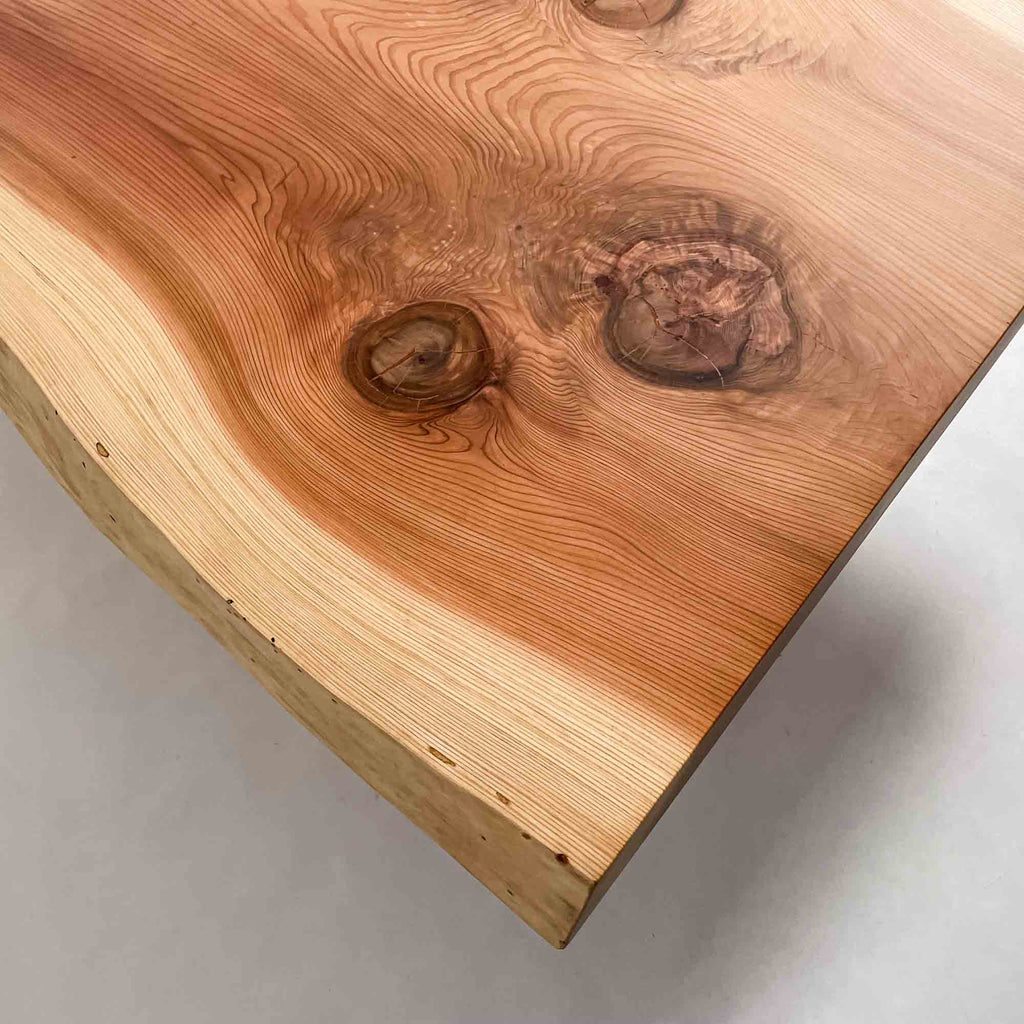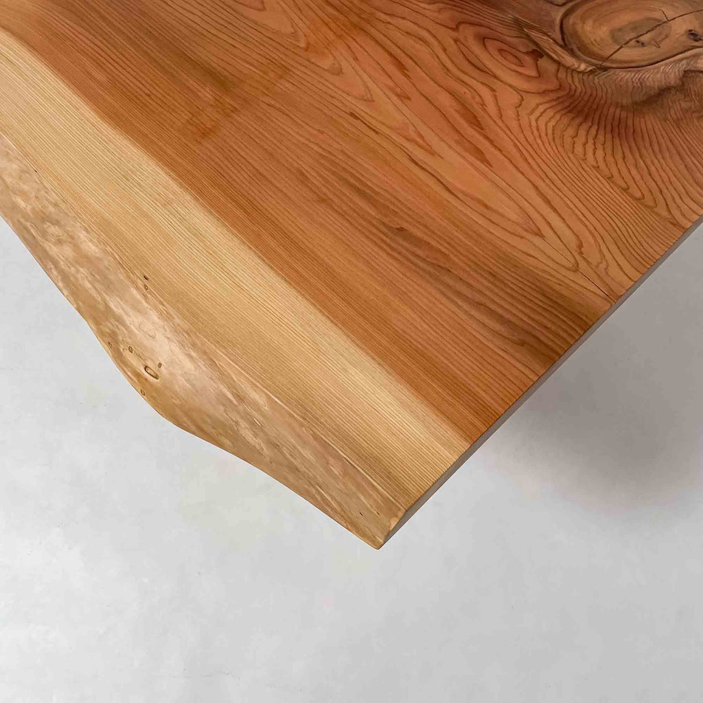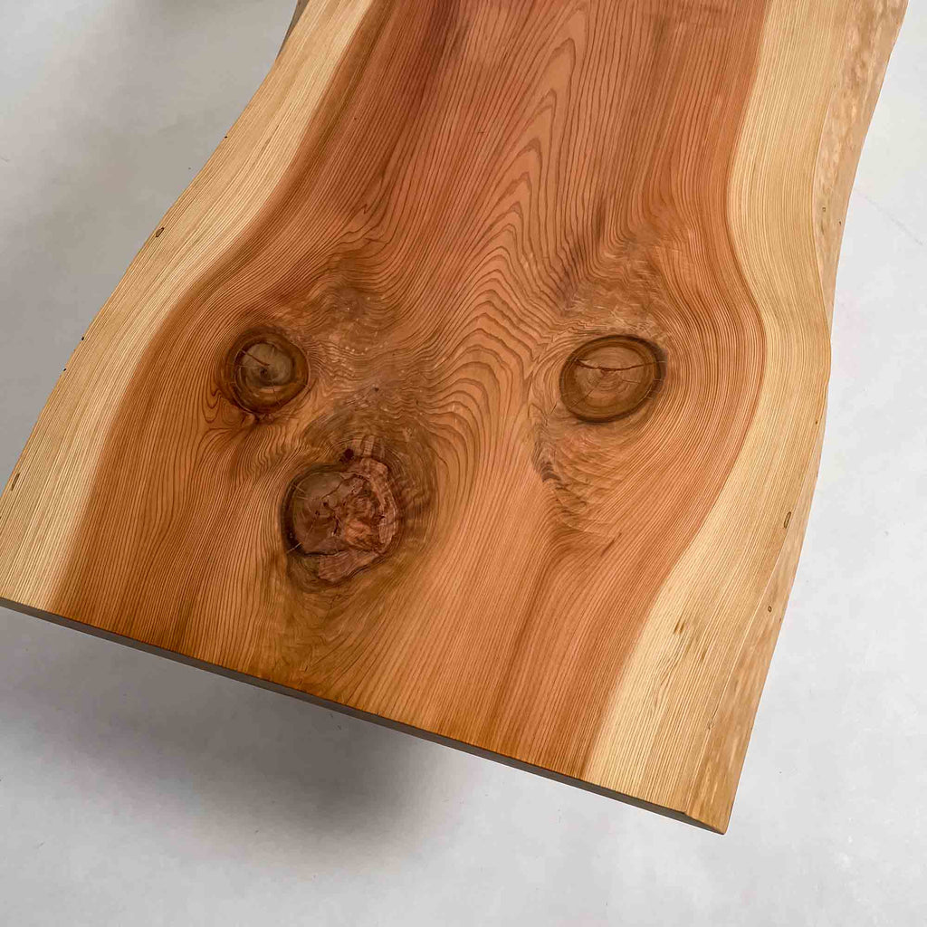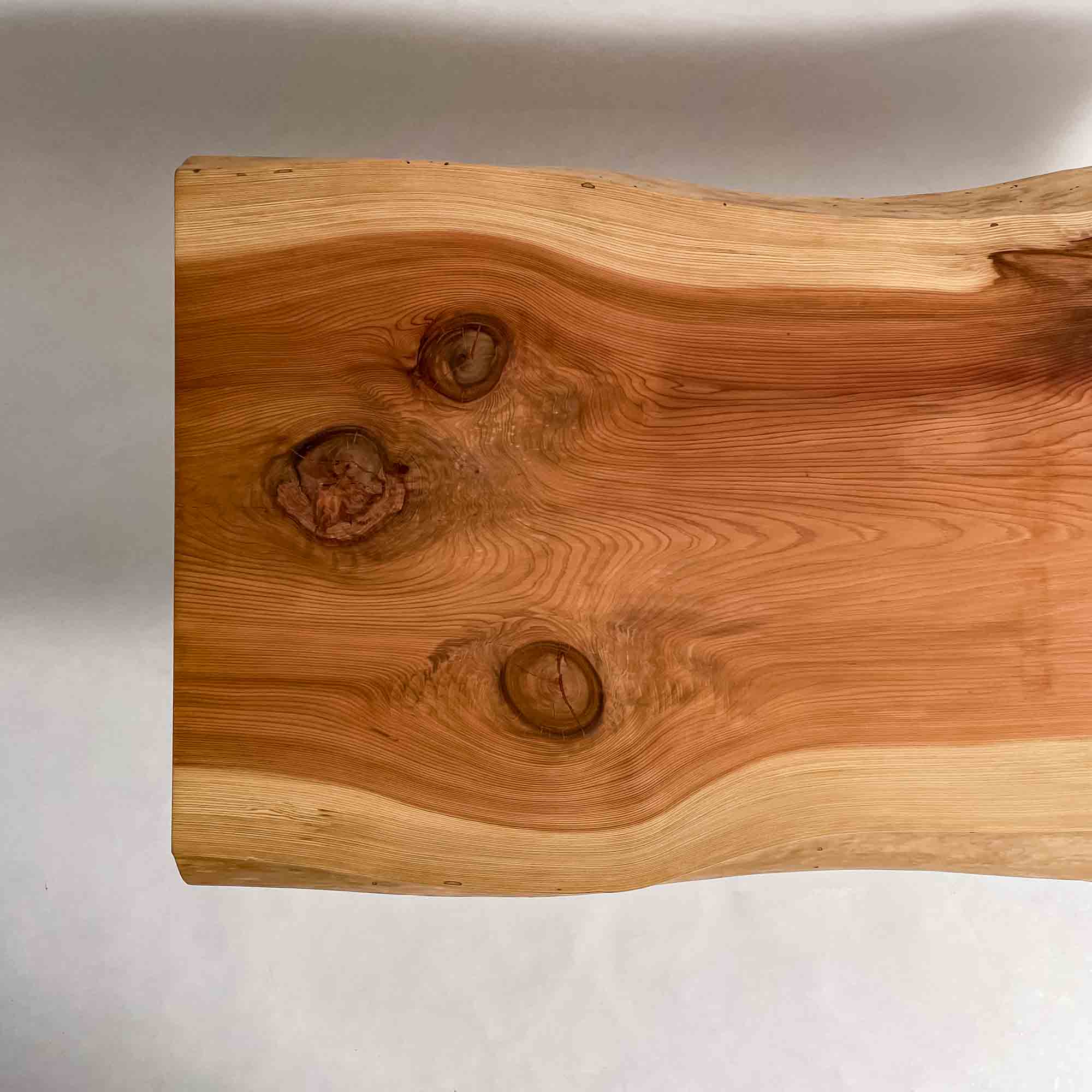 この板を選ぶ理由 密に育った時間が整った木目として現れ、形状の絞りとともに暮らしの中心に自然と軸が生まれます。 |