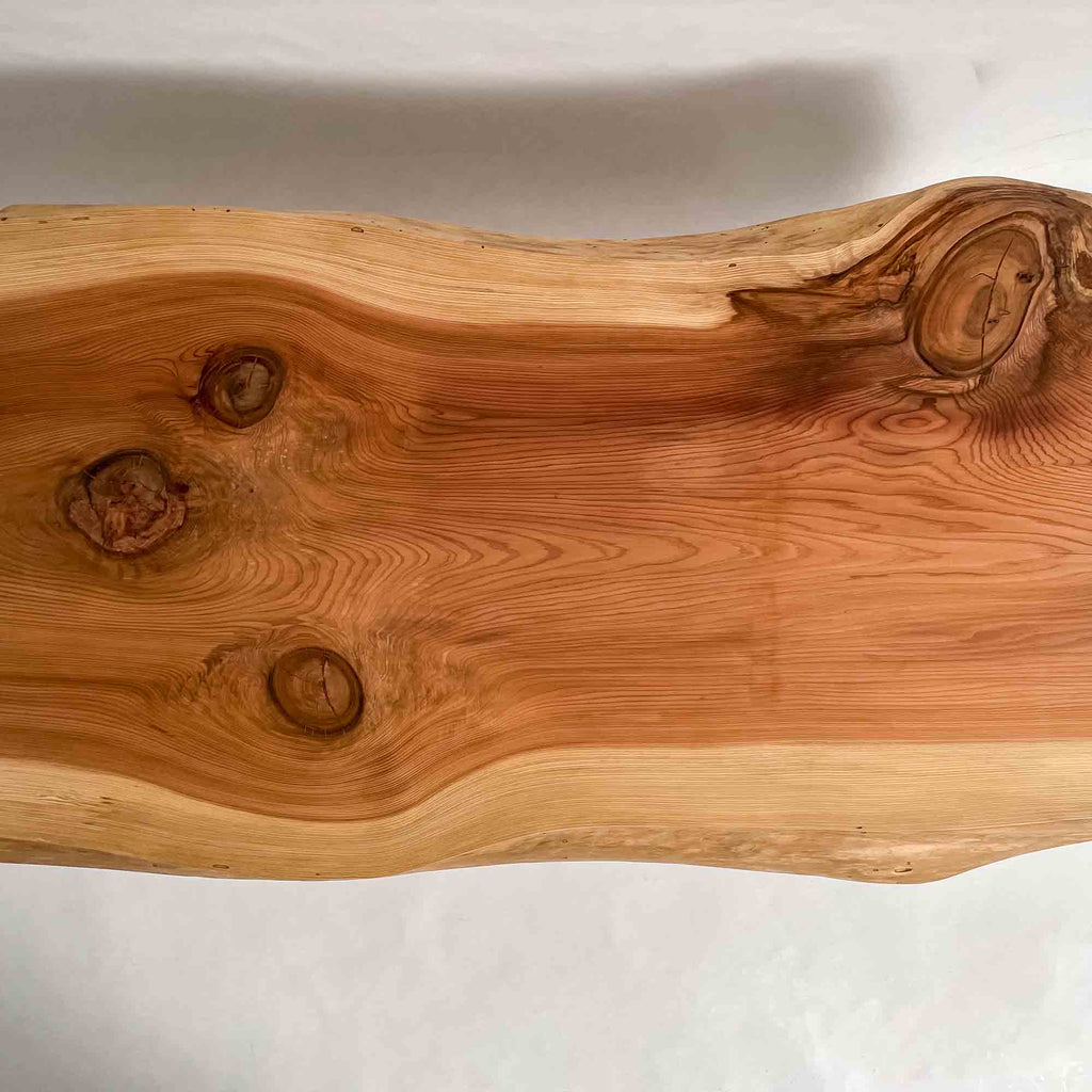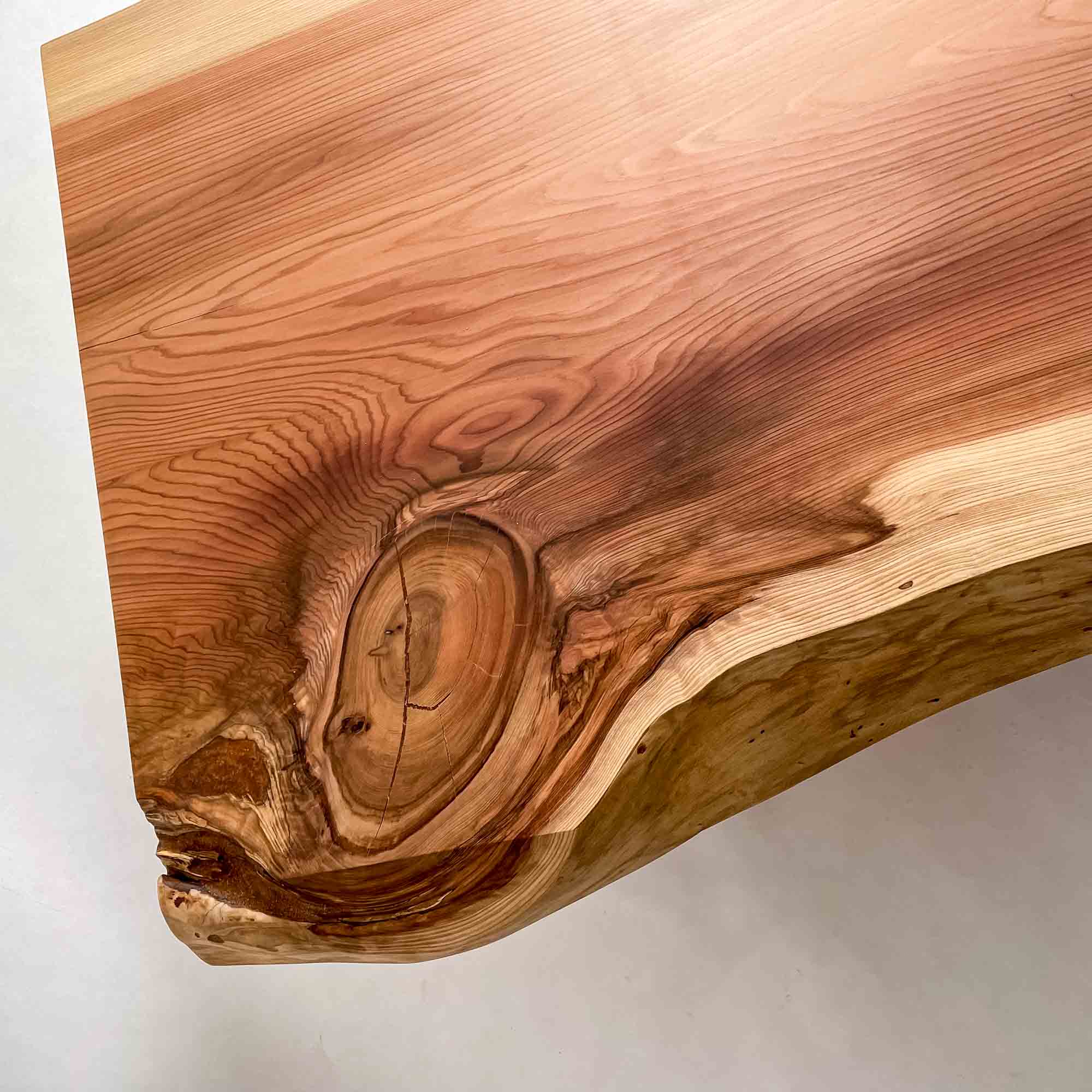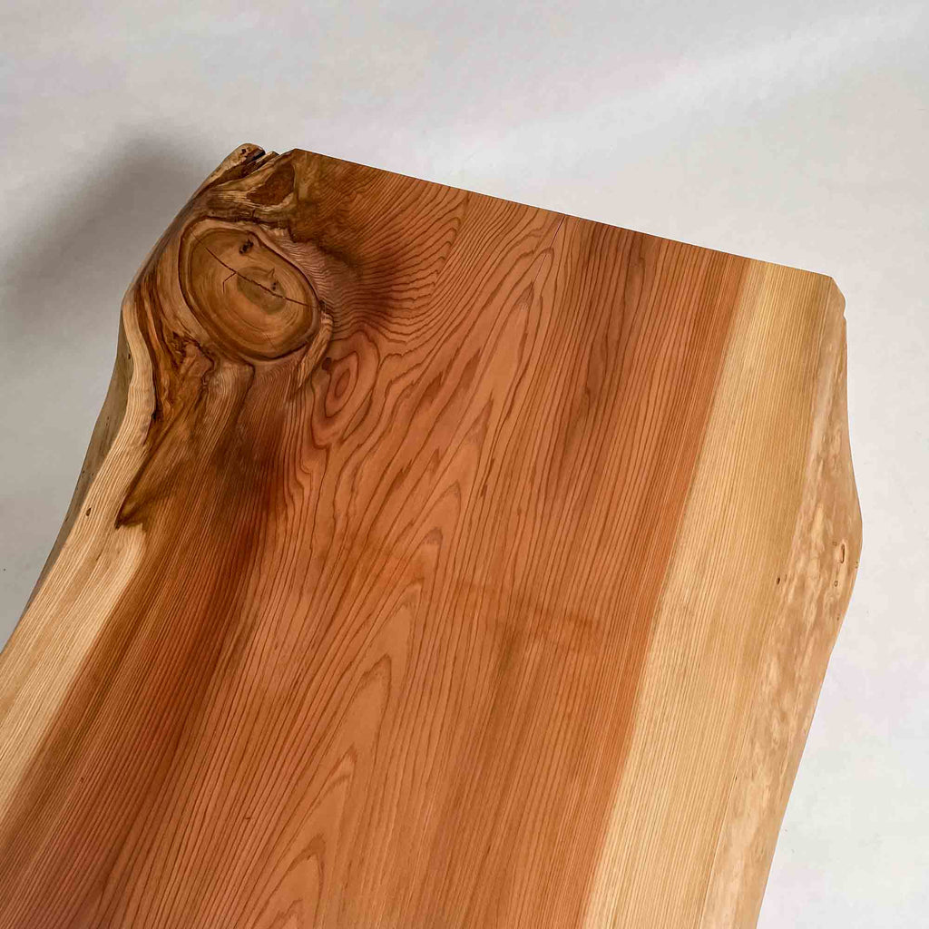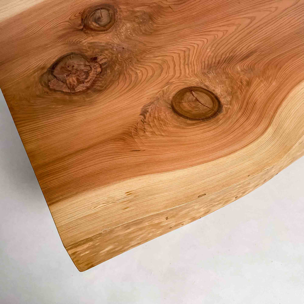 この板を選ぶ理由 密に育った時間が整った木目として現れ、形状の絞りとともに暮らしの中心に自然と軸が生まれます。 |