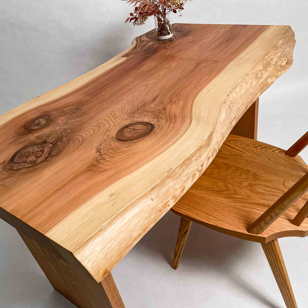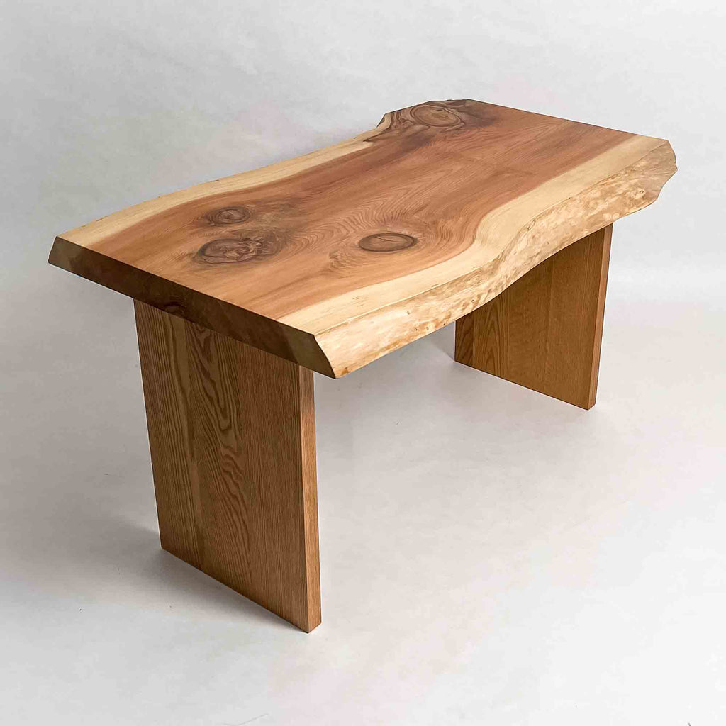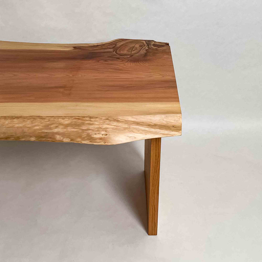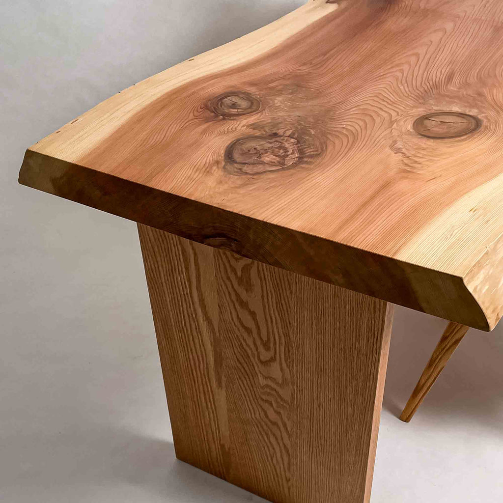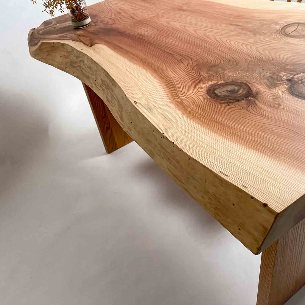| 時代を超えて受け継がれる機能性と、現代の暮らしに寄り添うデザイン性を兼ね備えた一枚板家具の製作を手がける。 | 現代の空間に映えるモダンなデザイン性を取り入れながら、一枚板の持つ素材感と存在感を活かした加工・製作を行う。 | |