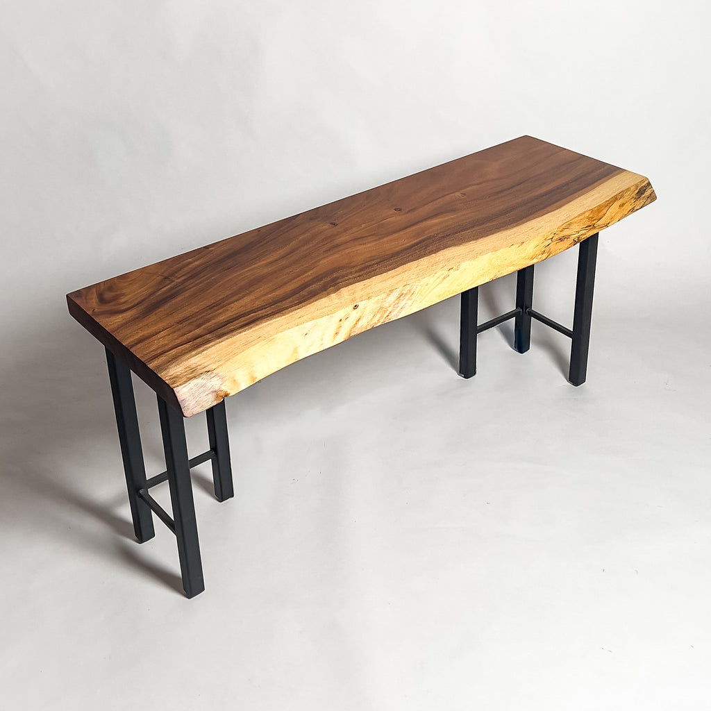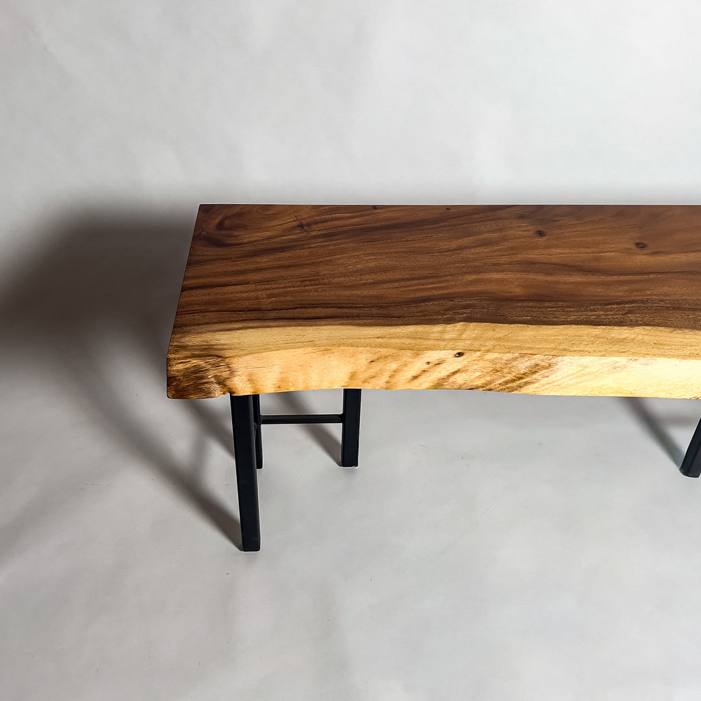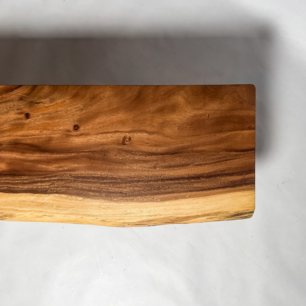 モンキーポッドが南の陽を浴び、風に包まれて育った証。その時間が層となり、濃淡を帯びた縞杢を描き出します。明暗のコントラストはまるで木が呼吸しているよう。職人がその表情を活かしながら磨き上げ、自然の曲線を残した姿は、静かに時を重ねてきた木の物語そのものです。