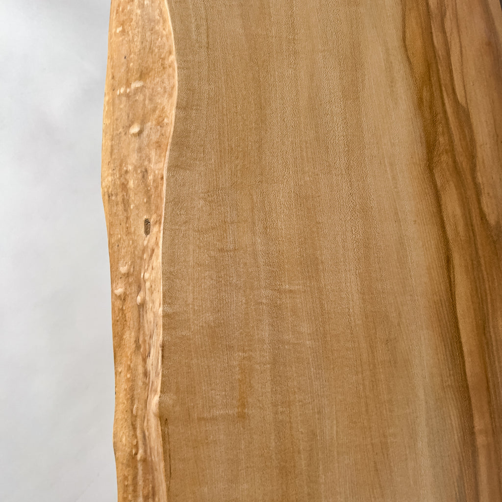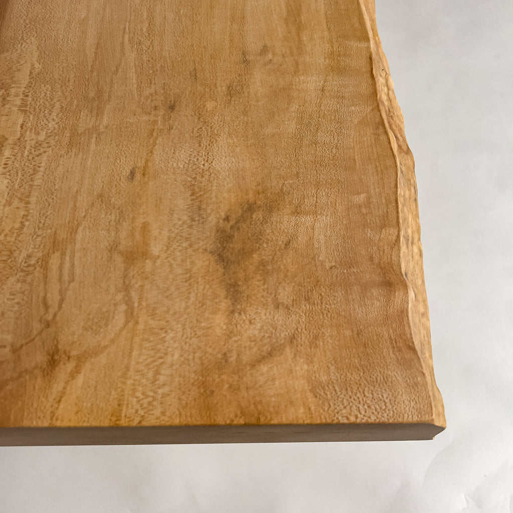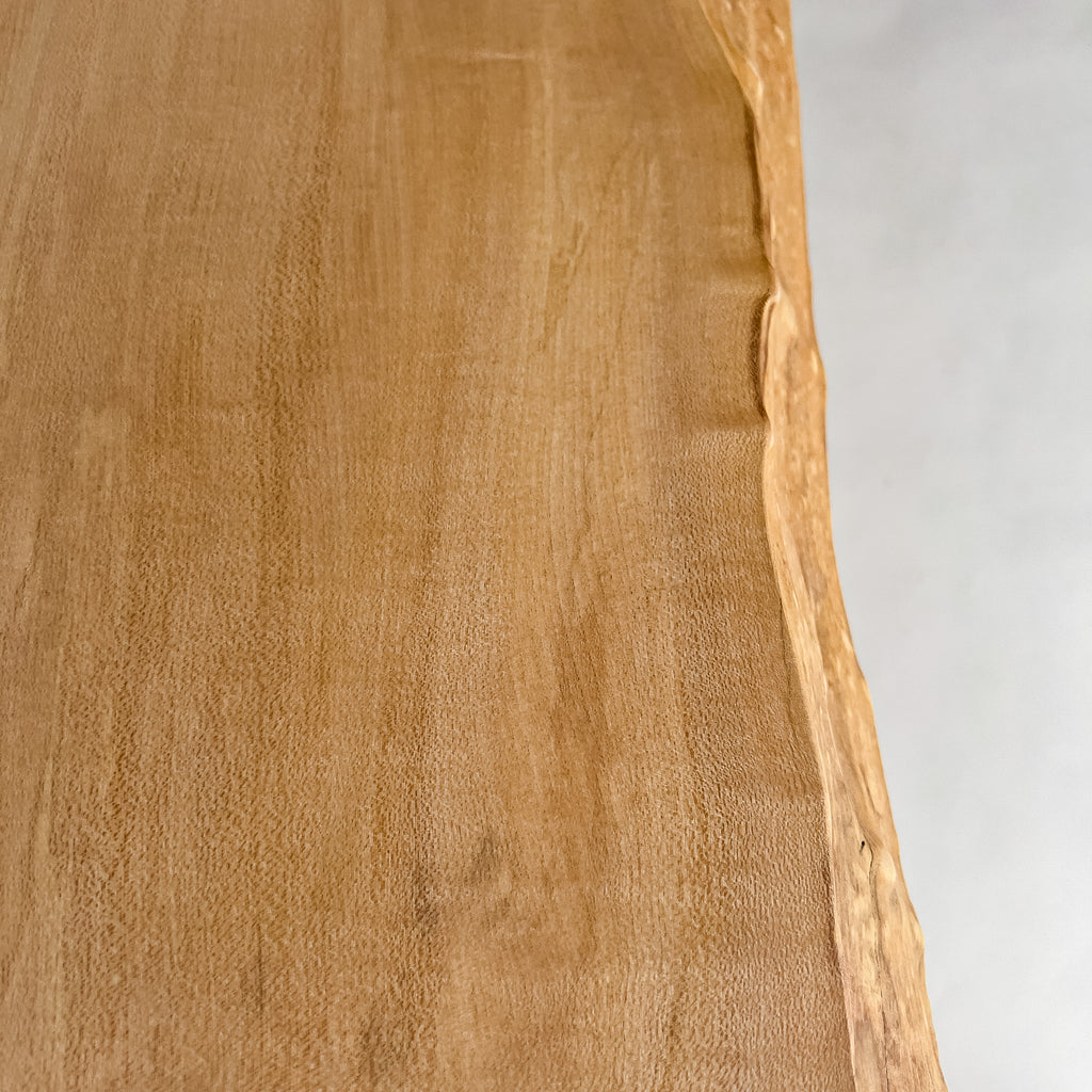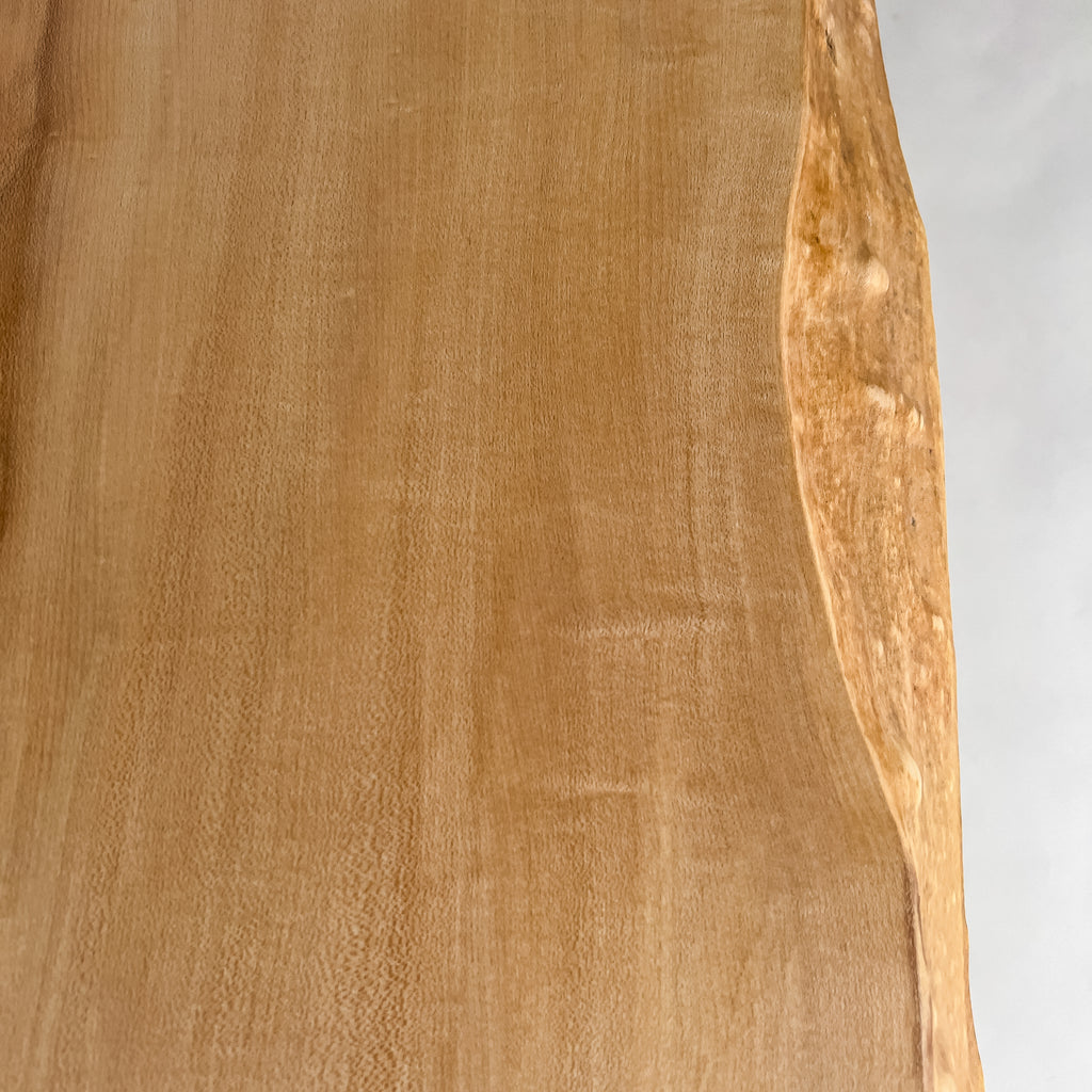 緻密で滑らかな木肌を持つ楓は、淡い乳白色と上品な光沢が魅力。硬く粘り強い性質を持つため一枚板テーブルに適し、経年変化で飴色へと深まる美しさと高い耐久性を兼ね備えています。