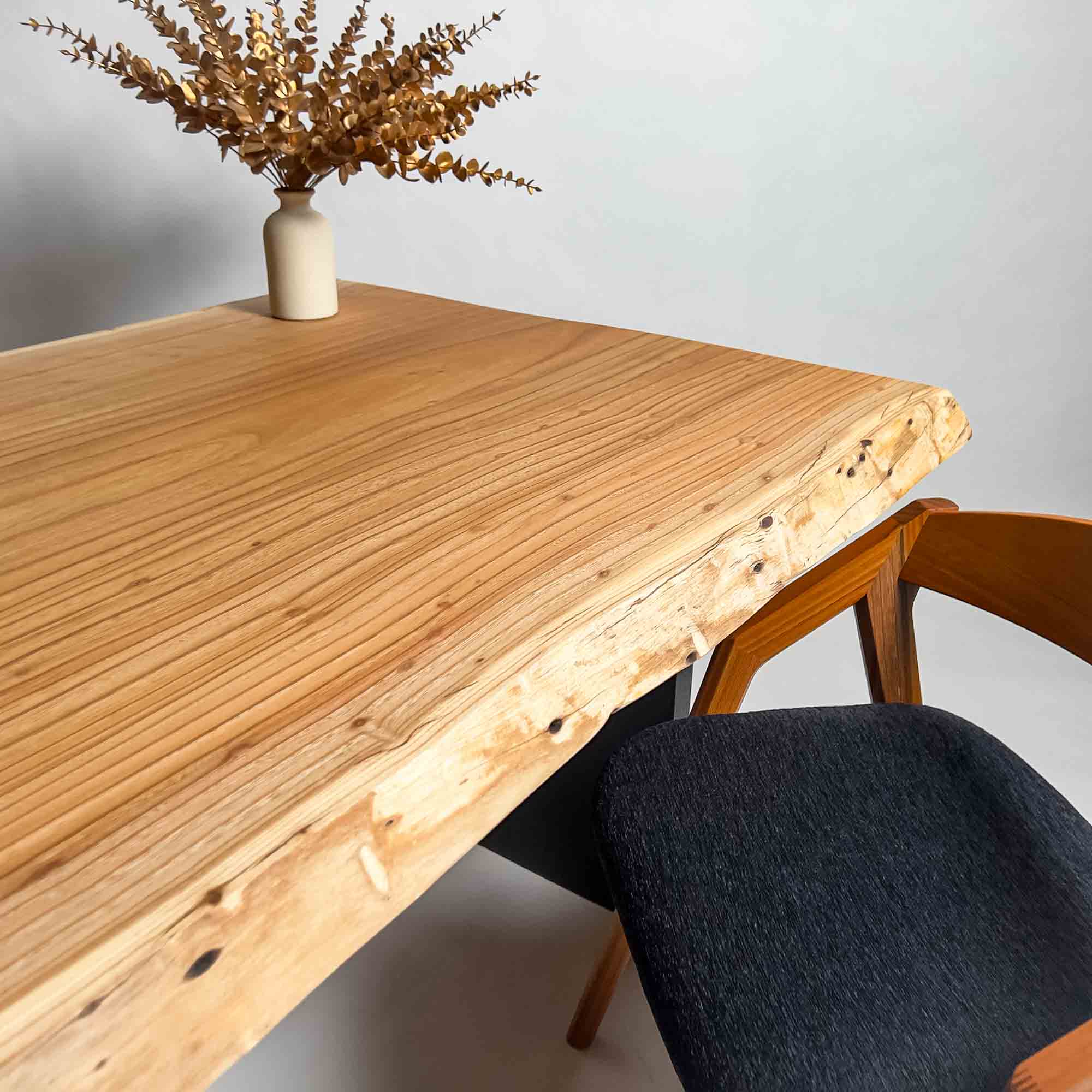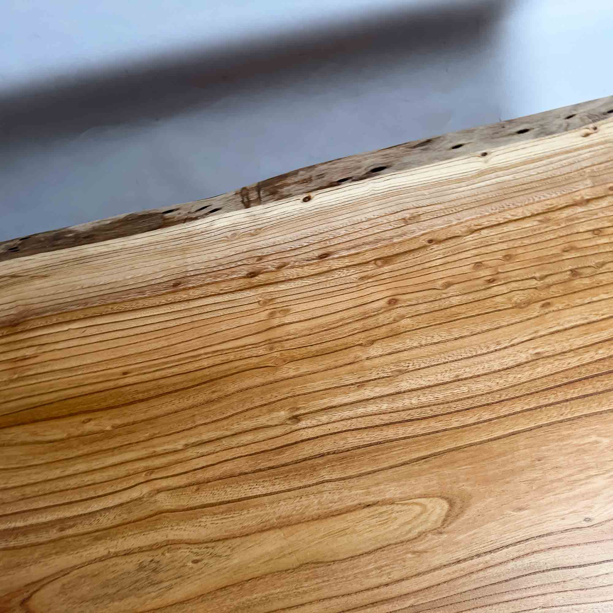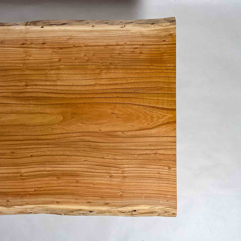 複数の板をつなぎ合わせたものとは異なり、途切れることなく続く杢目は自然の美しさをそのまま映し出します。