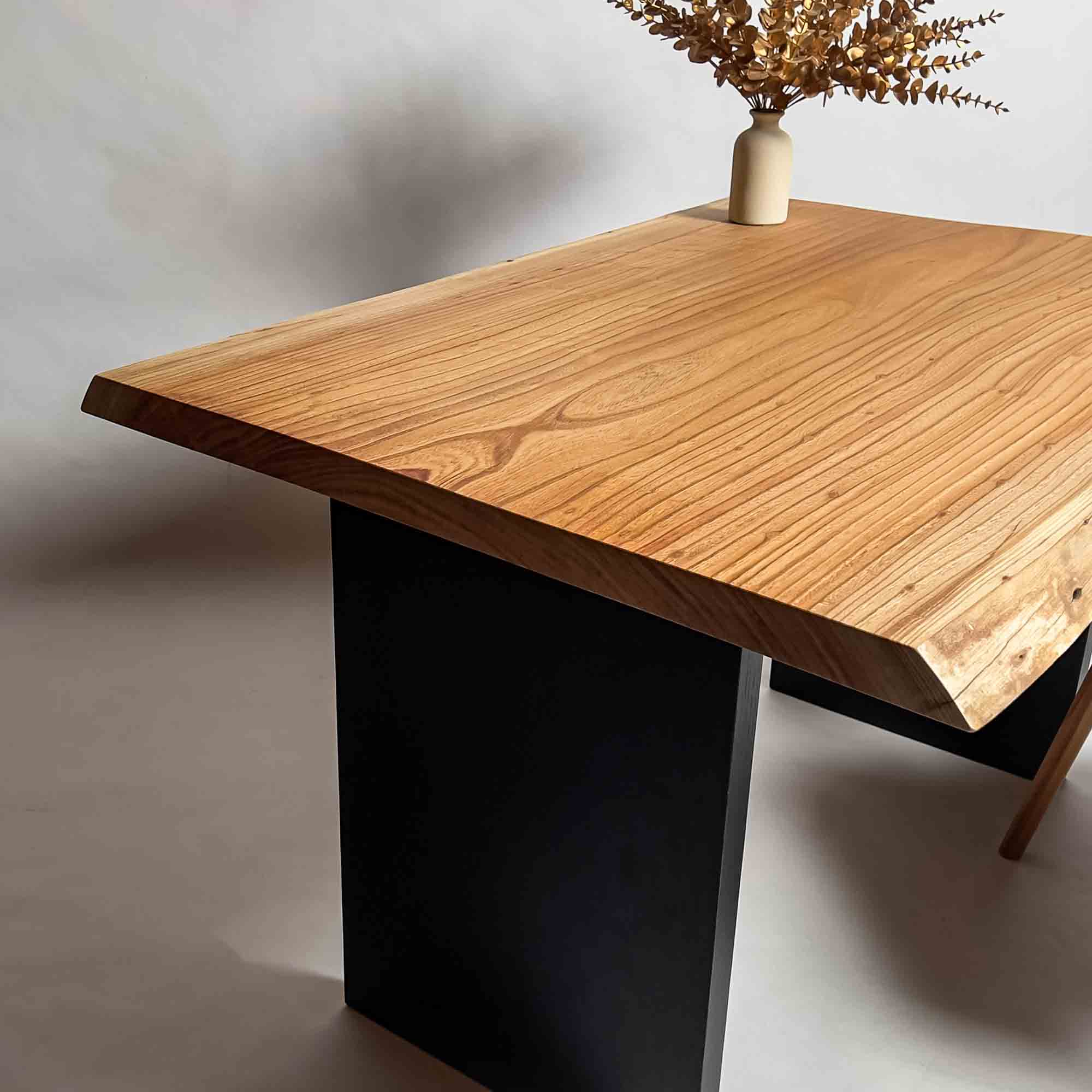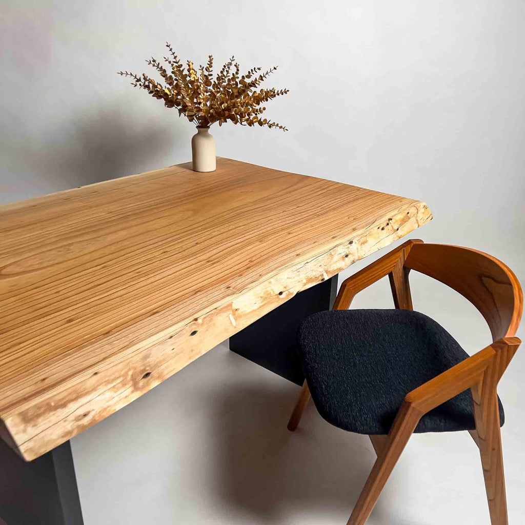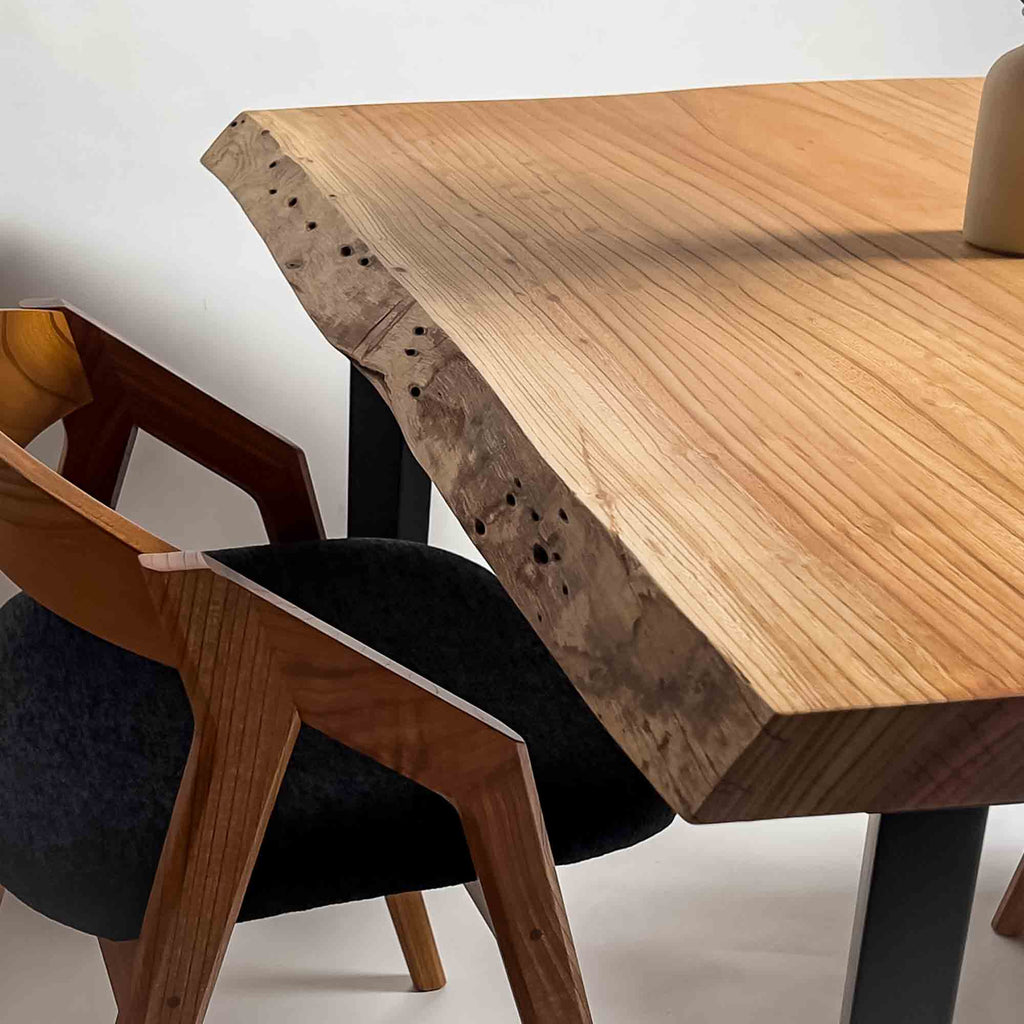 複数の板をつなぎ合わせたものとは異なり、途切れることなく続く杢目は自然の美しさをそのまま映し出します。