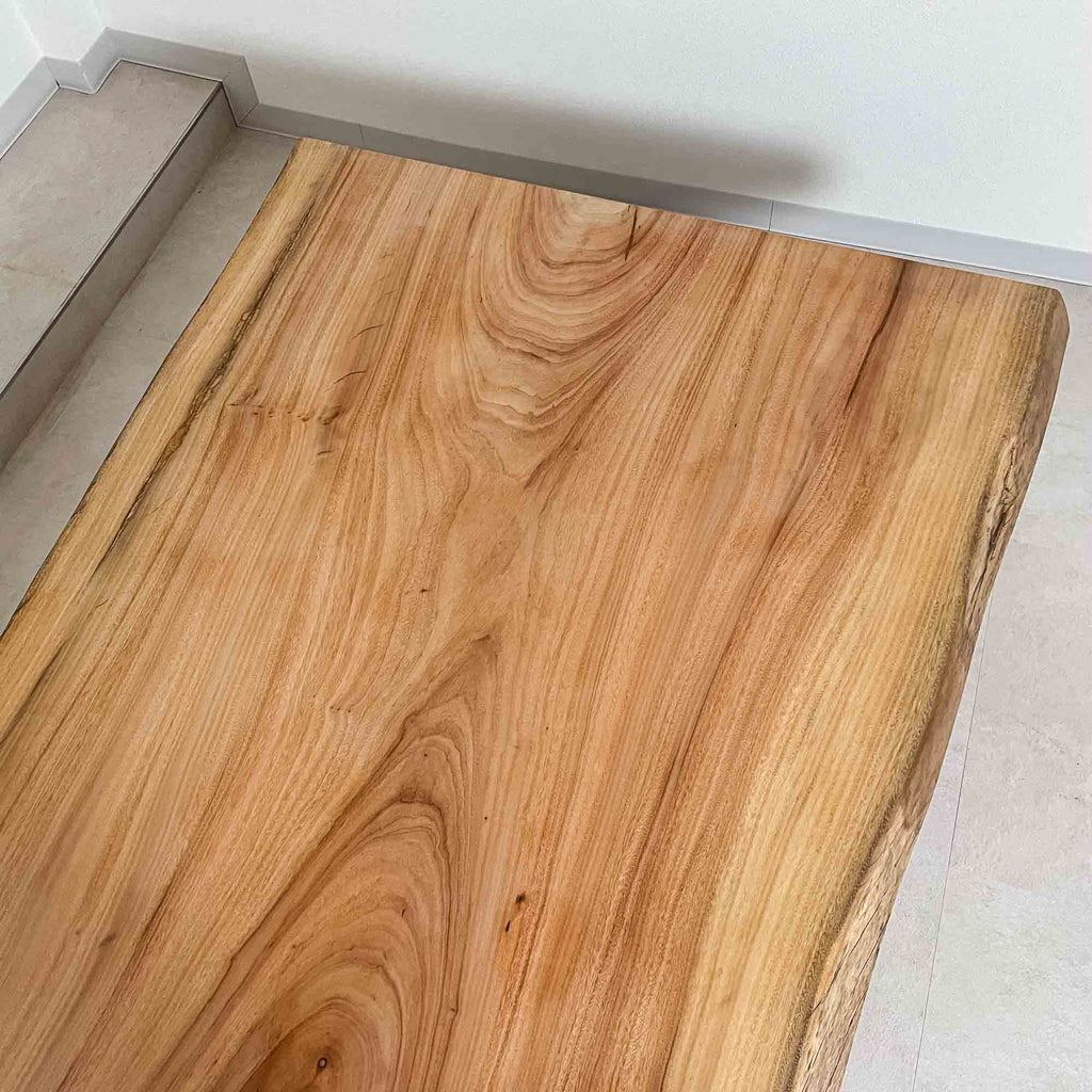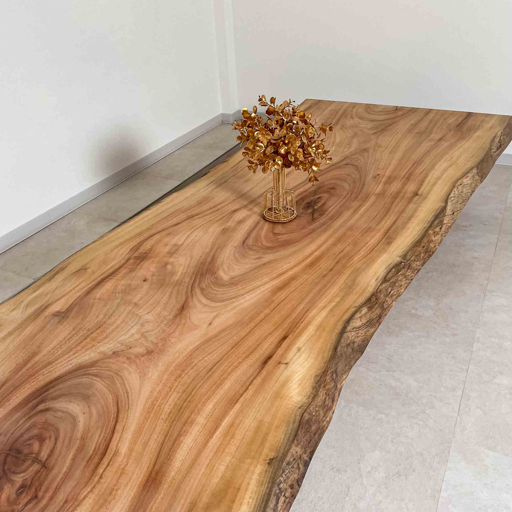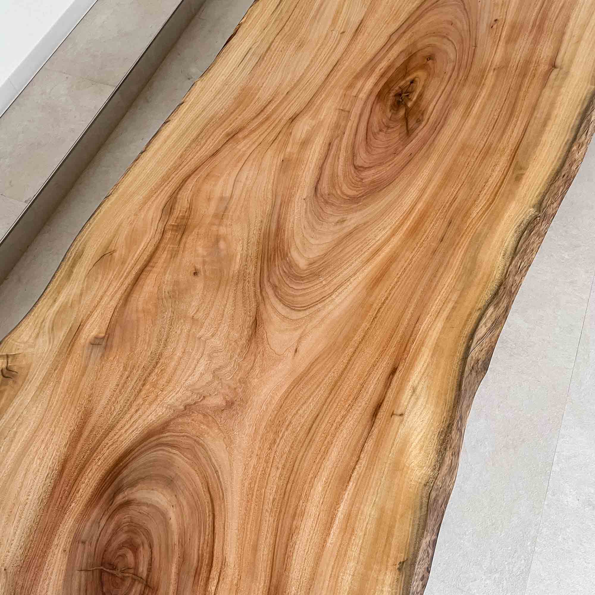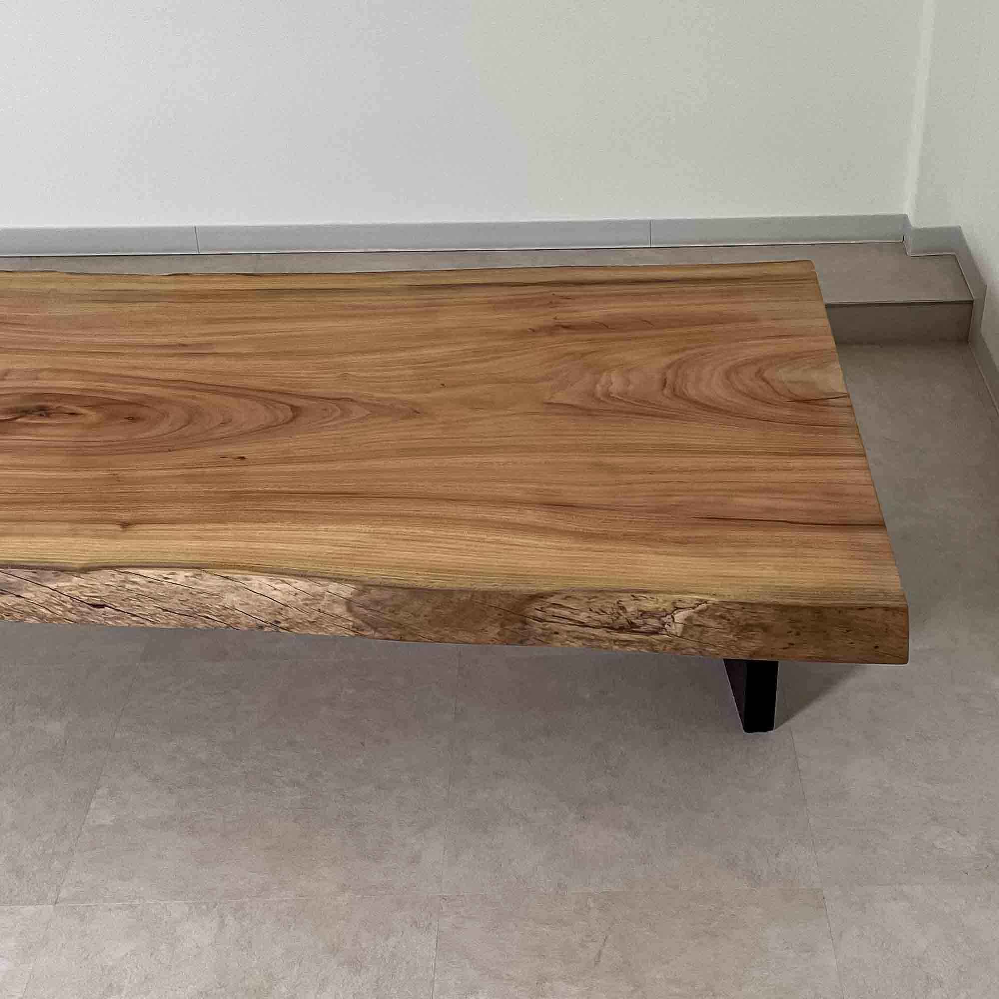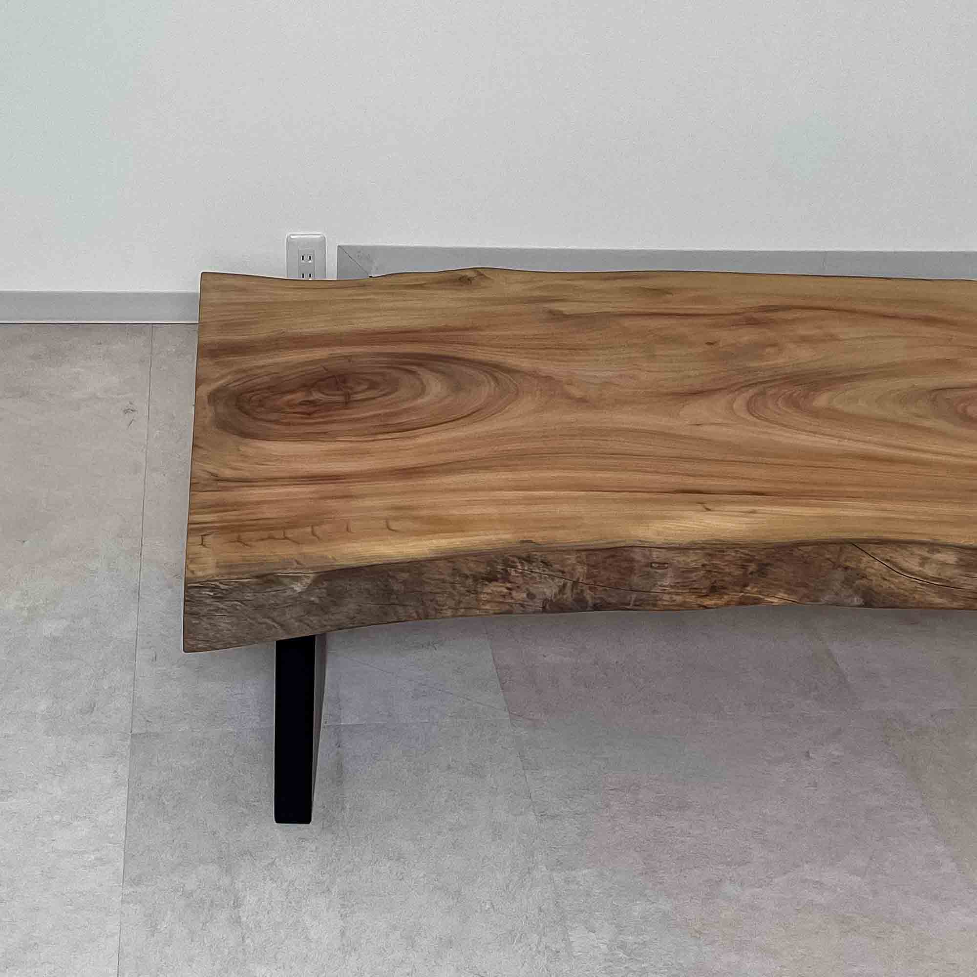 複数の板をつなぎ合わせたものとは異なり、途切れることなく続く杢目は自然の美しさをそのまま映し出します。