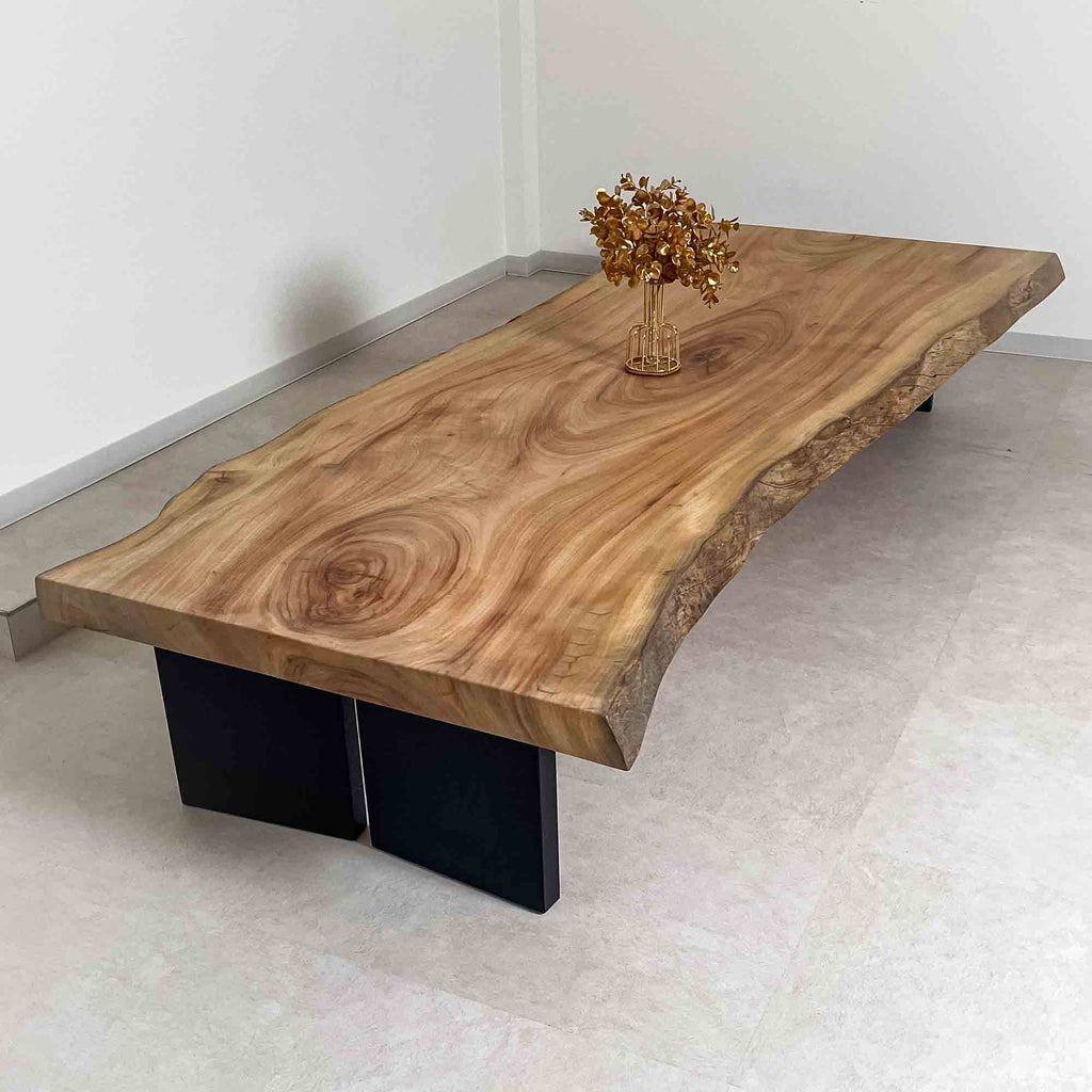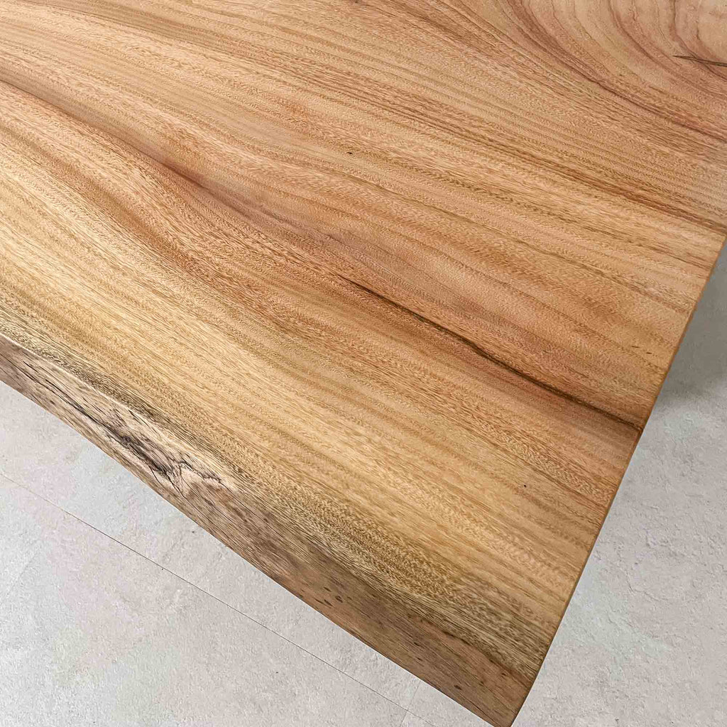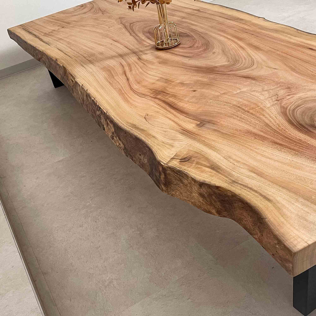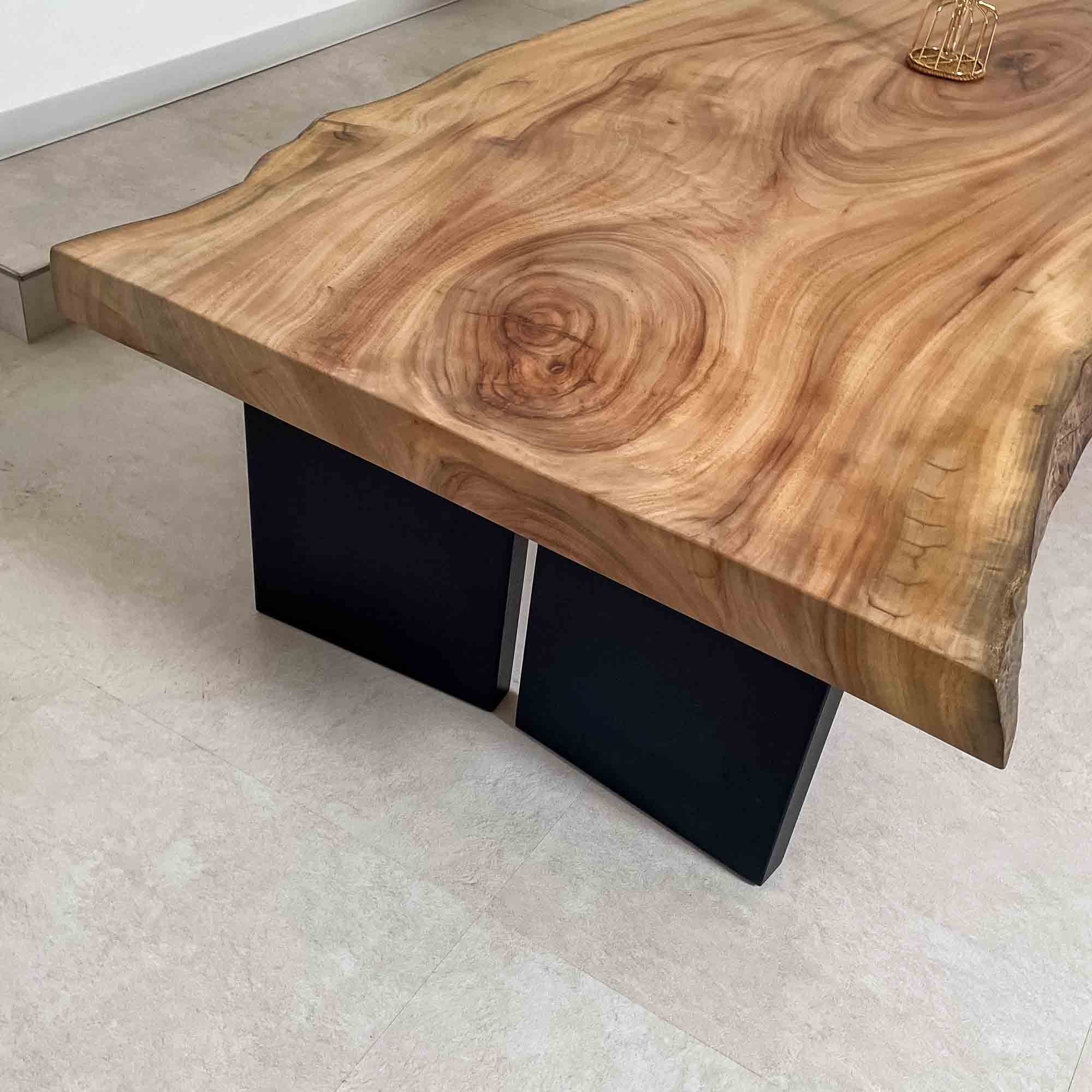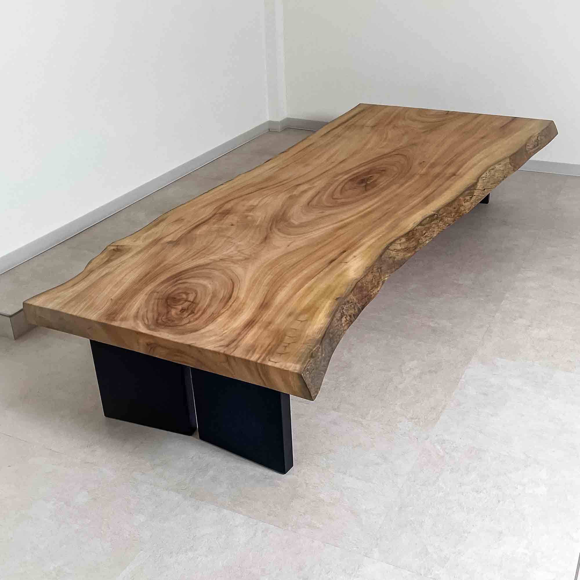 複数の板をつなぎ合わせたものとは異なり、途切れることなく続く杢目は自然の美しさをそのまま映し出します。