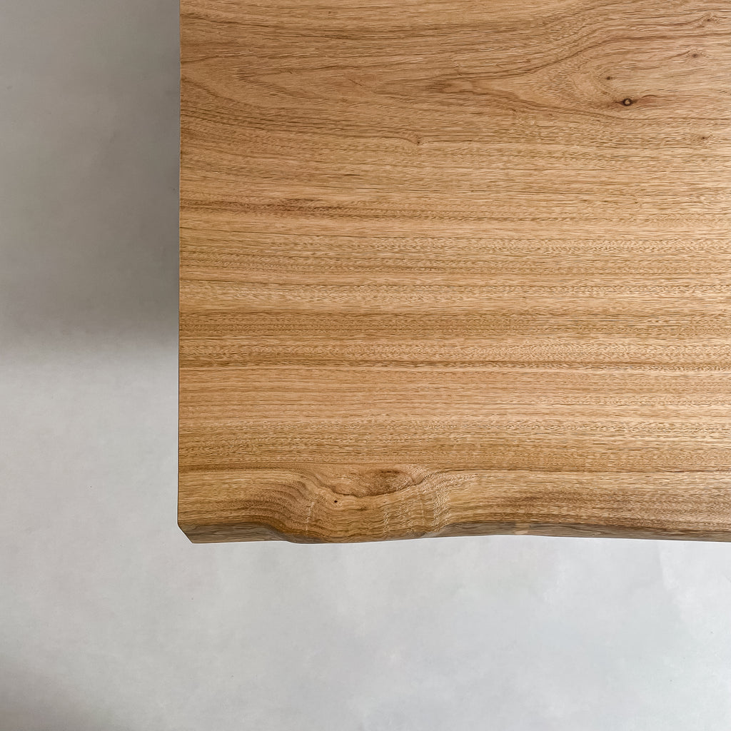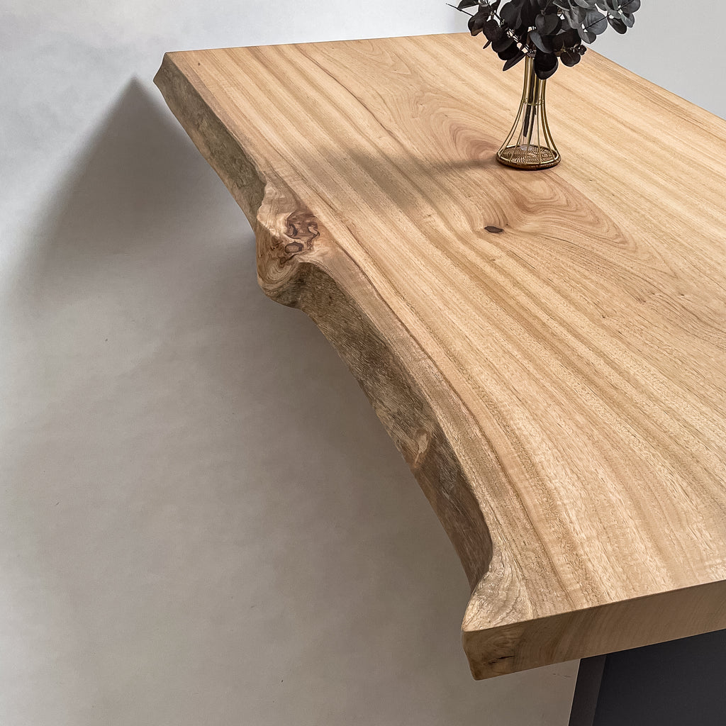 複数の板をつなぎ合わせたものとは異なり、途切れることなく続く杢目は自然の美しさをそのまま映し出します。