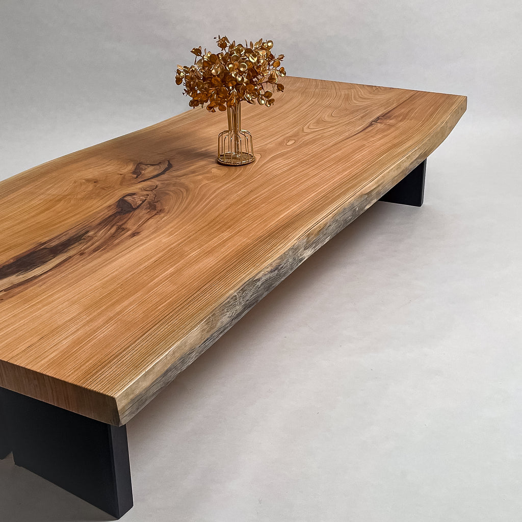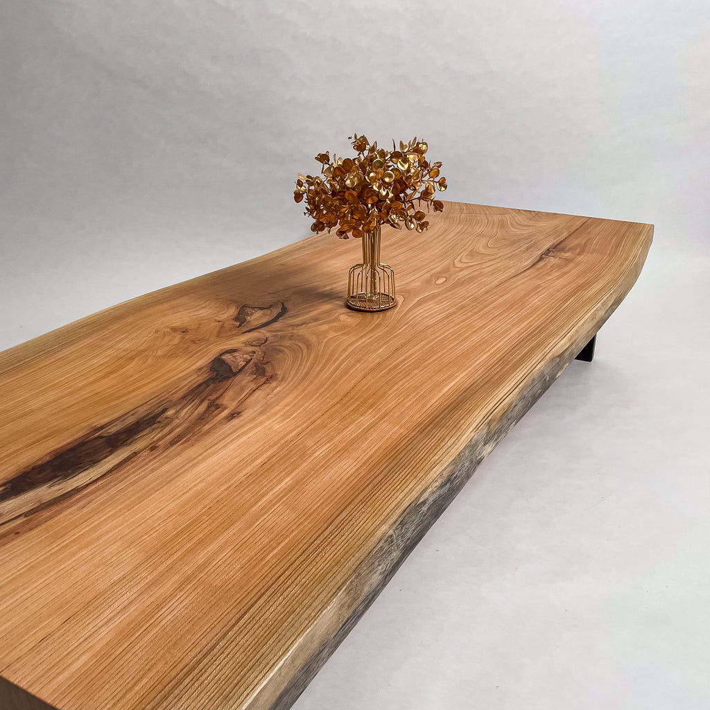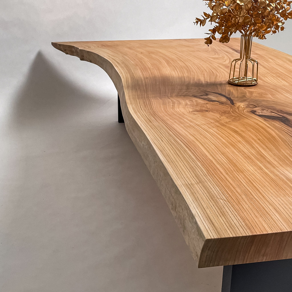 複数の板をつなぎ合わせたものとは異なり、途切れることなく続く杢目は自然の美しさをそのまま映し出します。