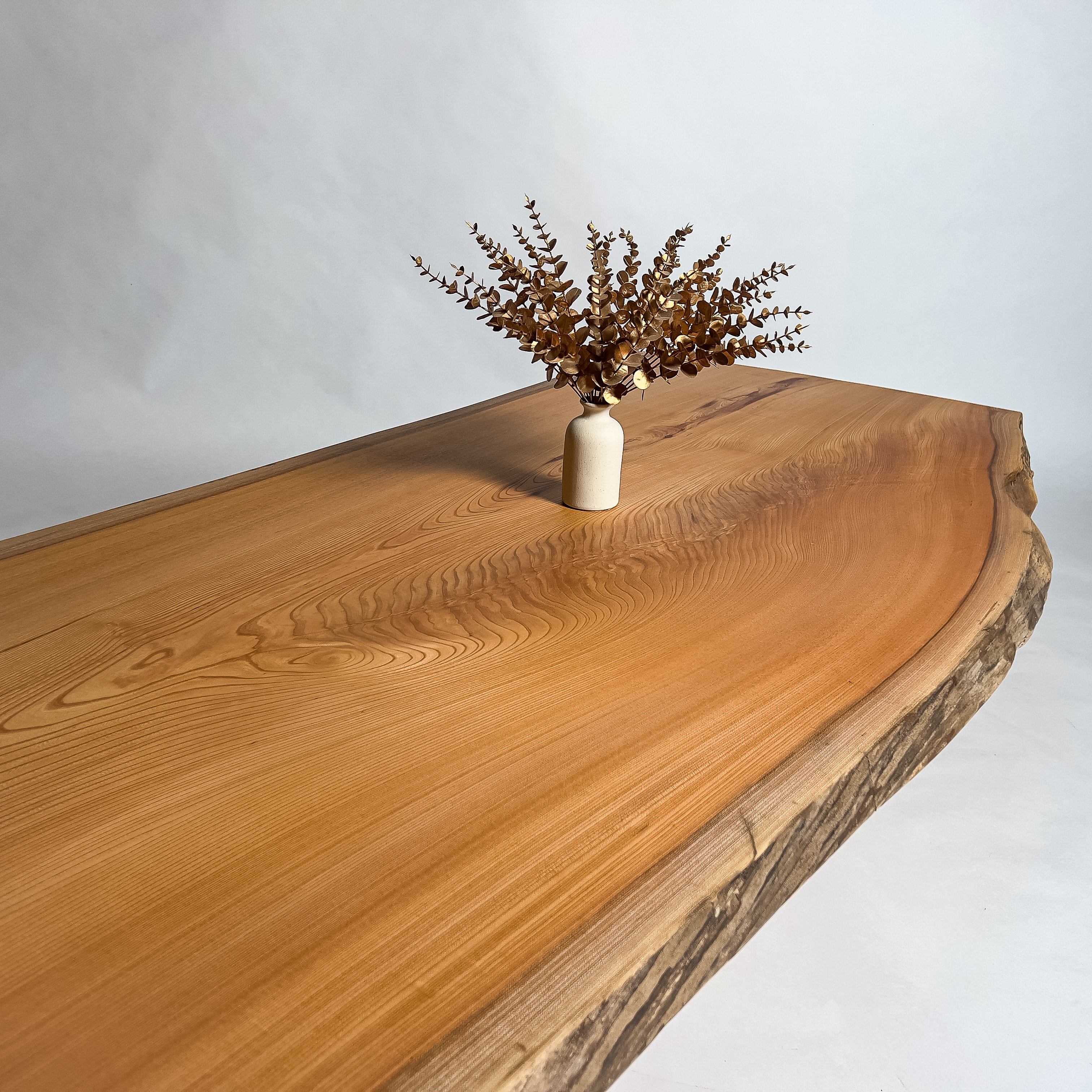 複数の板をつなぎ合わせたものとは異なり、途切れることなく続く杢目は自然の美しさをそのまま映し出します。