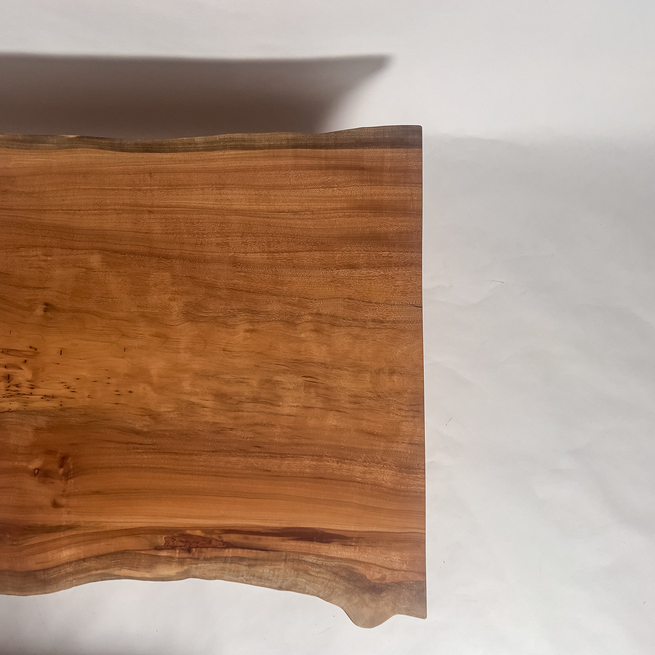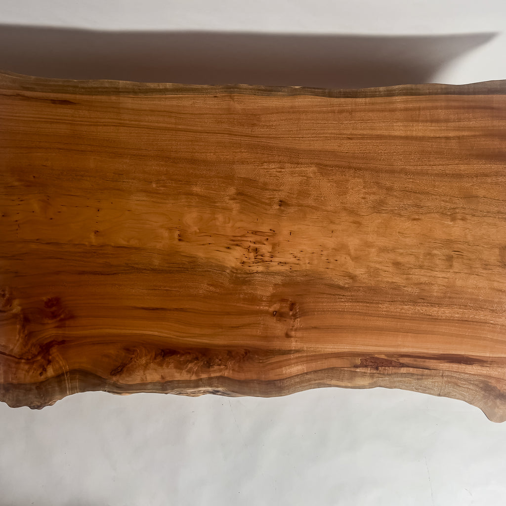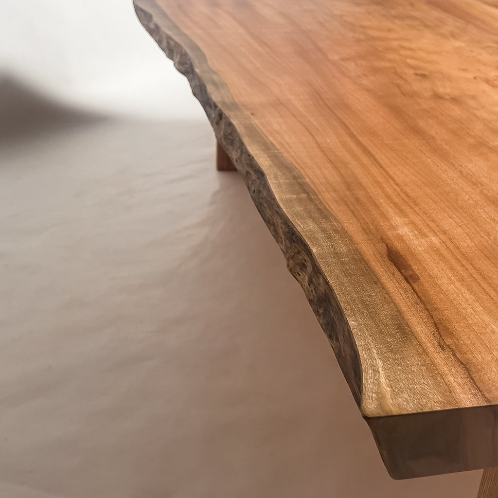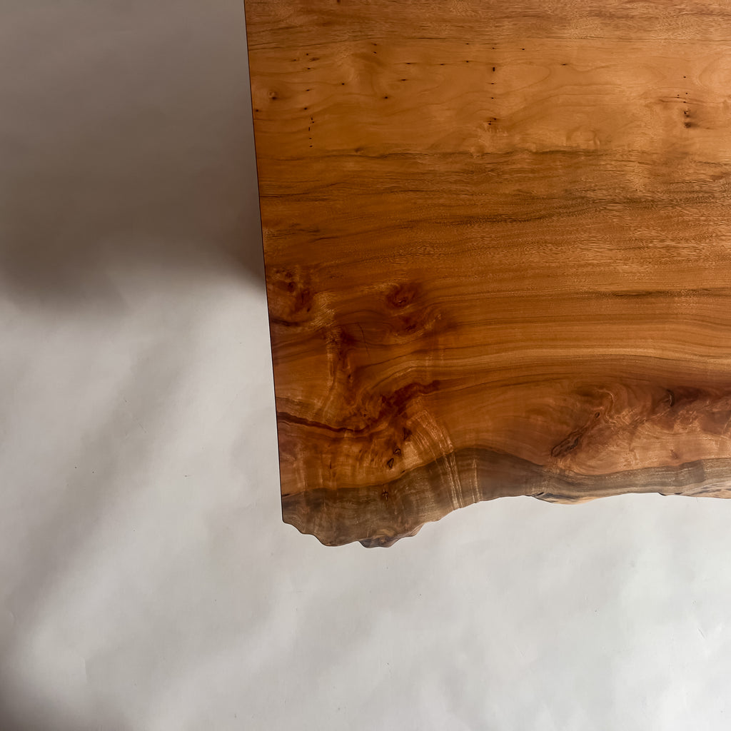 現代の空間に映えるモダンな佇まいを意識しつつ、一枚板ごとに素材感と存在感の出方を見極め、加工を行います。造形を整えすぎず、木が本来持つ表情を残すことを大切にしています。
