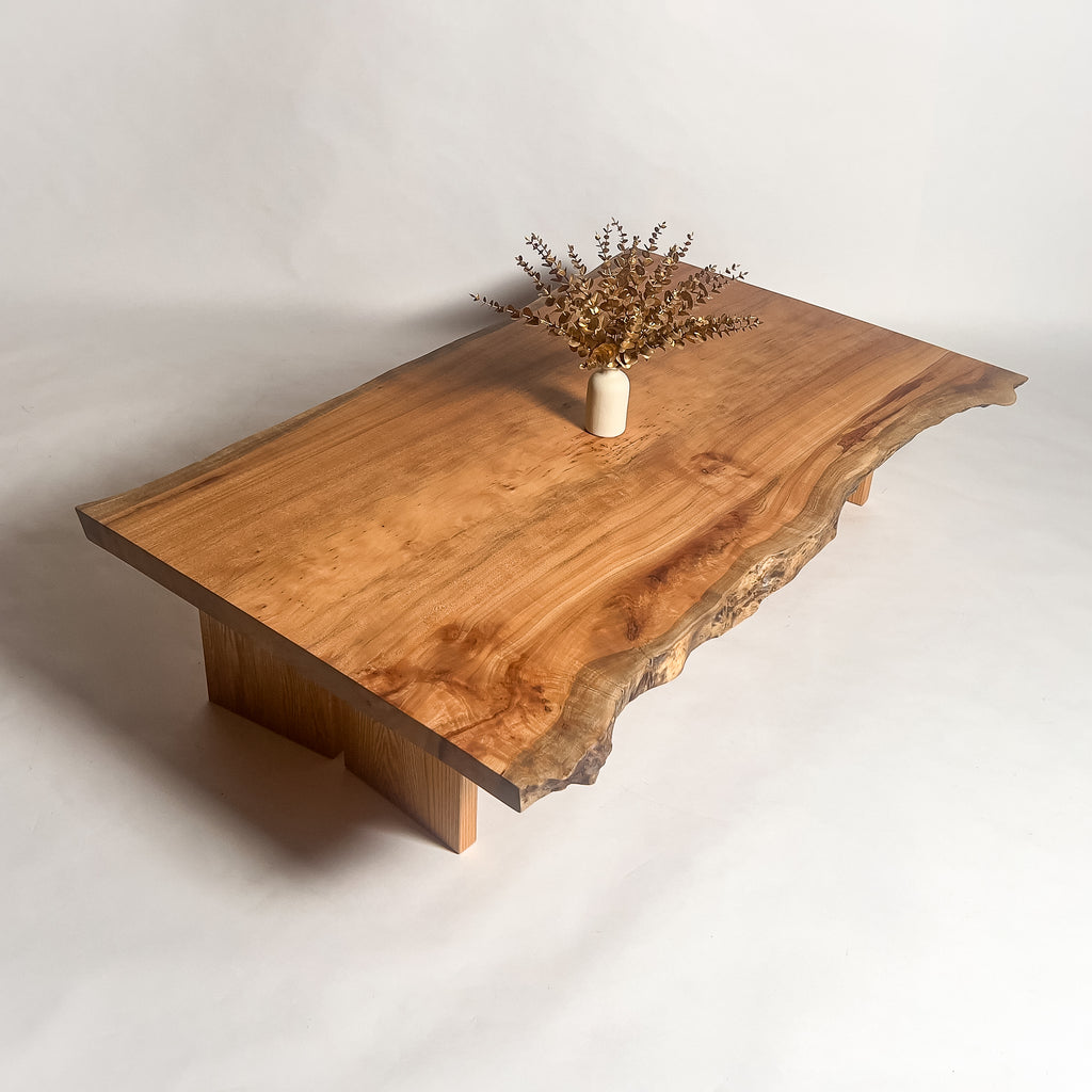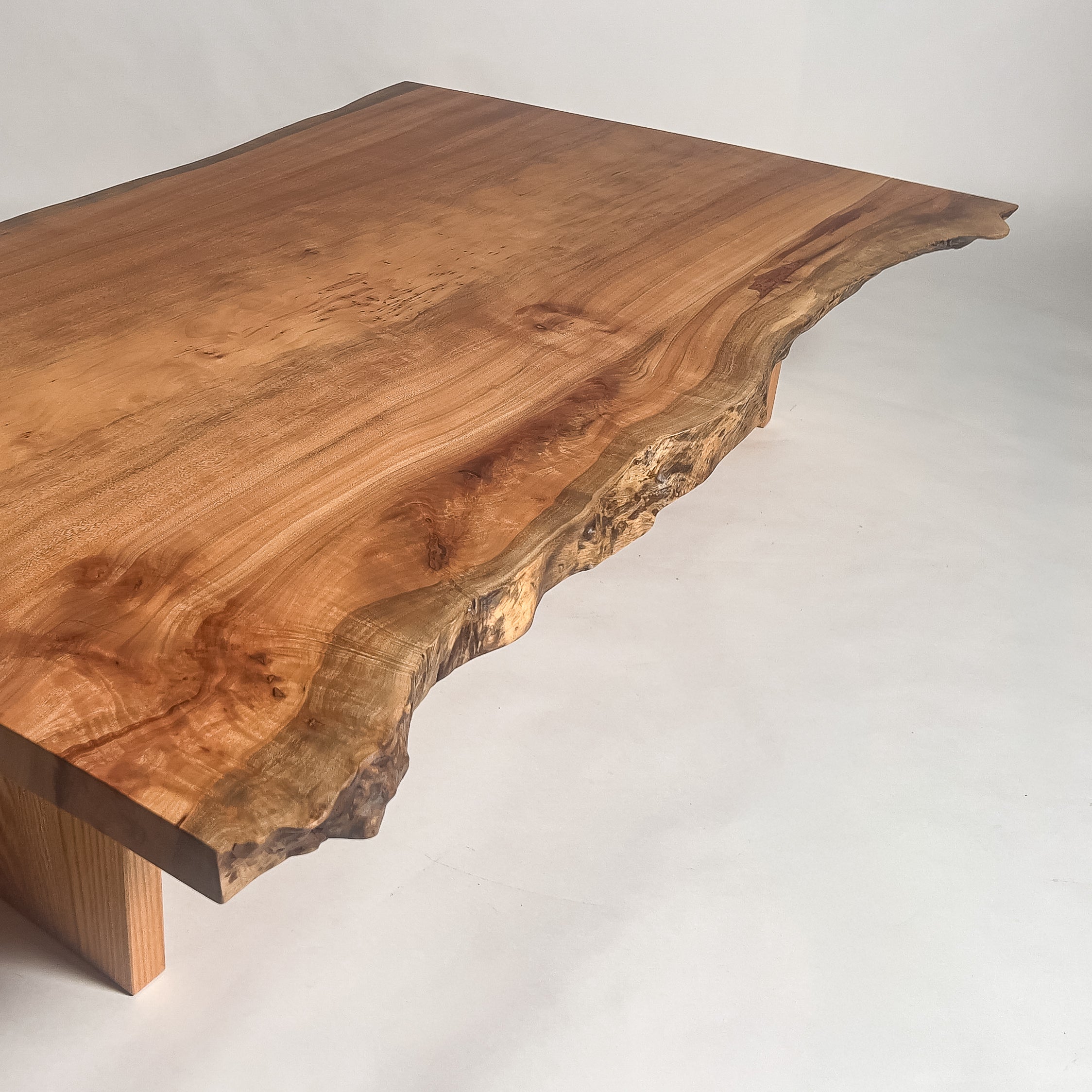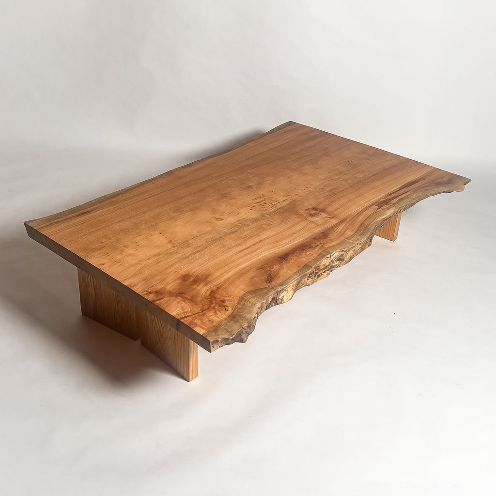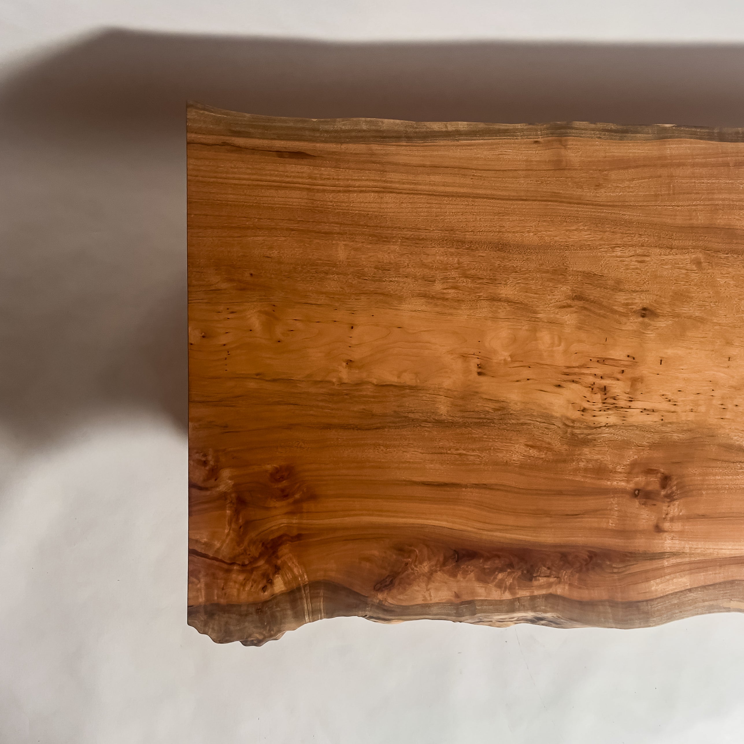 現代の空間に映えるモダンな佇まいを意識しつつ、一枚板ごとに素材感と存在感の出方を見極め、加工を行います。造形を整えすぎず、木が本来持つ表情を残すことを大切にしています。