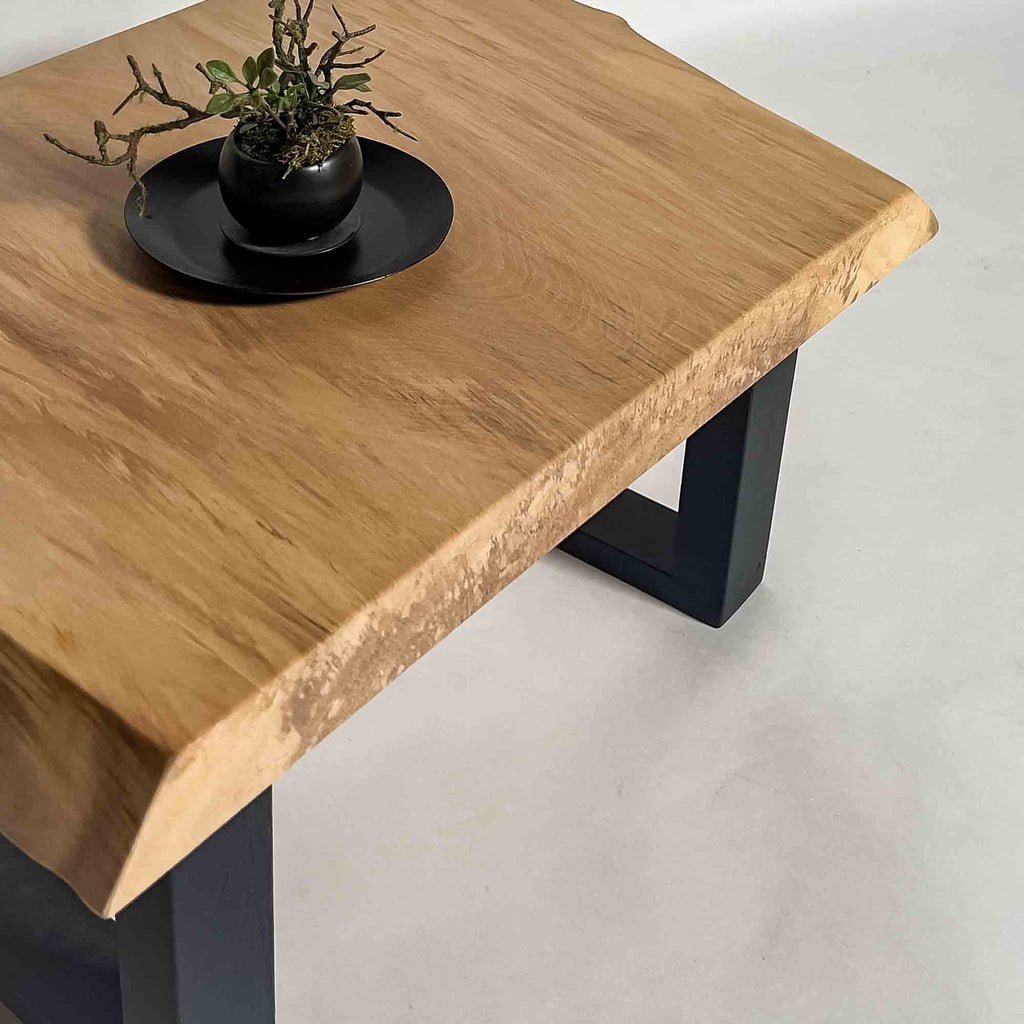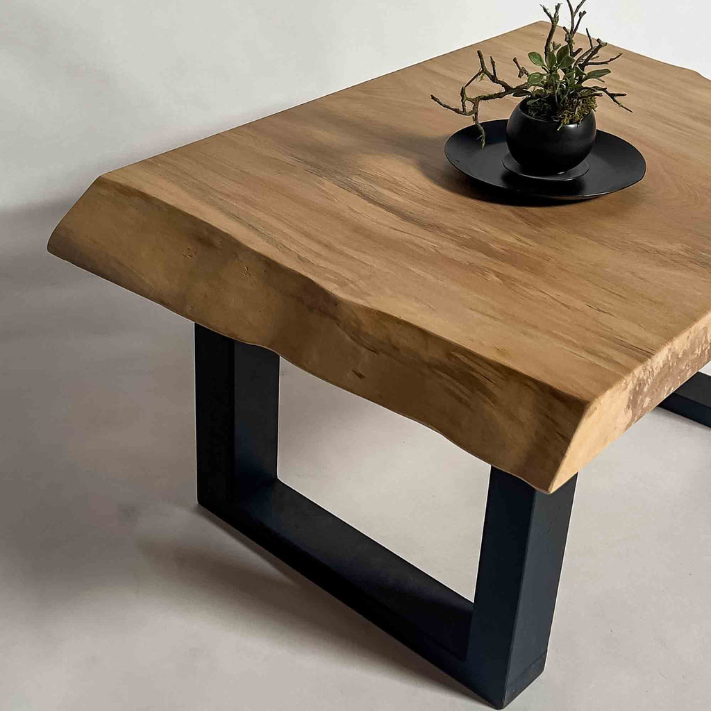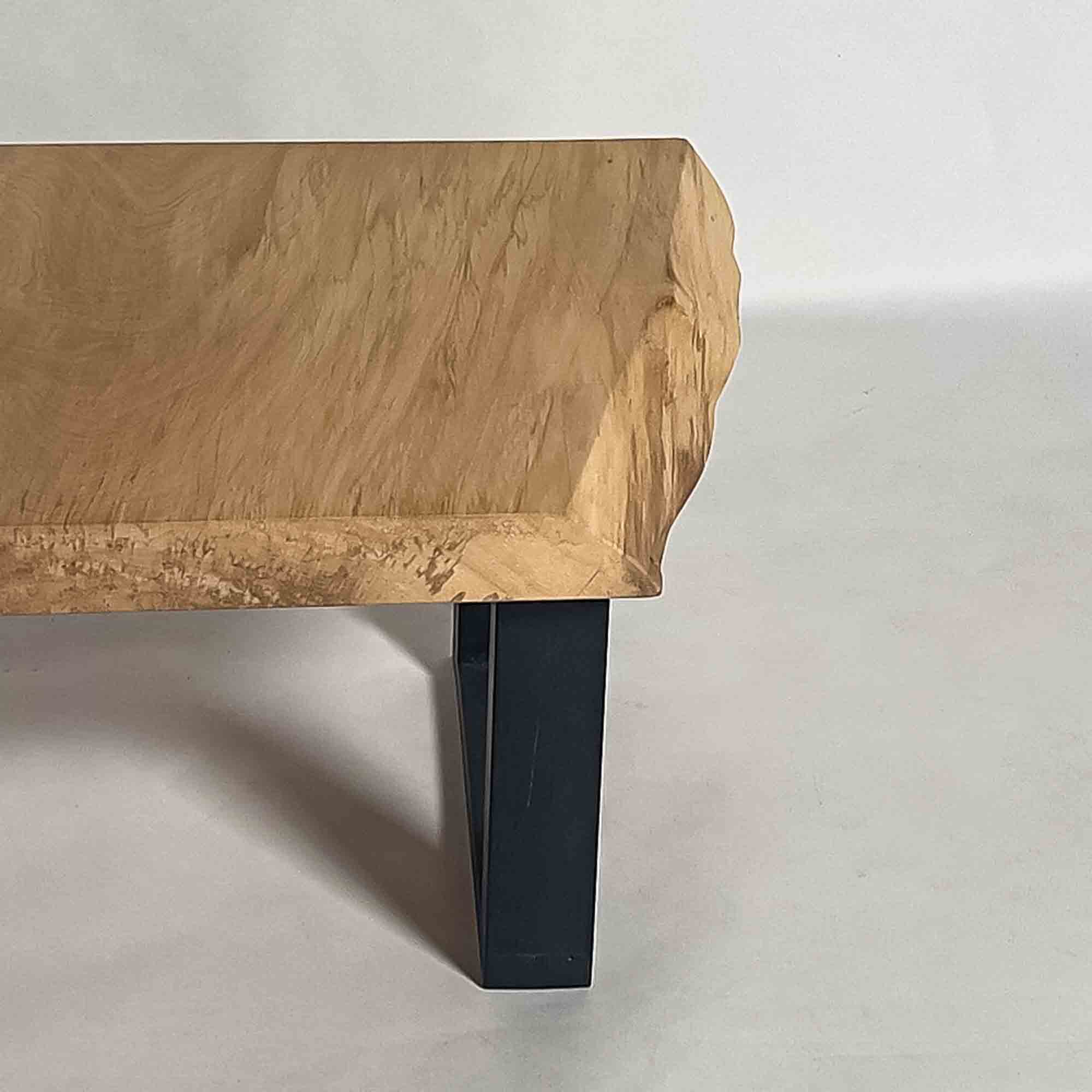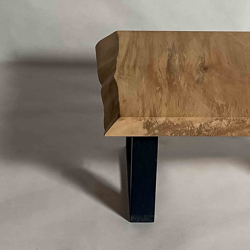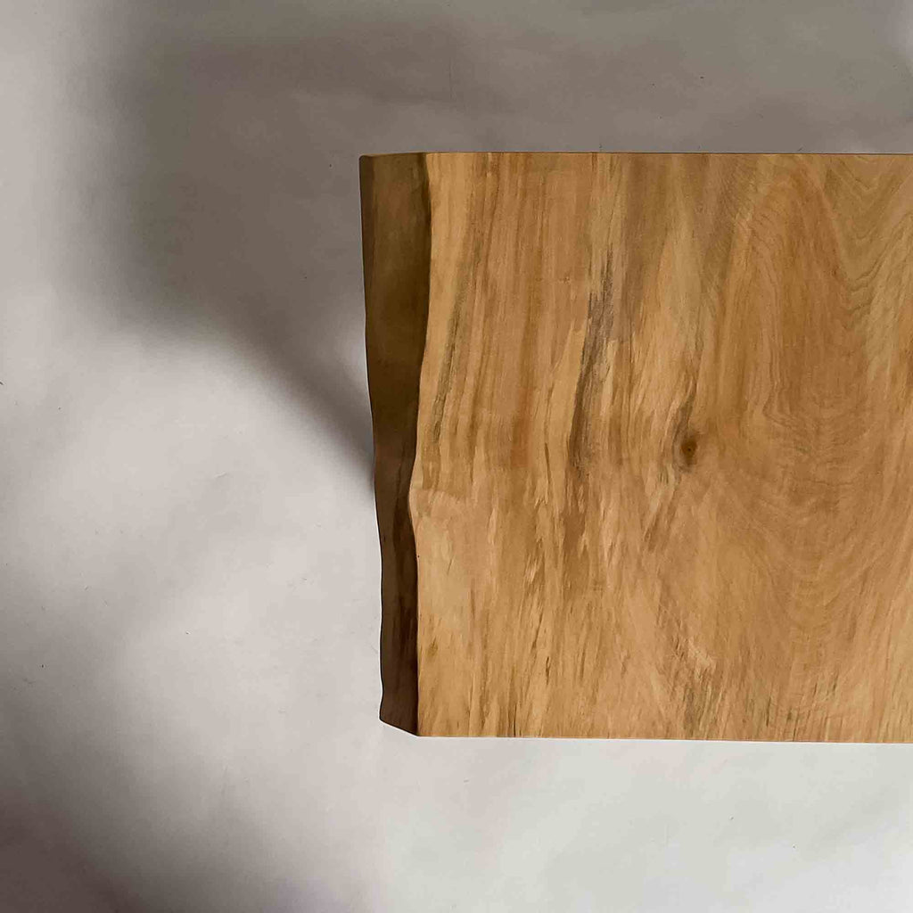 現代の空間に映えるモダンな佇まいを意識しつつ、一枚板ごとに素材感と存在感の出方を見極め、加工を行います。造形を整えすぎず、木が本来持つ表情を残すことを大切にしています。