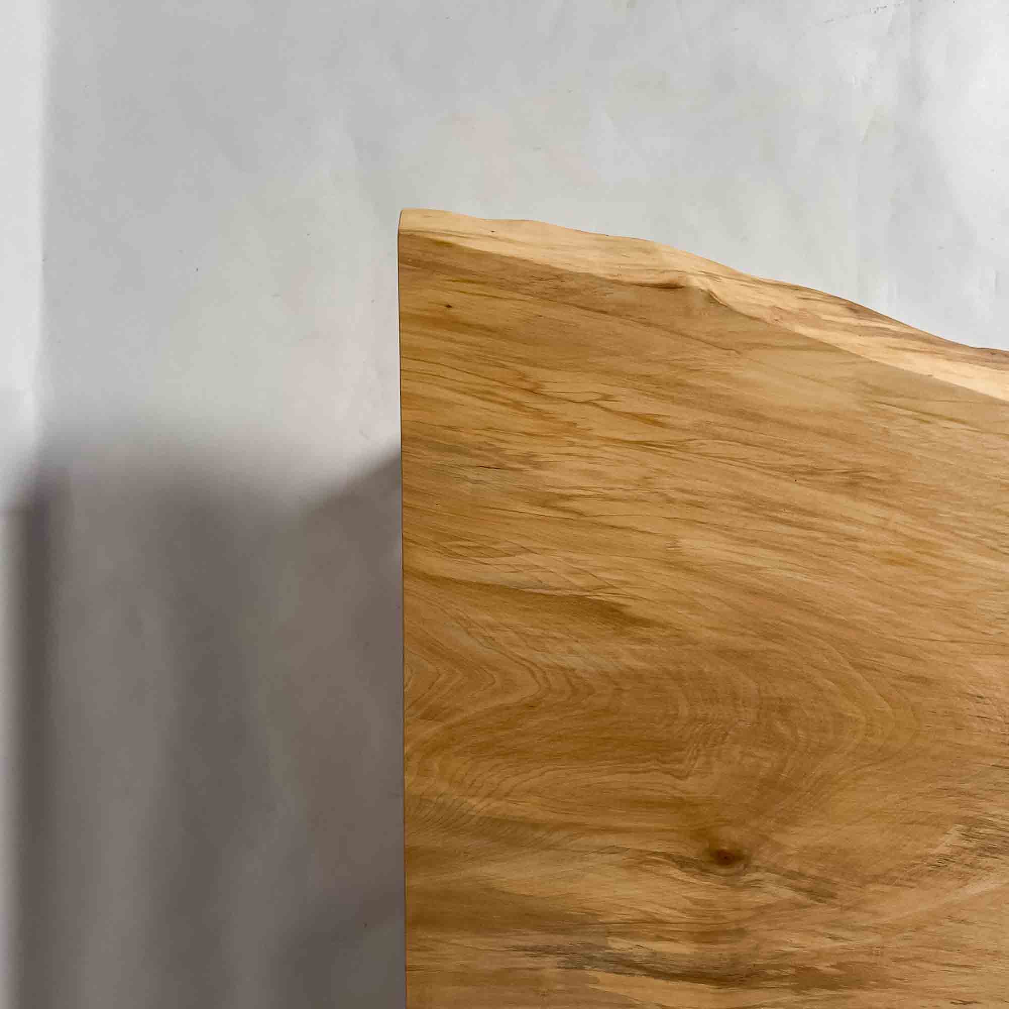 複数の板をつなぎ合わせたものとは異なり、途切れることなく続く杢目は自然の美しさをそのまま映し出します。
