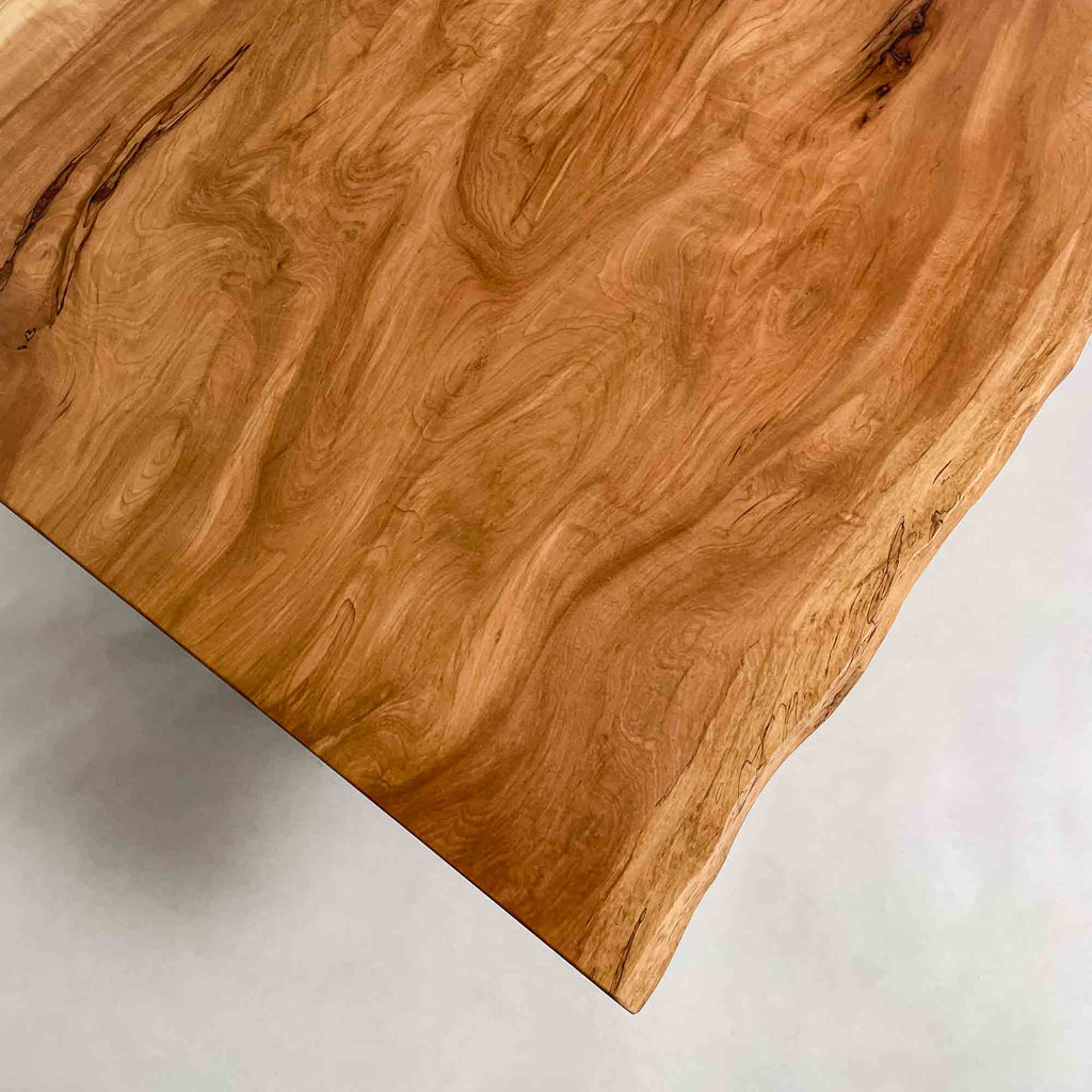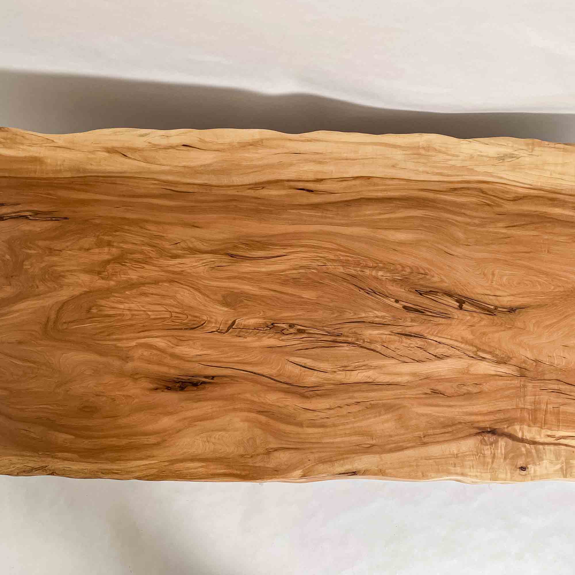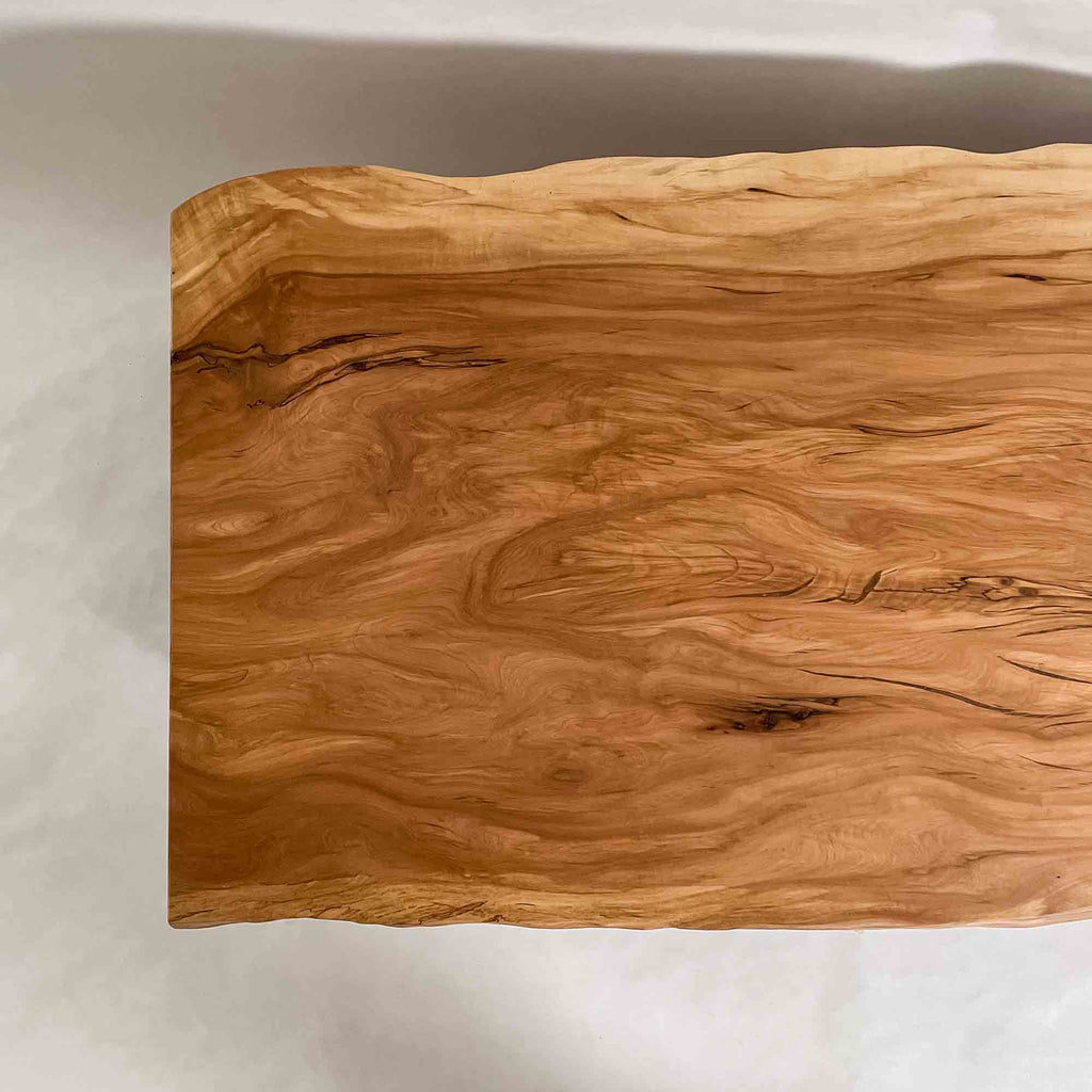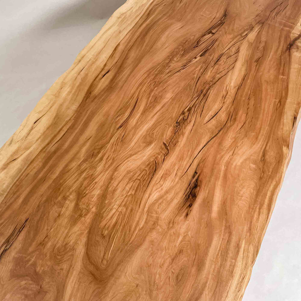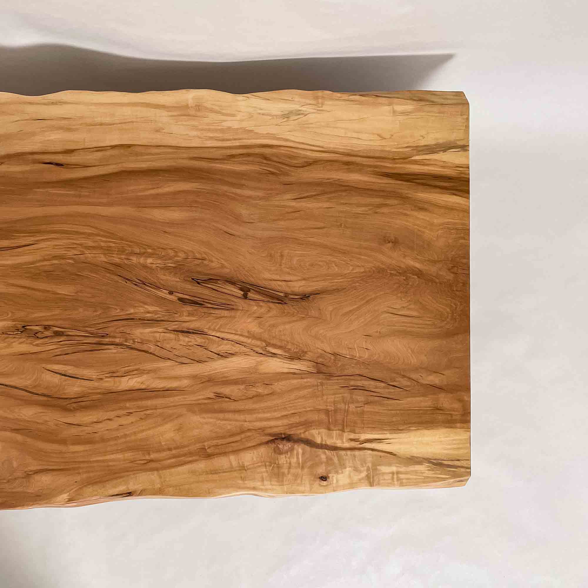 複数の板をつなぎ合わせたものとは異なり、途切れることなく続く杢目は自然の美しさをそのまま映し出します。