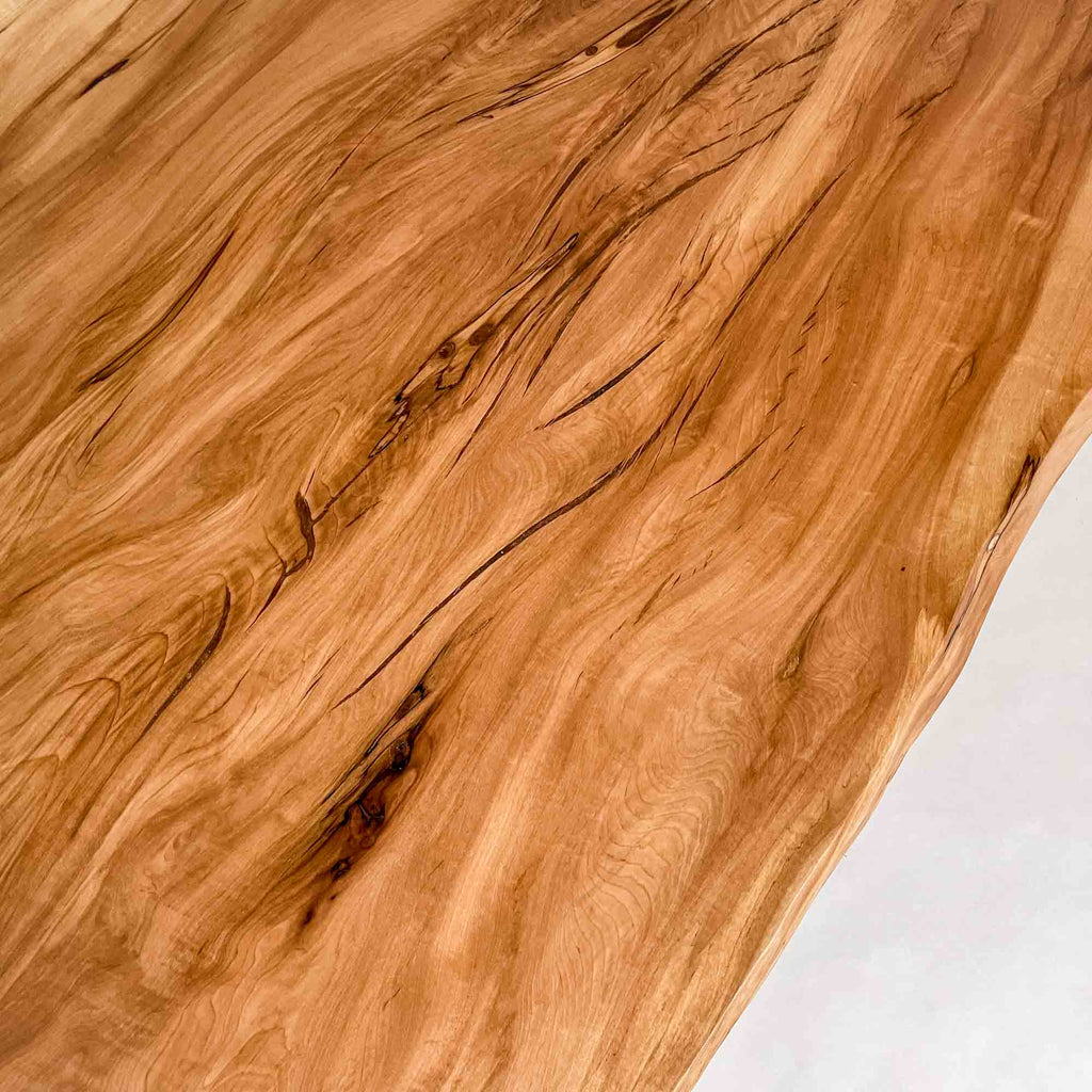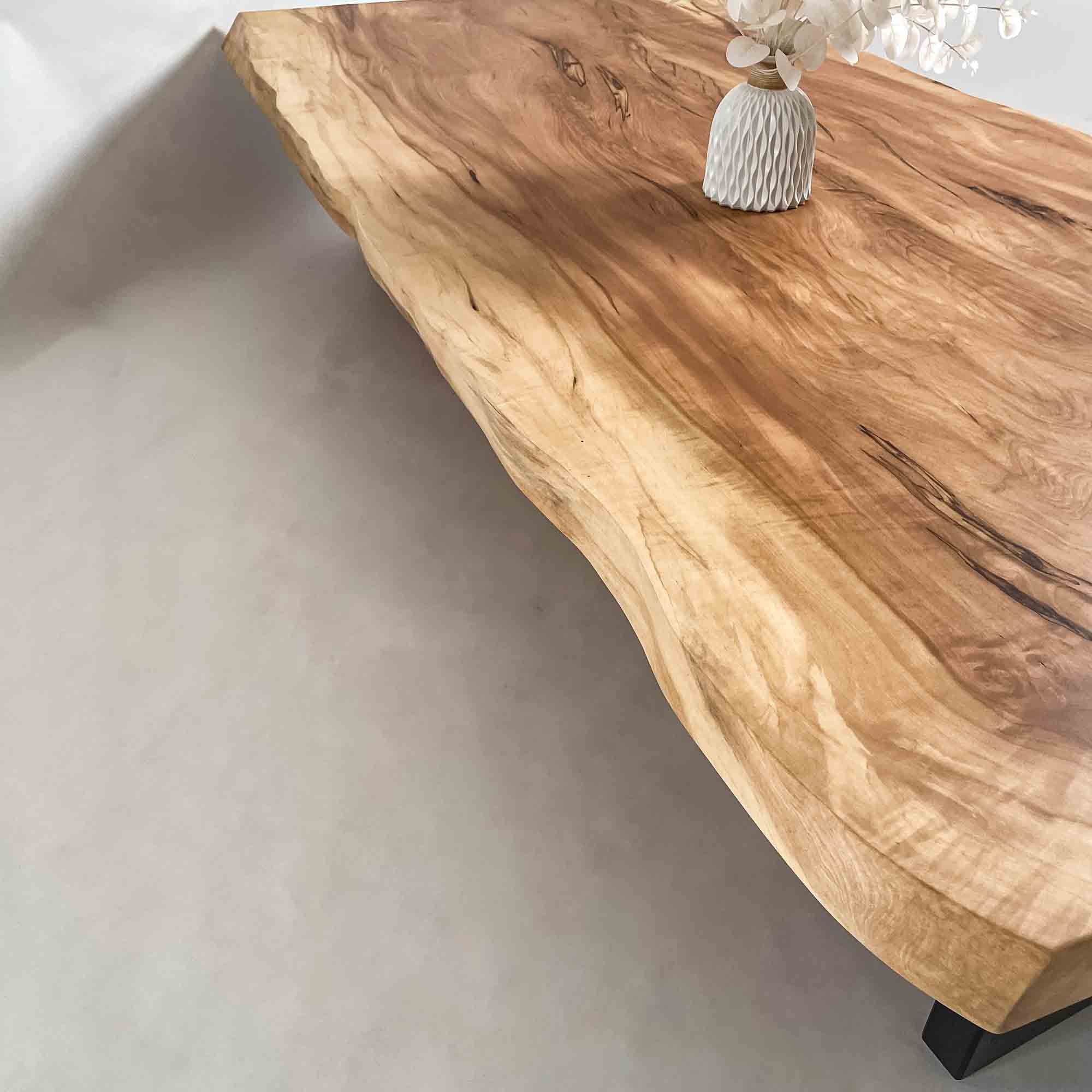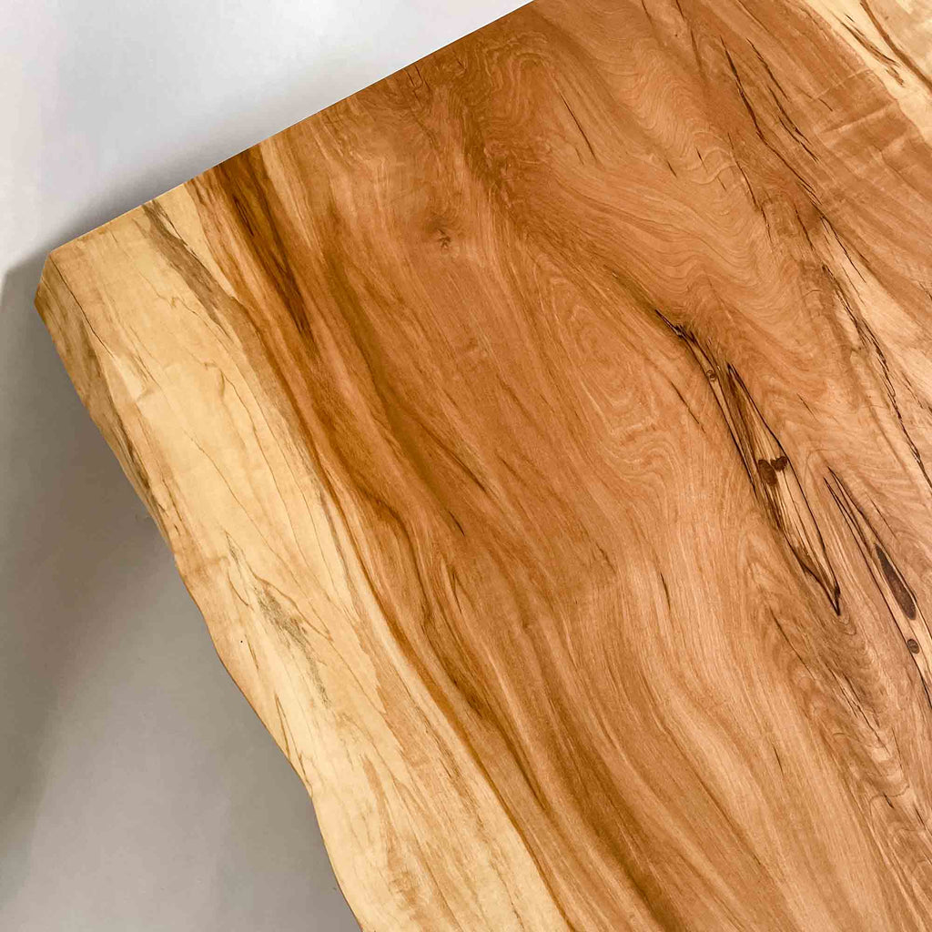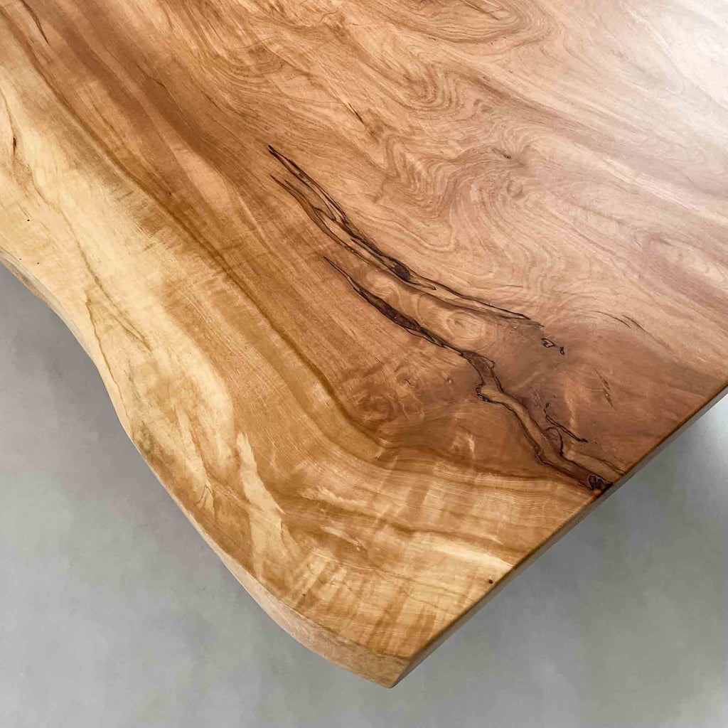 複数の板をつなぎ合わせたものとは異なり、途切れることなく続く杢目は自然の美しさをそのまま映し出します。
