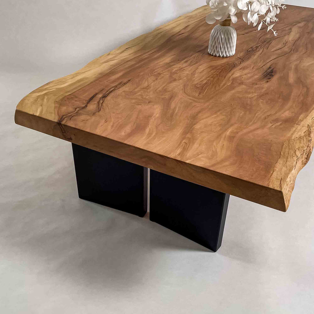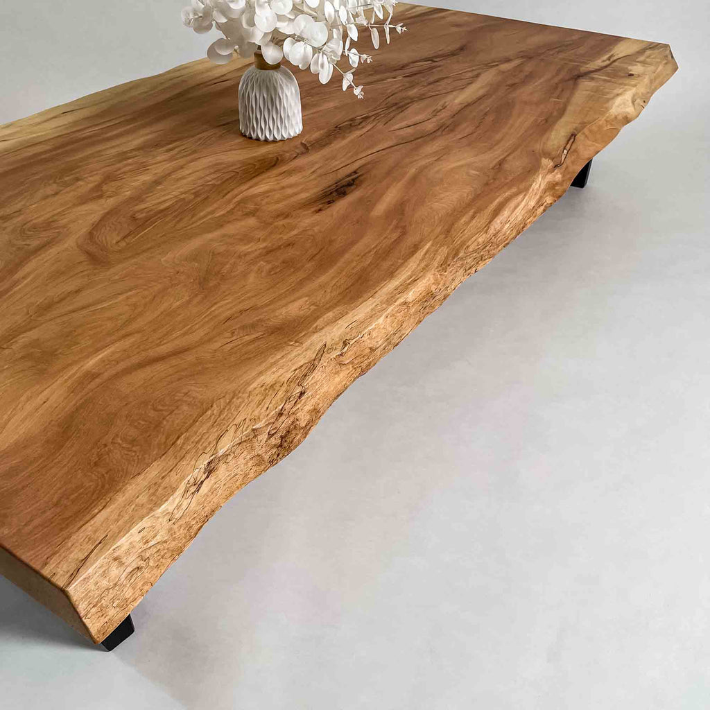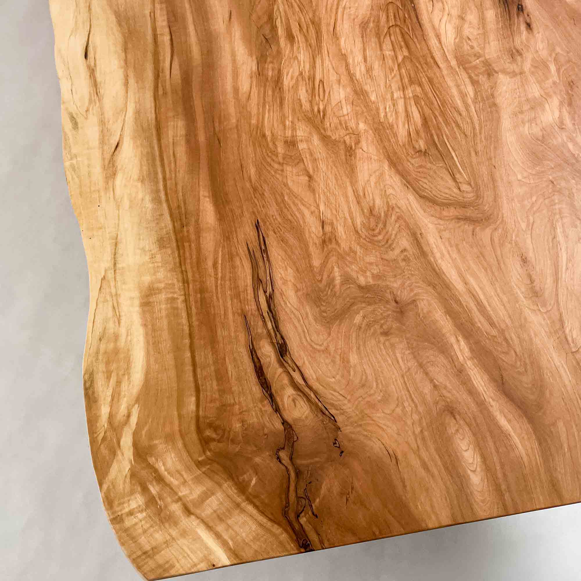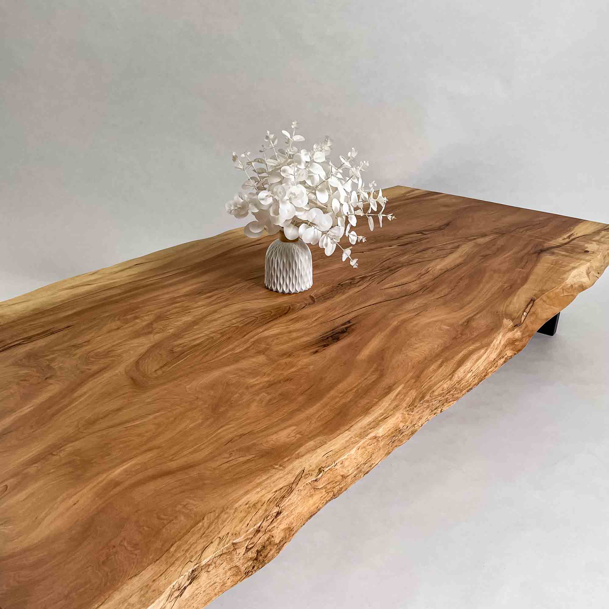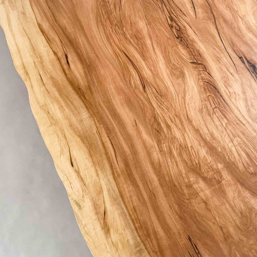 複数の板をつなぎ合わせたものとは異なり、途切れることなく続く杢目は自然の美しさをそのまま映し出します。