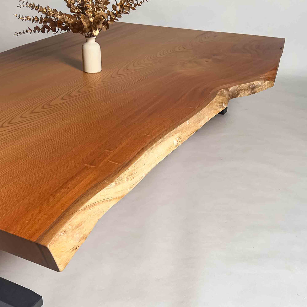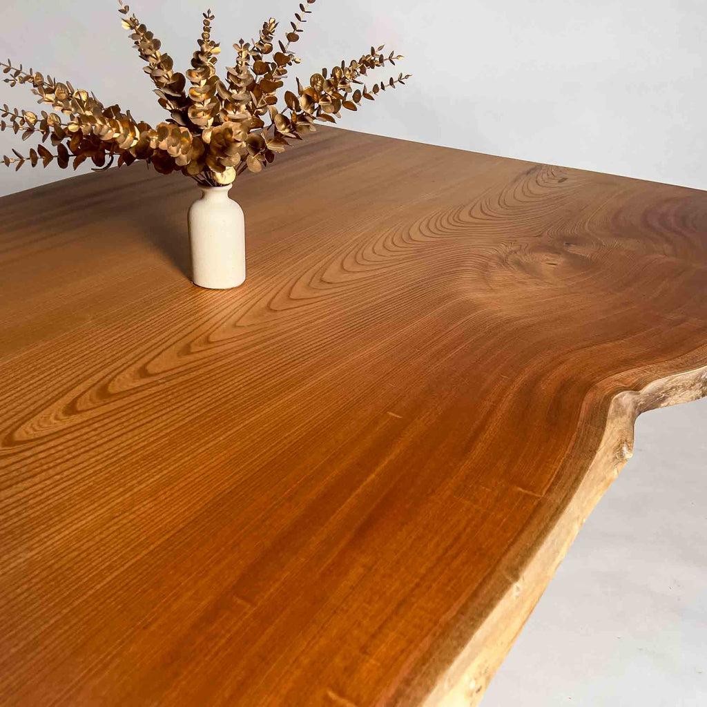 複数の板をつなぎ合わせたものとは異なり、途切れることなく続く杢目は自然の美しさをそのまま映し出します。