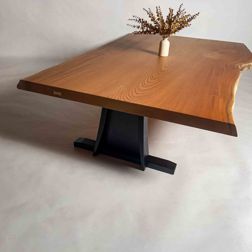 | 時代を超えて受け継がれる機能性と、現代の暮らしに寄り添うデザイン性を兼ね備えた一枚板家具の製作を手がける。 | 現代の空間に映えるモダンなデザイン性を取り入れながら、一枚板の持つ素材感と存在感を活かした加工・製作を行う。 | |