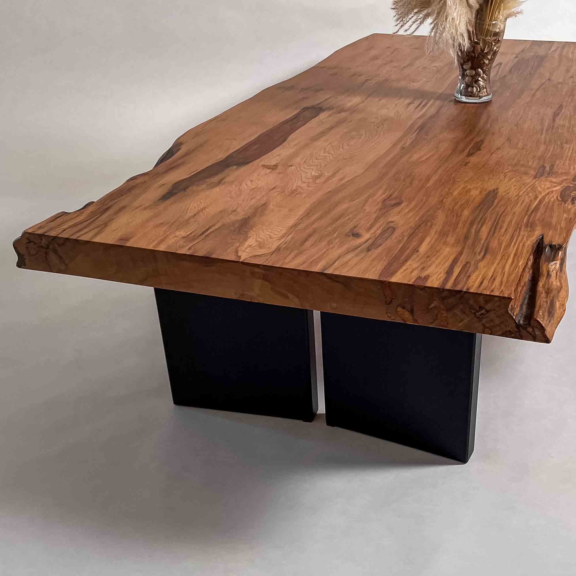 | 時代を超えて受け継がれる機能性と、現代の暮らしに寄り添うデザイン性を兼ね備えた一枚板家具の製作を手がける。 | 現代の空間に映えるモダンなデザイン性を取り入れながら、一枚板の持つ素材感と存在感を活かした加工・製作を行う。 | |
