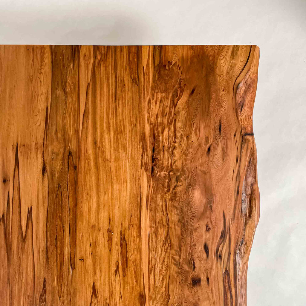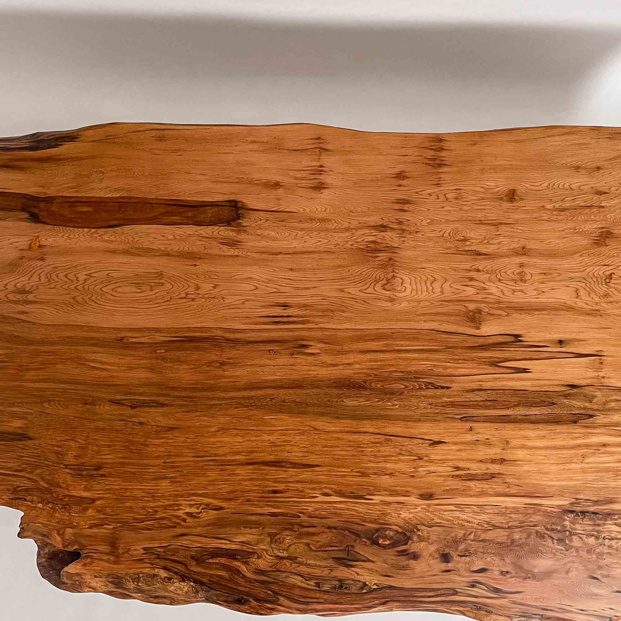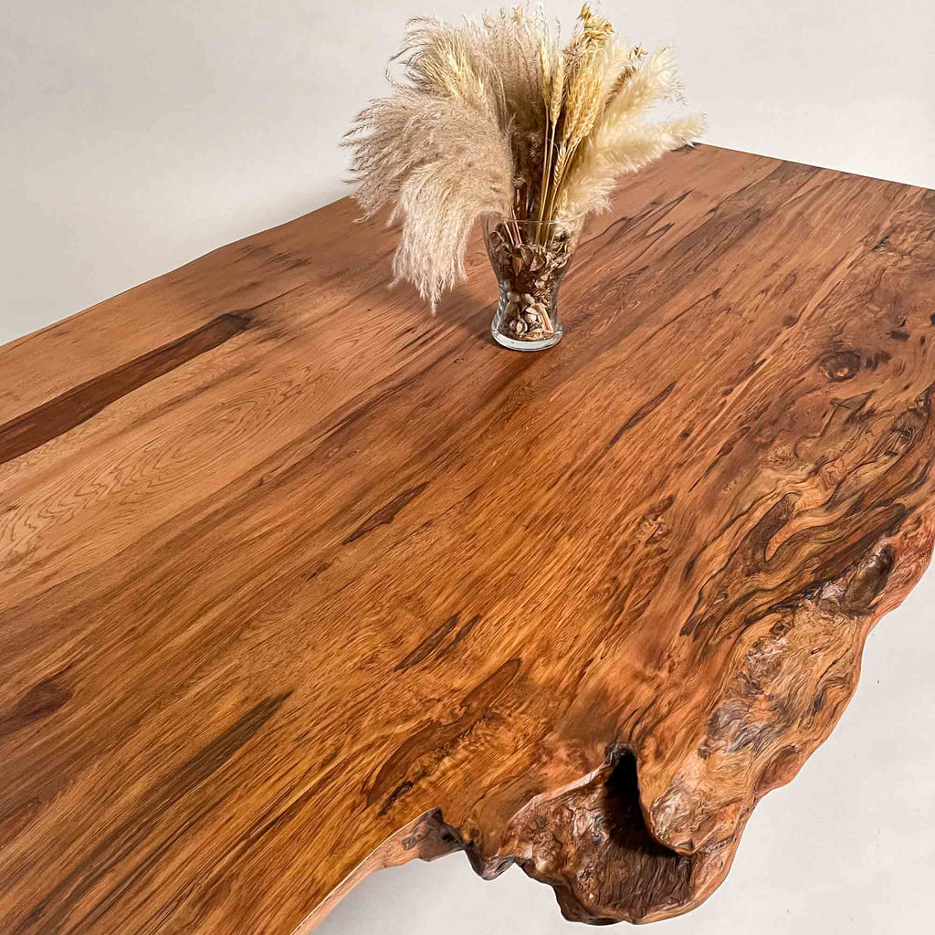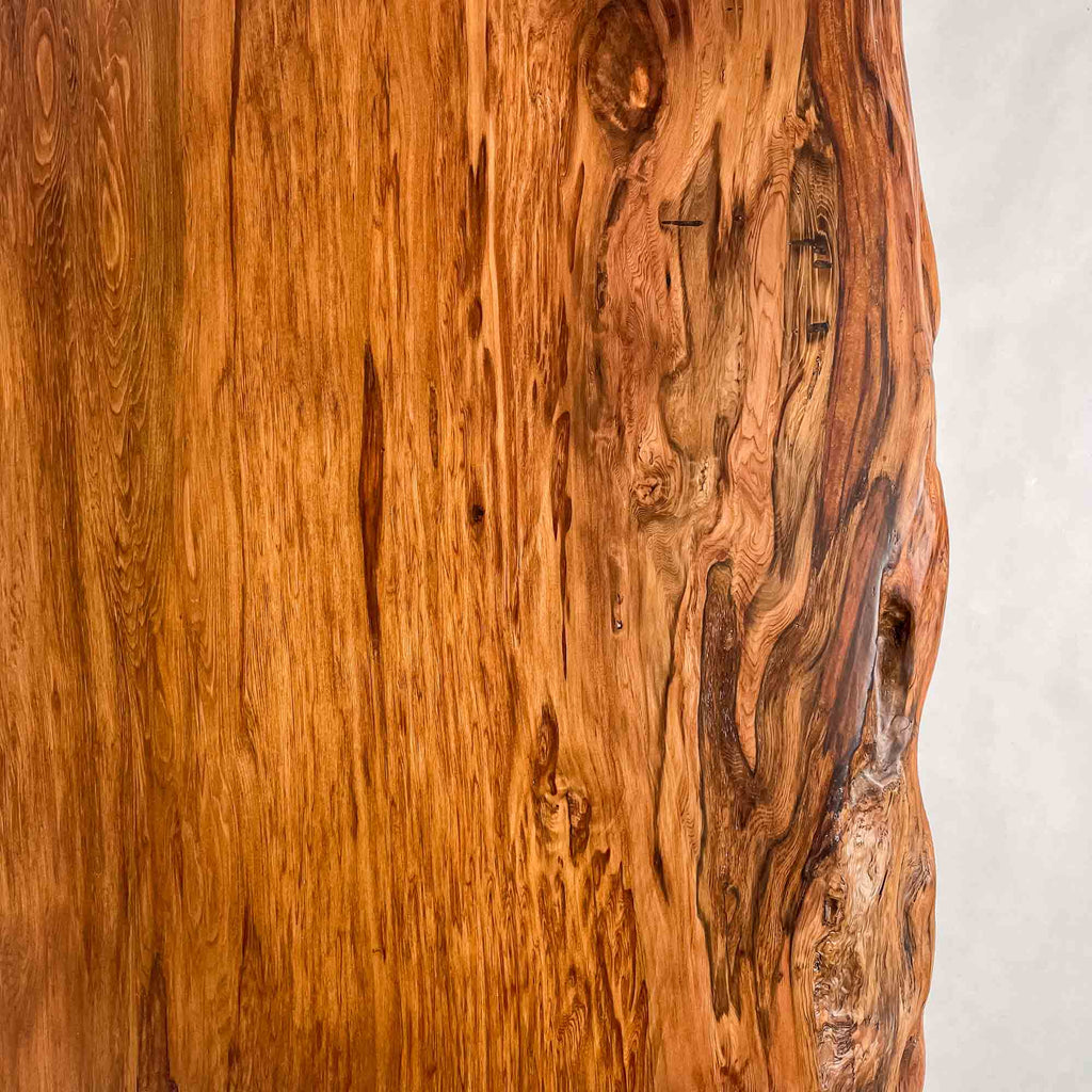 複数の板をつなぎ合わせたものとは異なり、途切れることなく続く杢目は自然の美しさをそのまま映し出します。