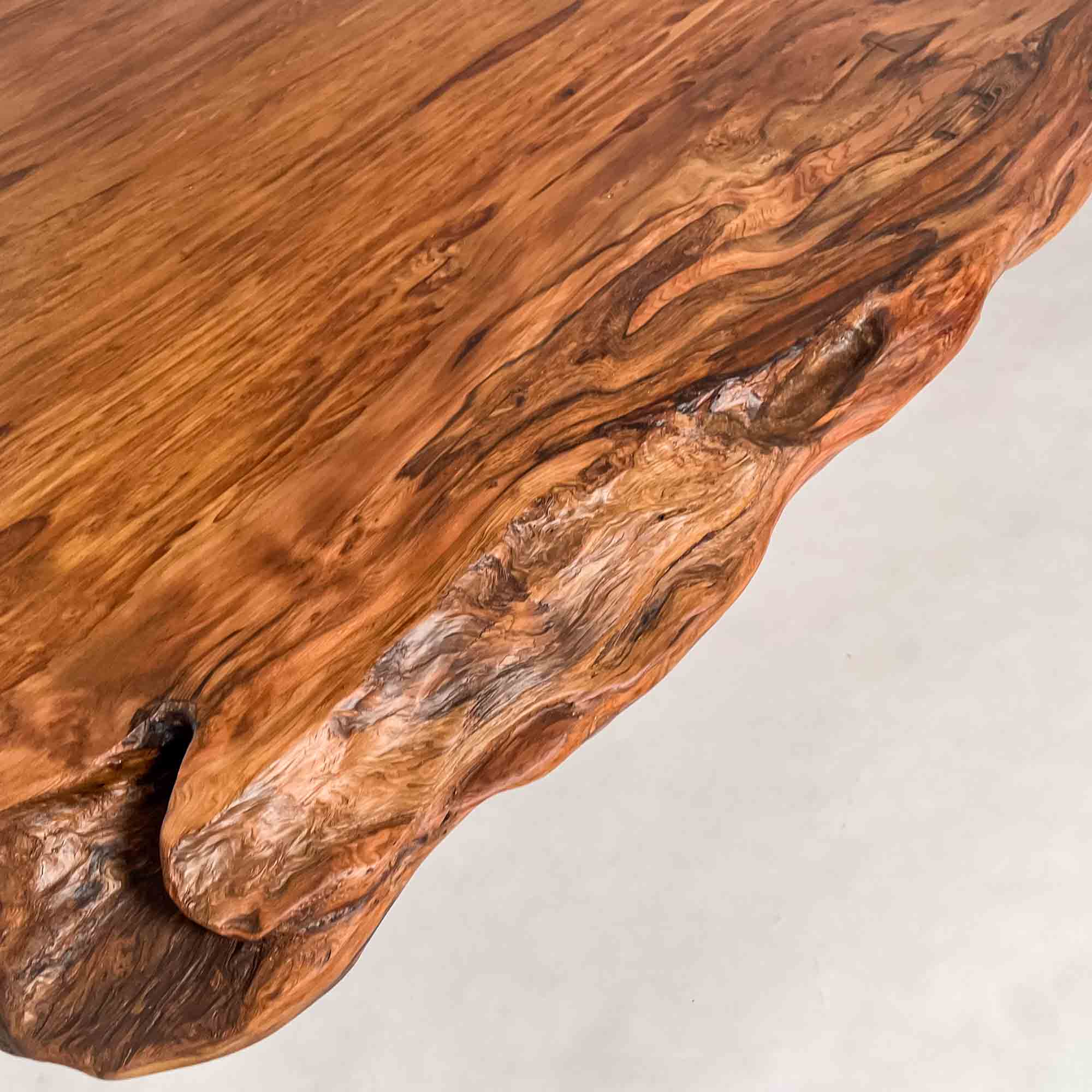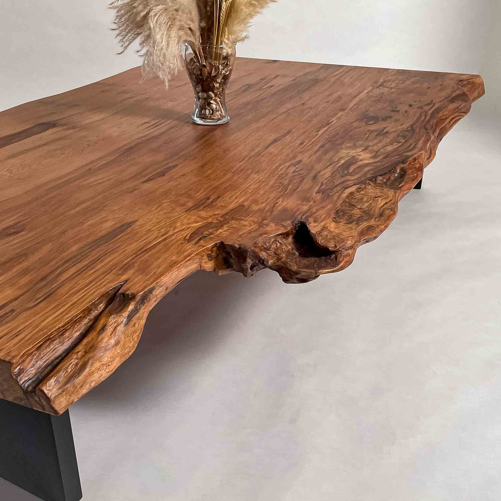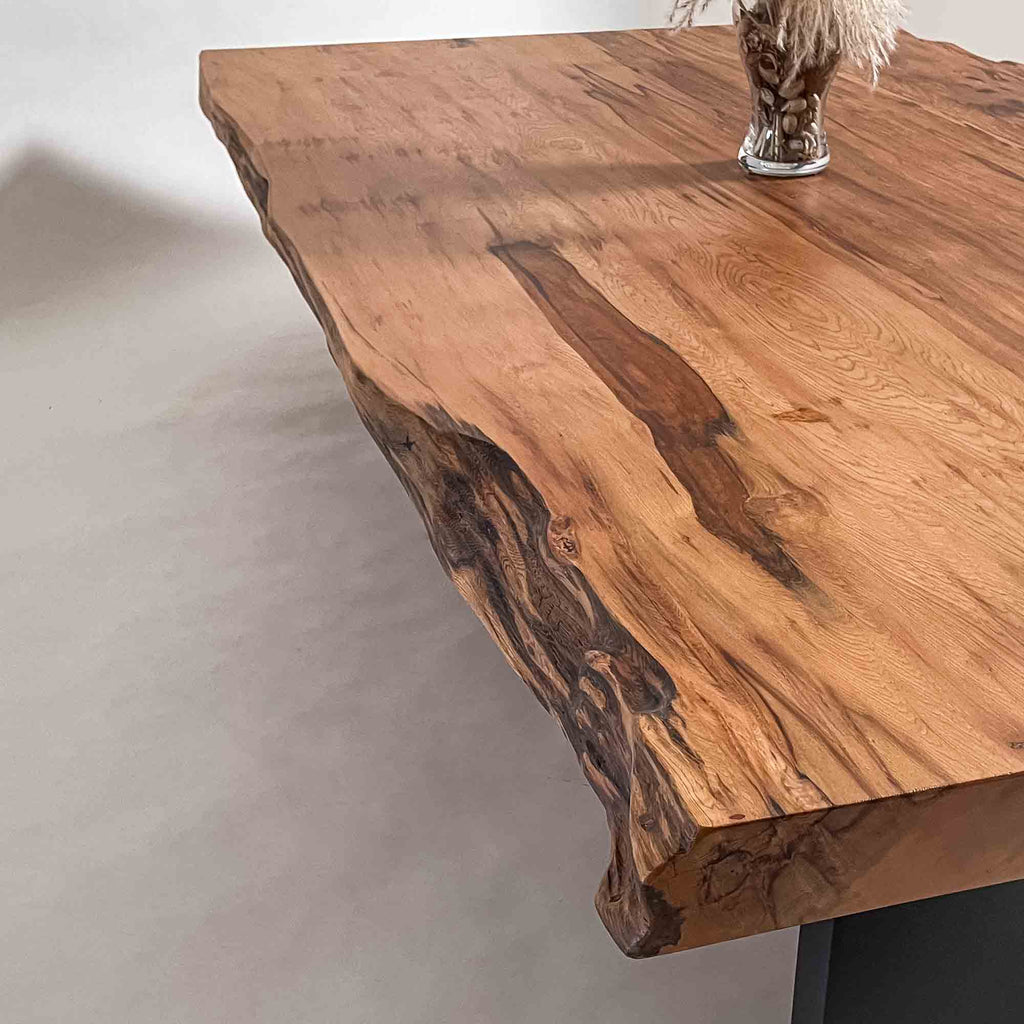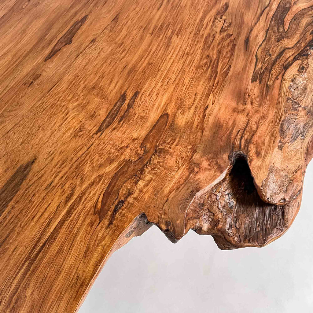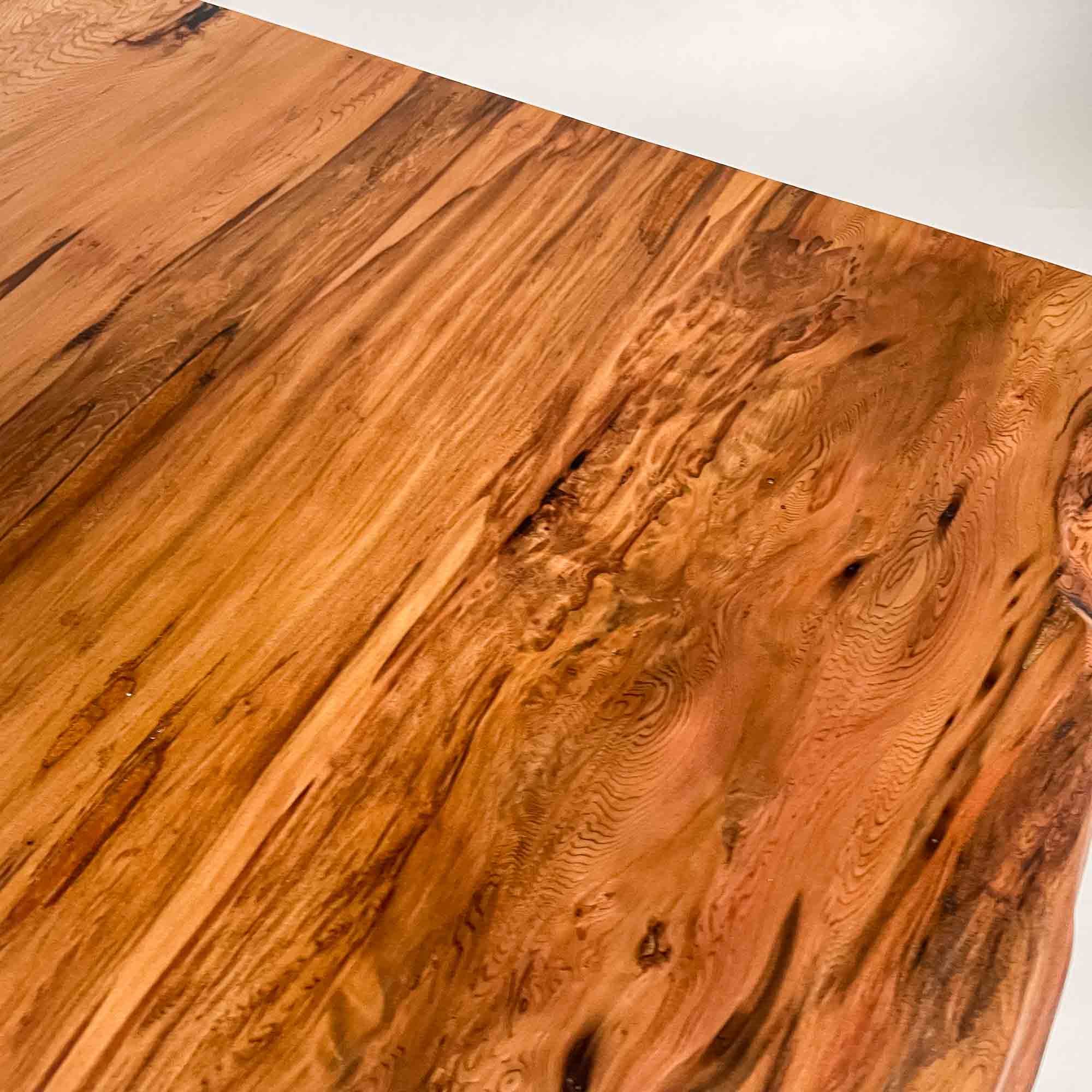 複数の板をつなぎ合わせたものとは異なり、途切れることなく続く杢目は自然の美しさをそのまま映し出します。